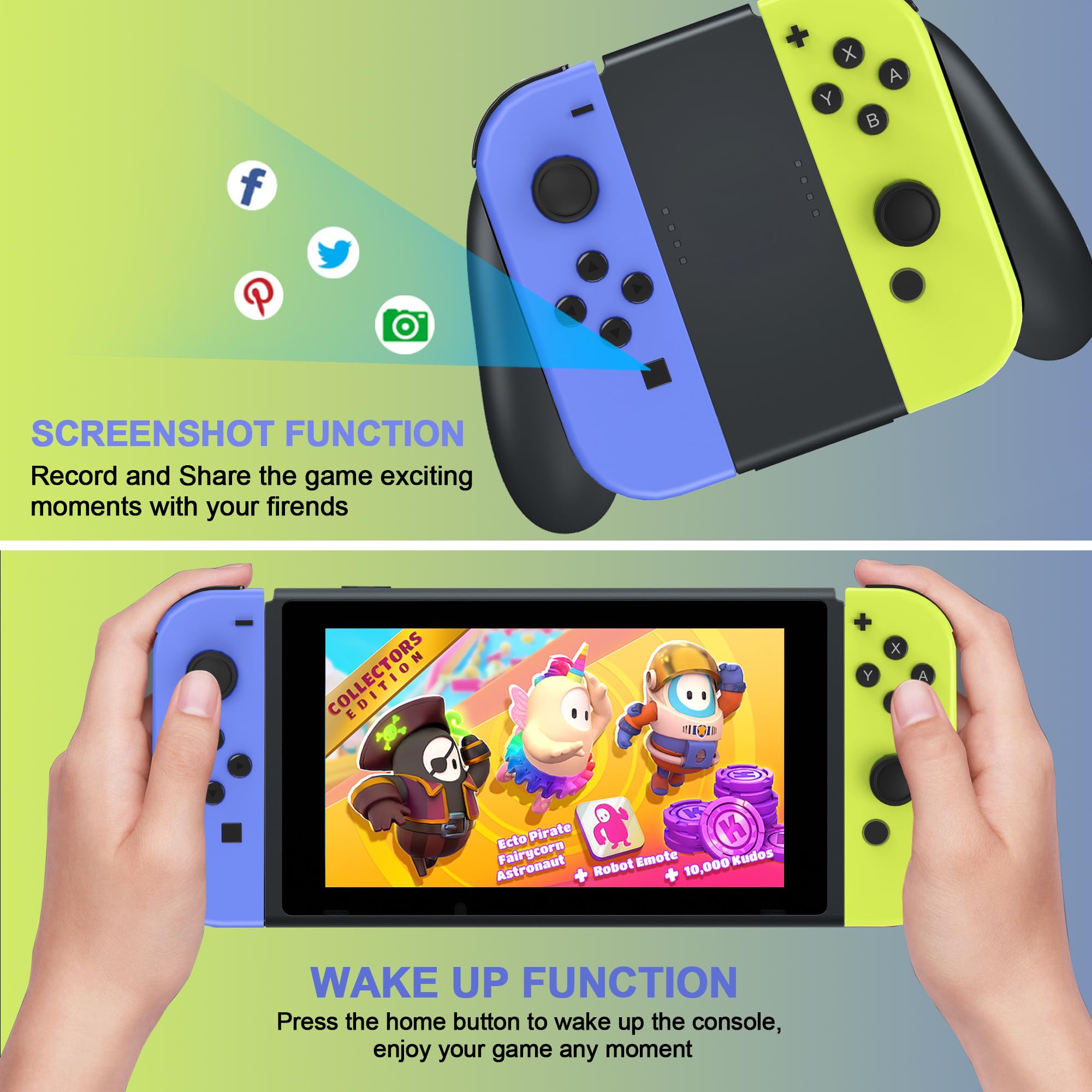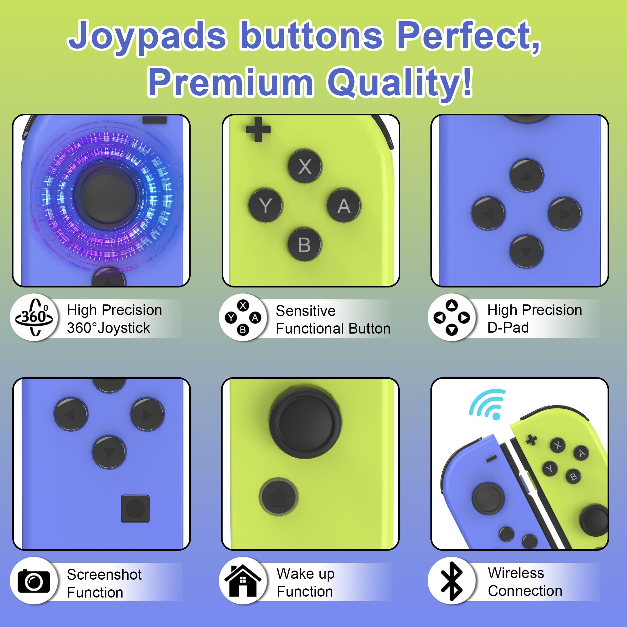 Switch Controller,Replacement for Switch/OLED/Lite,Wireless Remote with Dual Vibration,Motion Control,Screenshot,6-Axis Gyro,Wake-Up,Anti-Slip grip/Joystick,Left/Right Gamepad,No NFC,(Blue and Yellow)
