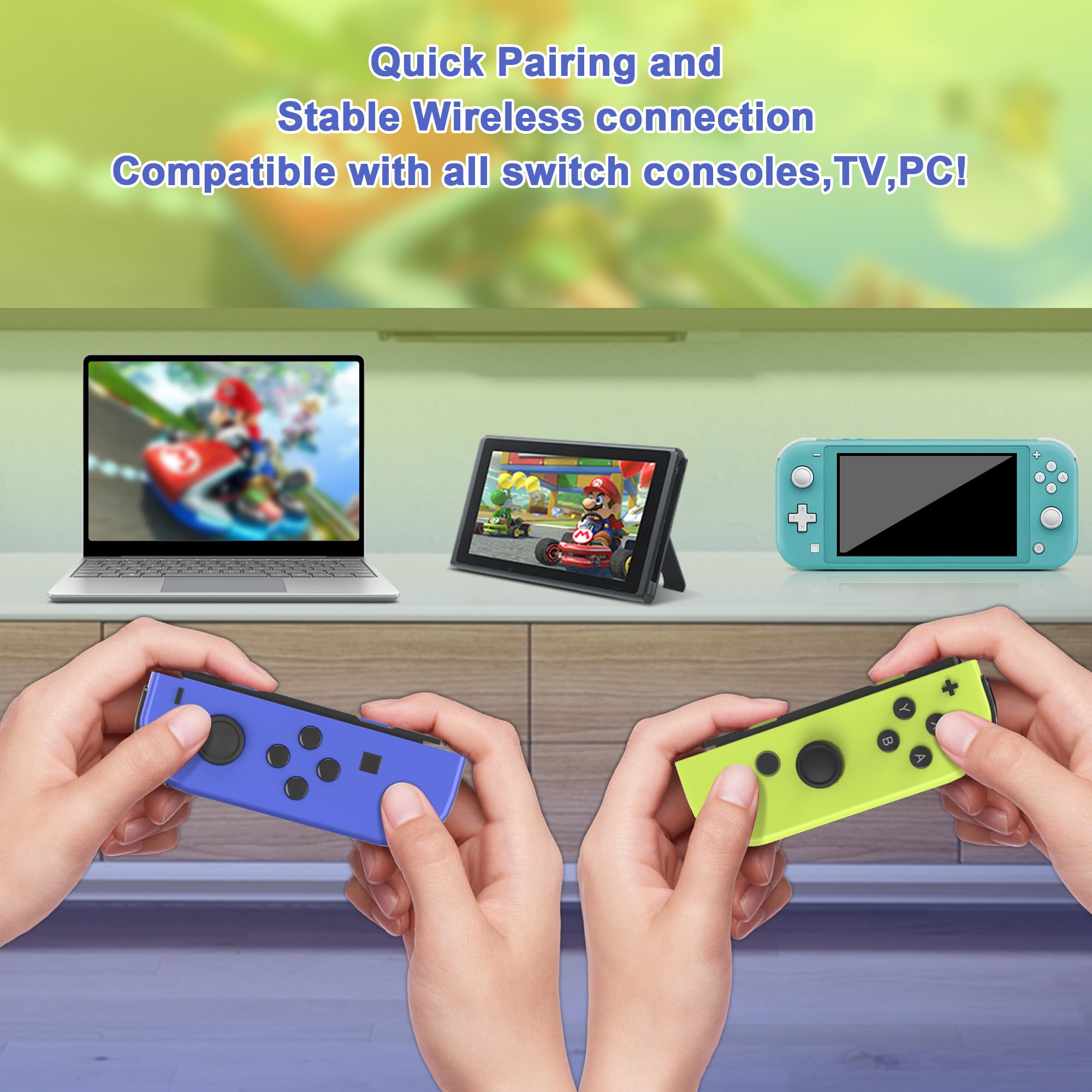 Wide Compatibility & Rock-Solid Connection:Fully compatible with Switch, Switch OLED, and Switch Lite. Switch controllers featuring upgraded wireless technology for stable and lag-free connections within 10 meters. Whether racing in Mario Kart or battling in Splatoon 3, enjoy smooth, instant responses without disconnections or frame drops, ensuring a seamless gaming experience.