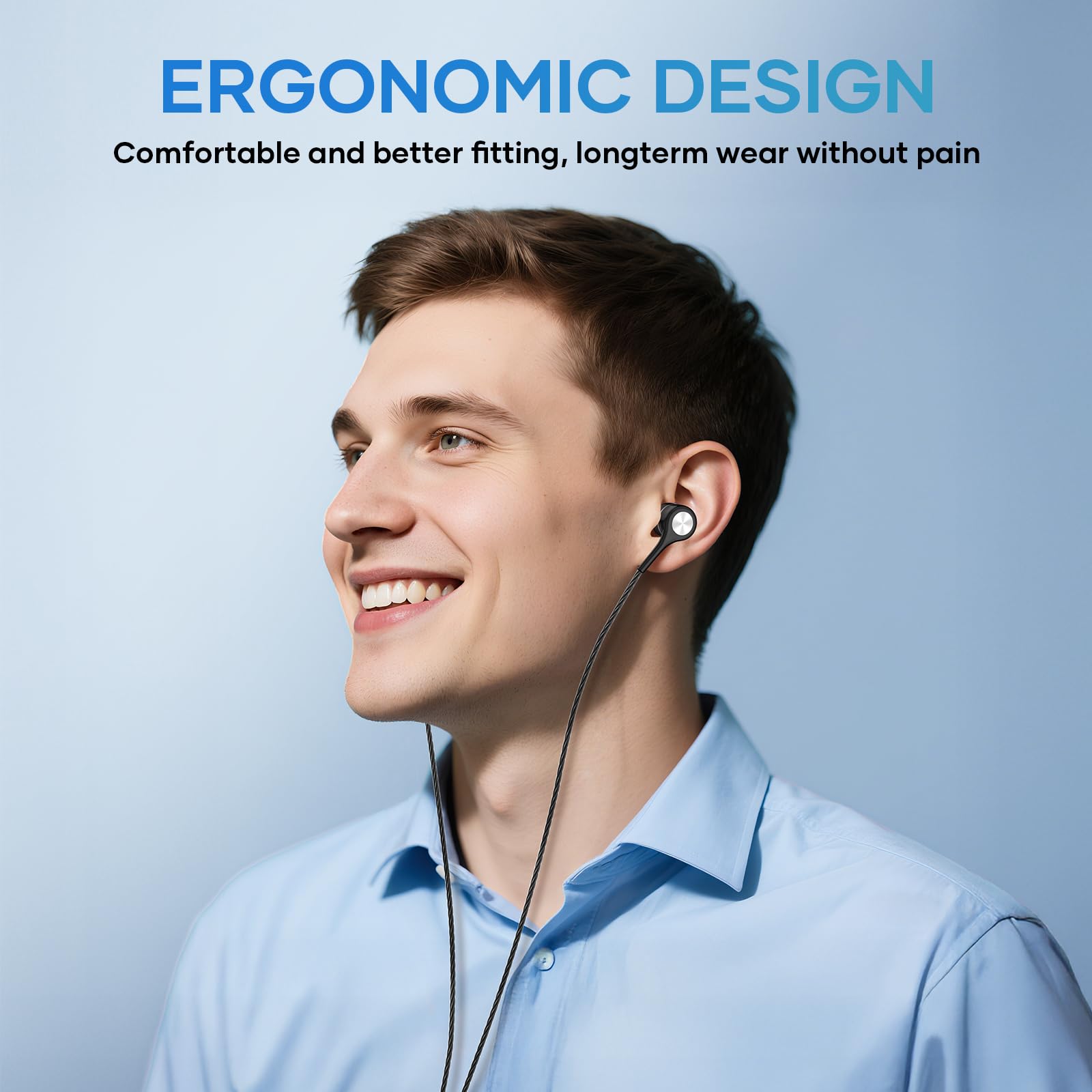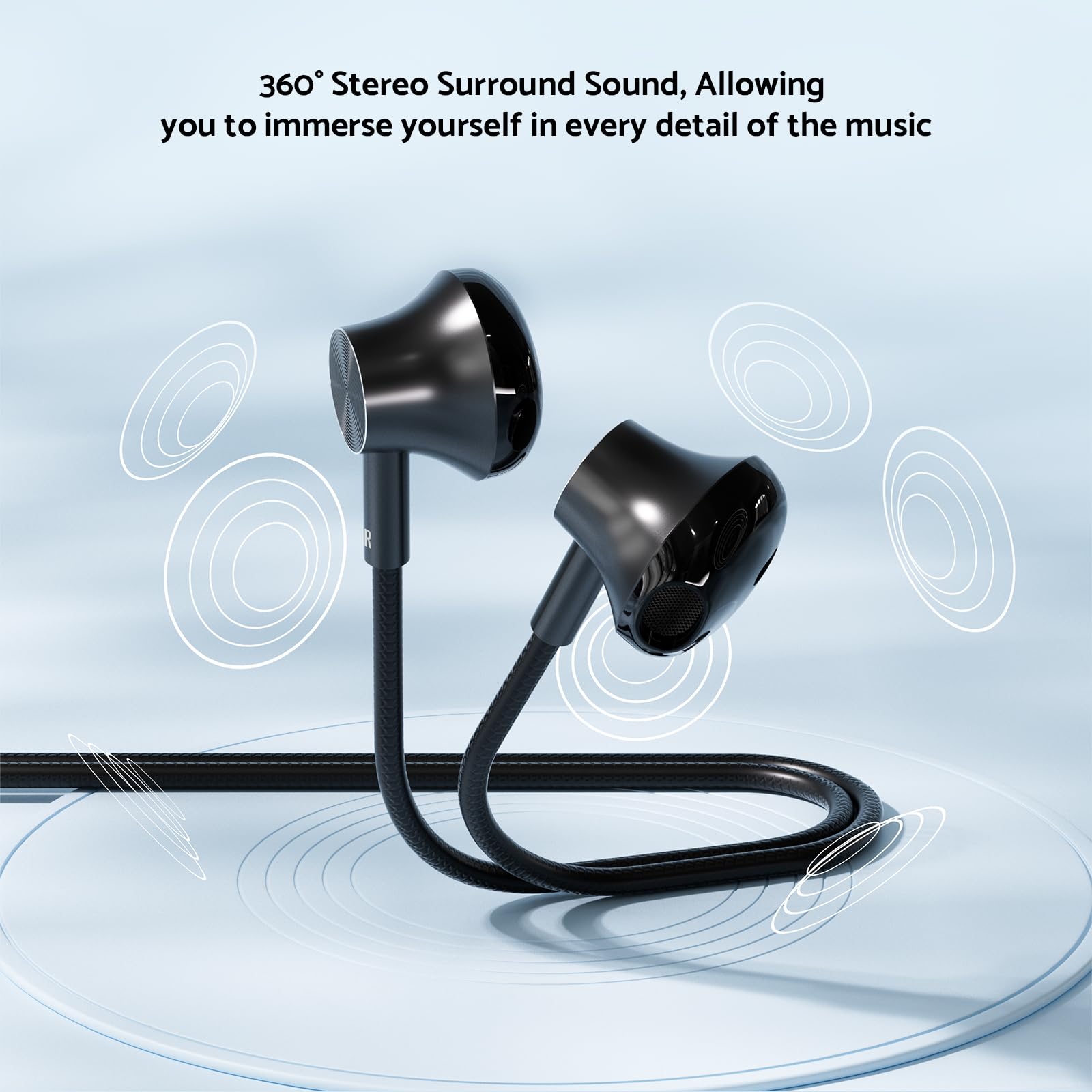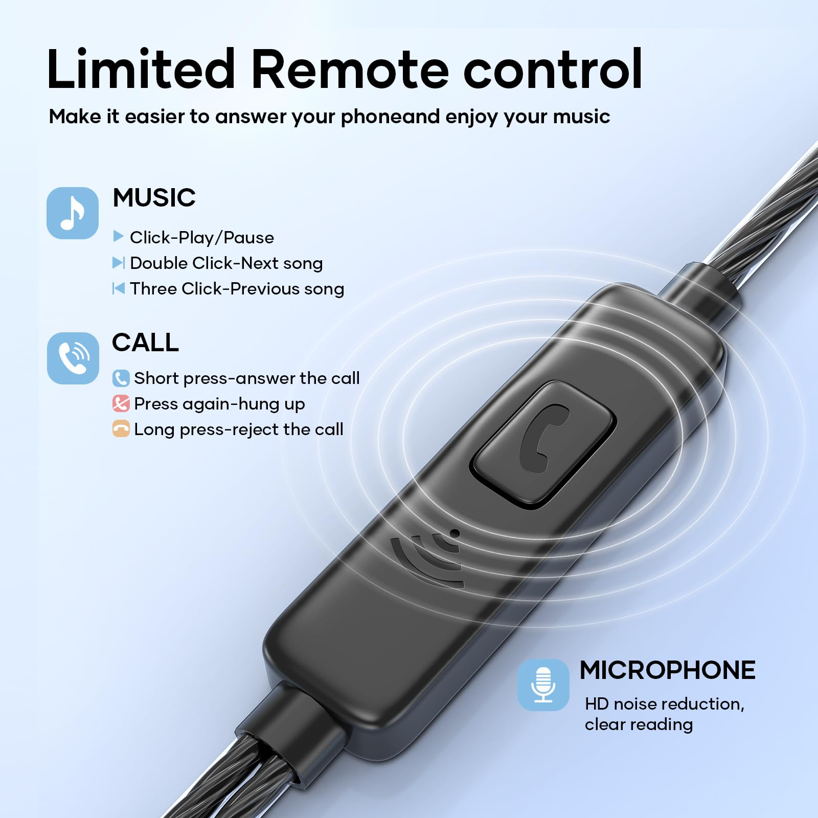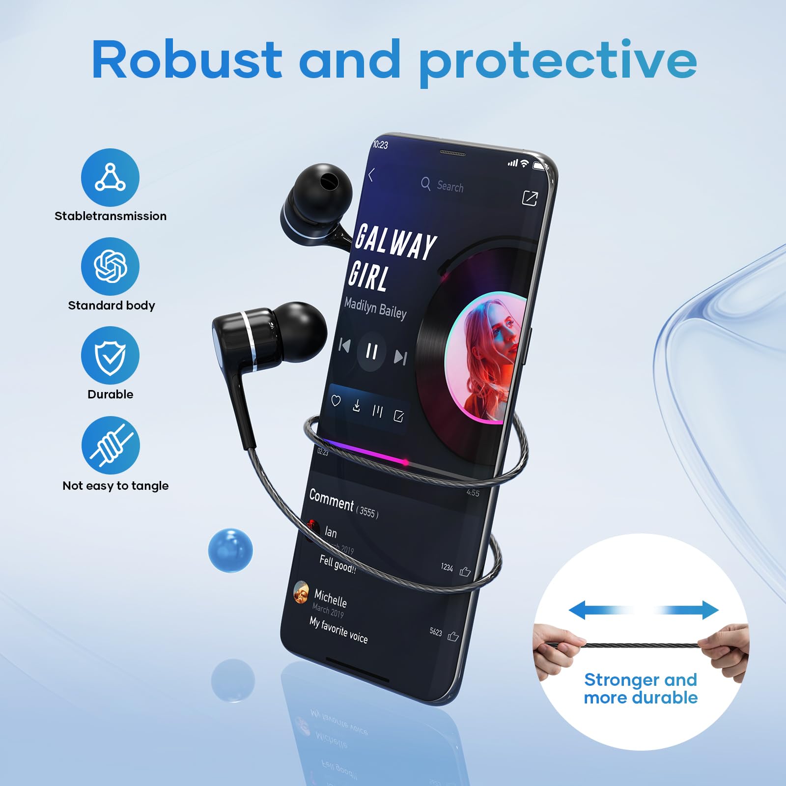 • [Stereo Sound Quality] - Headphones have excellent sound transmission performance, the Earbuds adopt a metal composite diaphragm and combination of heavy bass and stereo sound, maximum restoration of natural acoustic sound, so that the headphones wired can bring you high-quality music