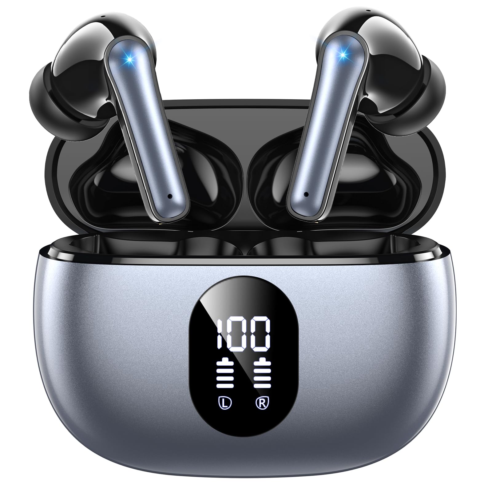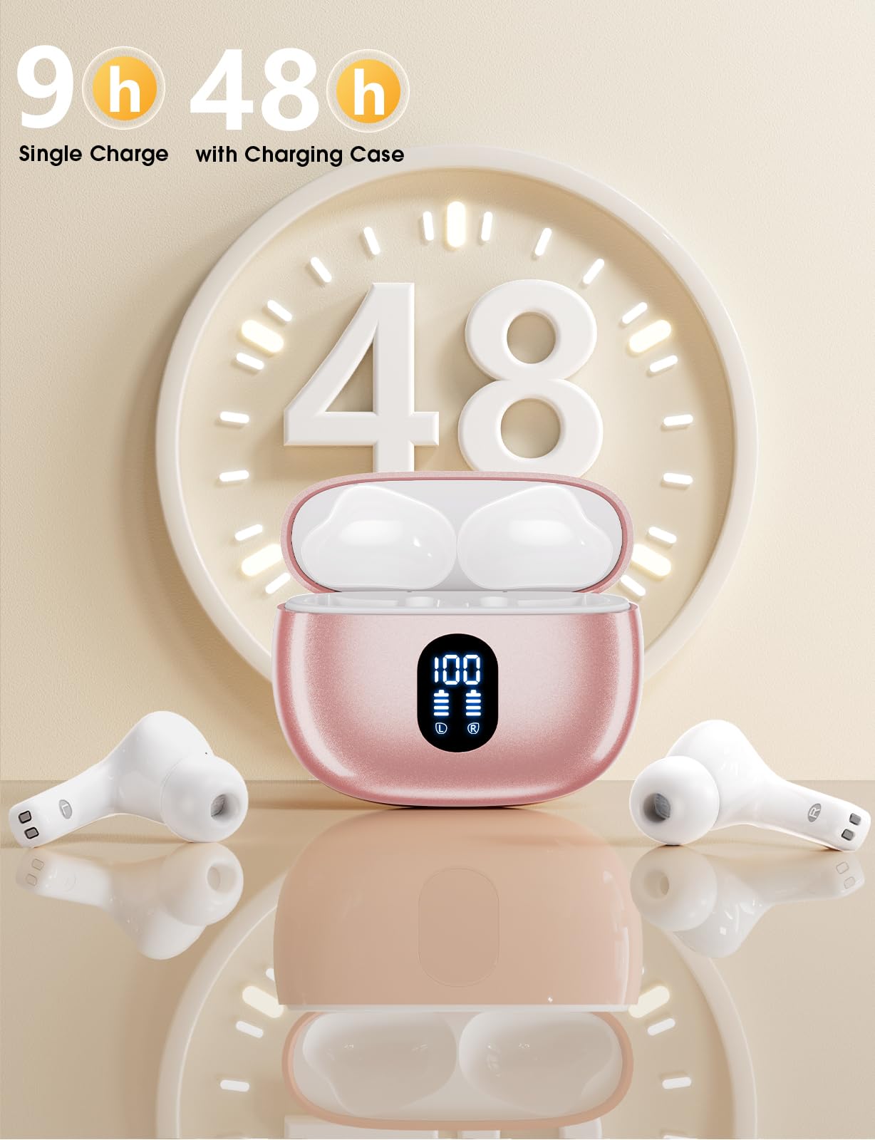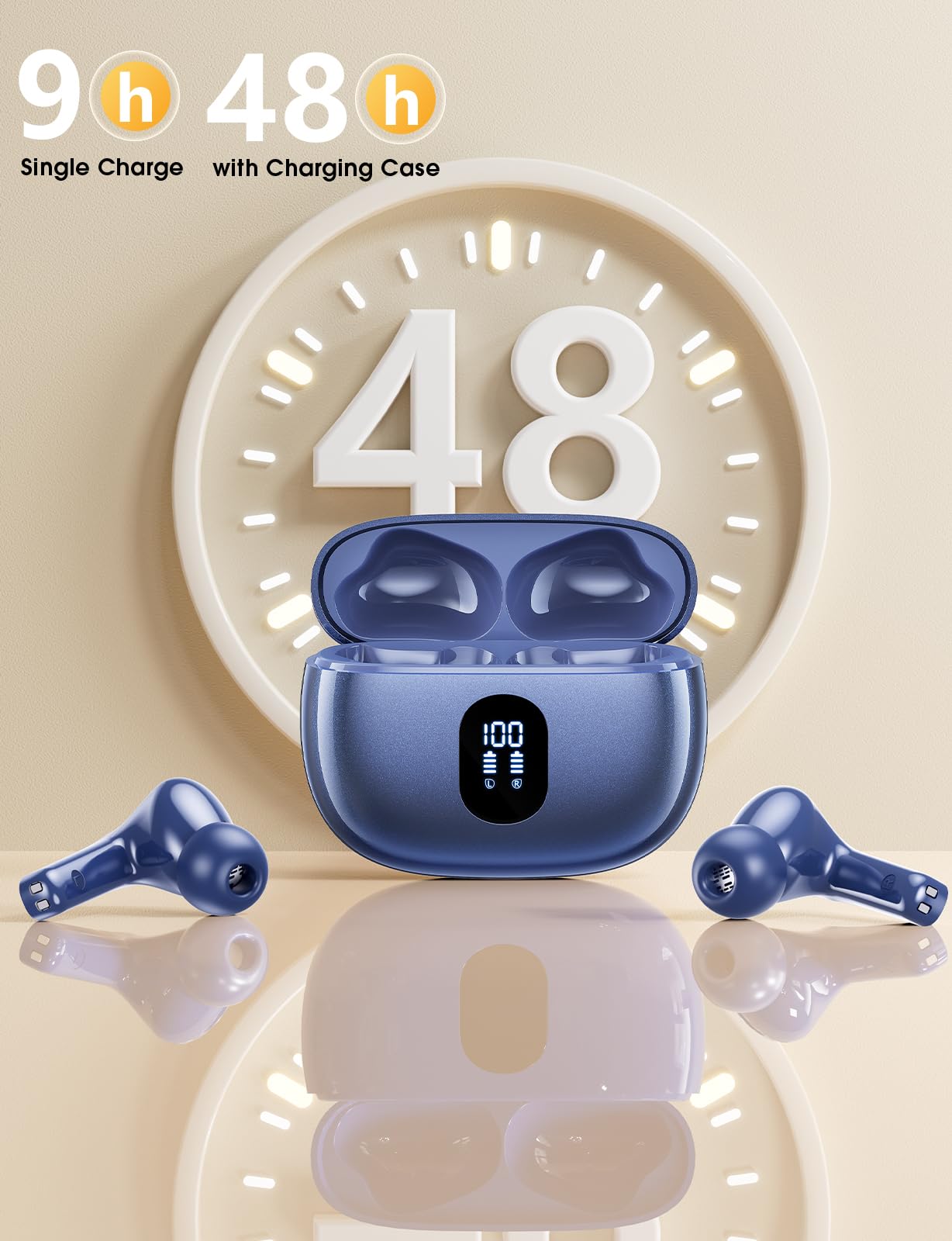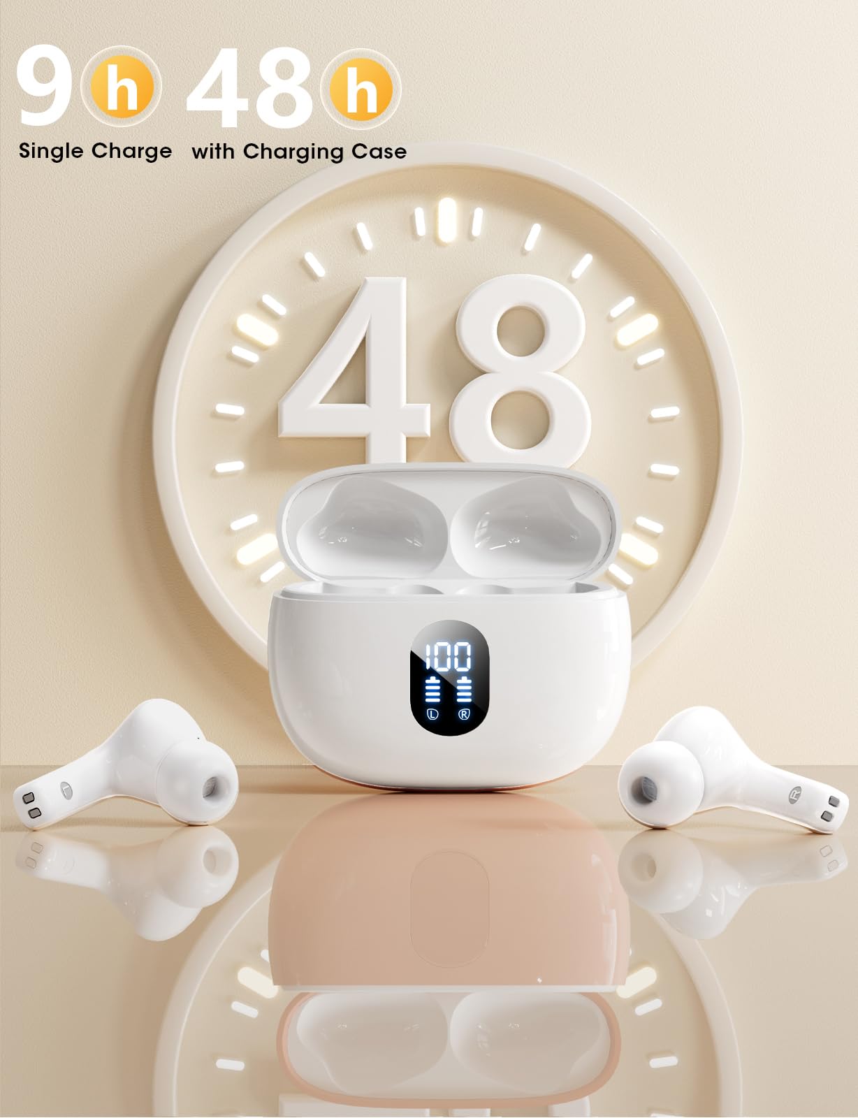 Wireless Earbuds Bluetooth 5.3 Ear Buds, Hi-Fi Stereo Bass Ear Buds with 48H Playtime & LED Display, Lightweight in-Ear Headphones with Mic, IPX7 Waterproof, Touch Control for iPhone