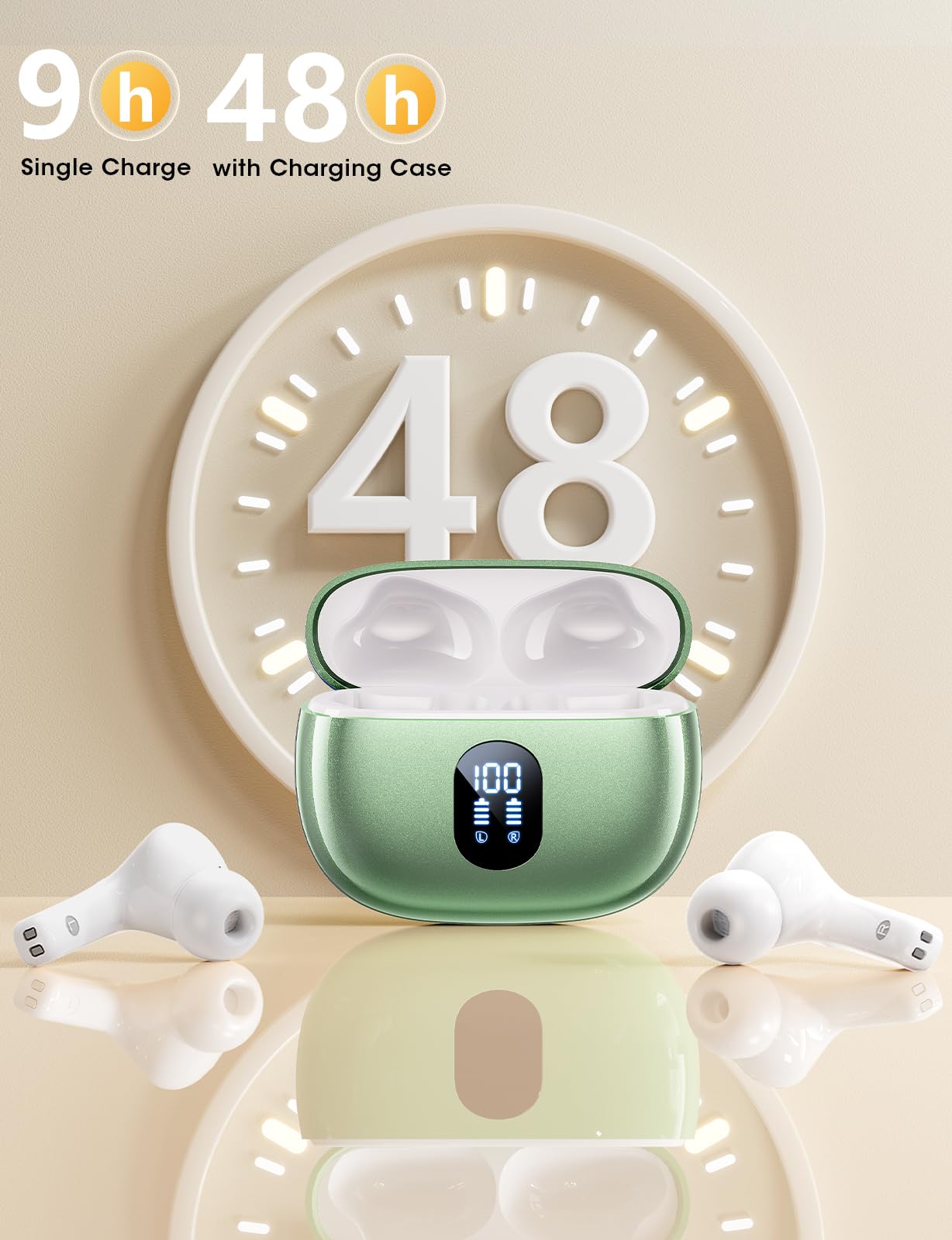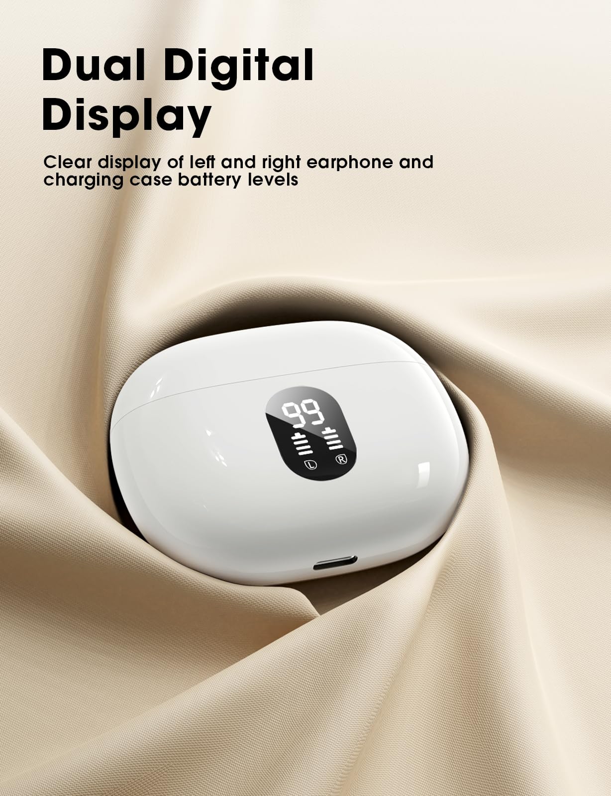 Bluetooth 5.3 & Instant Auto Pairing: Experience seamless connectivity with the latest Bluetooth 5.3 chip that guarantees faster pairing, stronger stability, and ultra-low latency as low as 0.05 seconds. Once you open the charging case, the earbuds instantly connect to your last paired device—no extra steps required. With a stable 33ft wireless range, enjoy uninterrupted, lag-free audio whether you’re streaming music, watching movies, or gaming. Designed for reliability and effortless daily use.