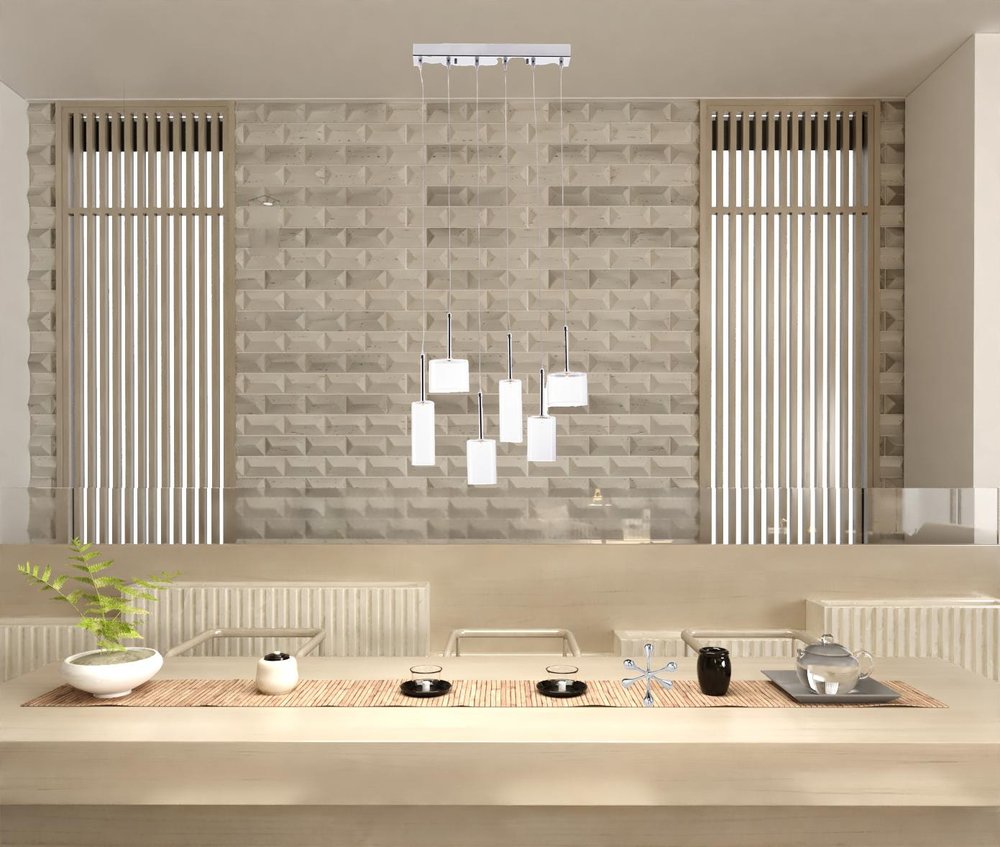 Dress up your entryway, dining room, kitchen, or bedroom with this silver kitchen island six light metal led ceiling light with shades. A silver finish, gives this light a classic and neutral tone to blend into many decor styles. This light will require hardwiring installation. Featuring 2 distinct levels of light, this piece will bring a special glow to your room. Get creative and change up the look of any room from hallway, to closet, to office or bedroom with this gorgeous hanging chandelier light fixture. 13-inch H x 21.7-inch W x 5.5-inch D