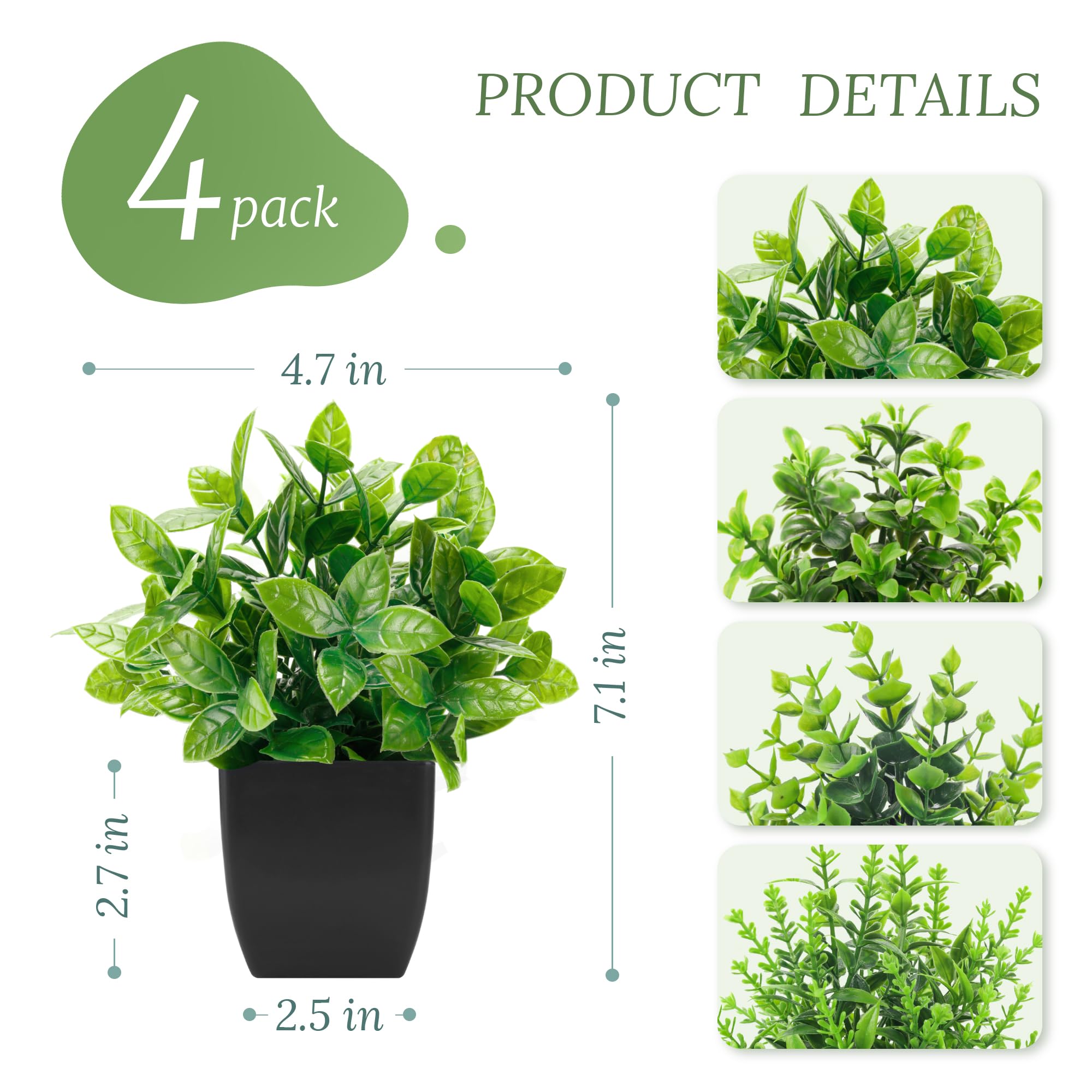 Package Contains: 4 kinds of faux plants indoor, these artificial potted plants are made of friendly plastic