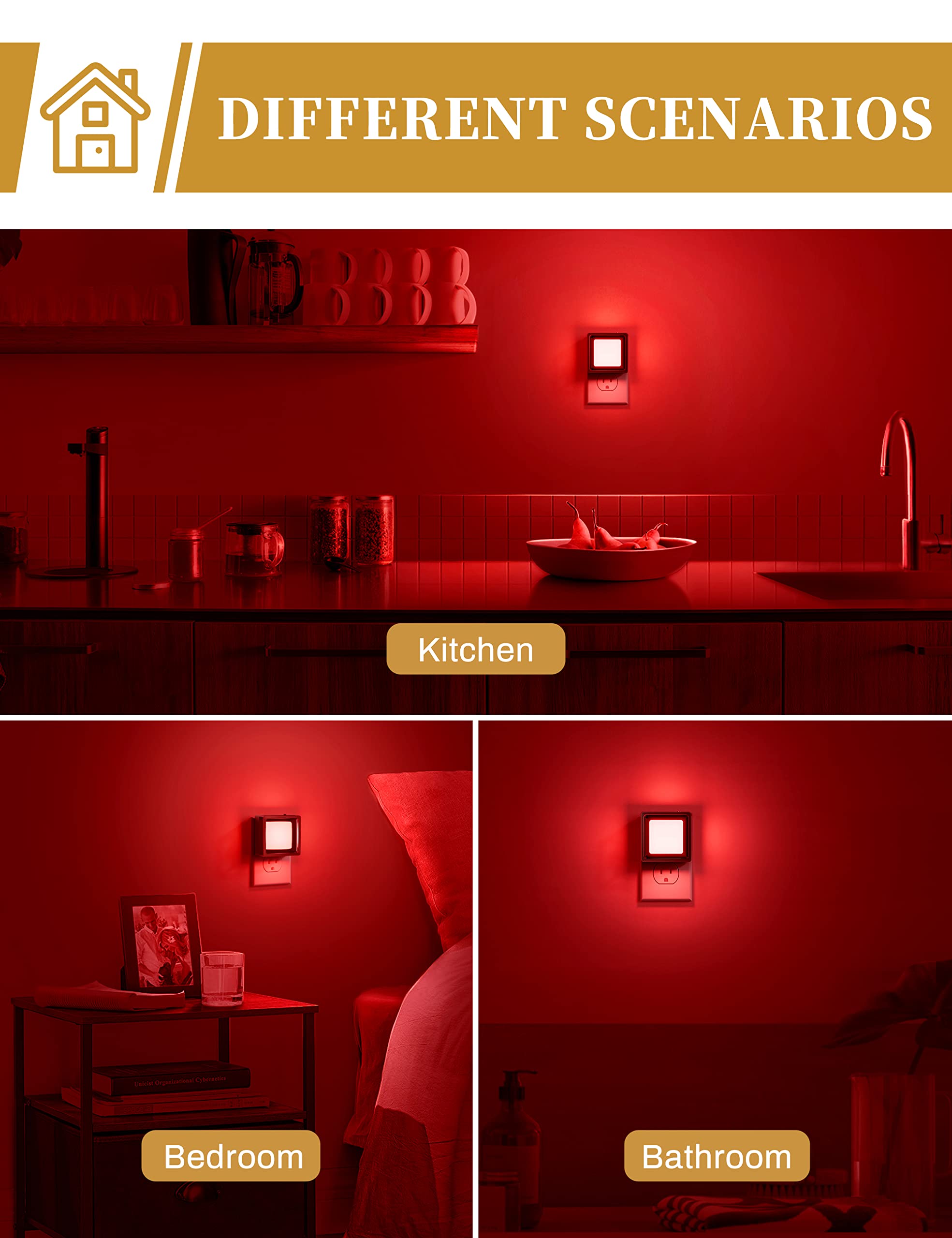 ENERGY EFFICIENCY: The night-lights with the maximum power consumption is only 1W, which helps save electricity bills and protect the environment. Perfect for bathroom, kitchen, nursery, hallway, bedroom, kids room, baby room, stairway, toilet, etc.Simple design can make your home more cozy and warm.