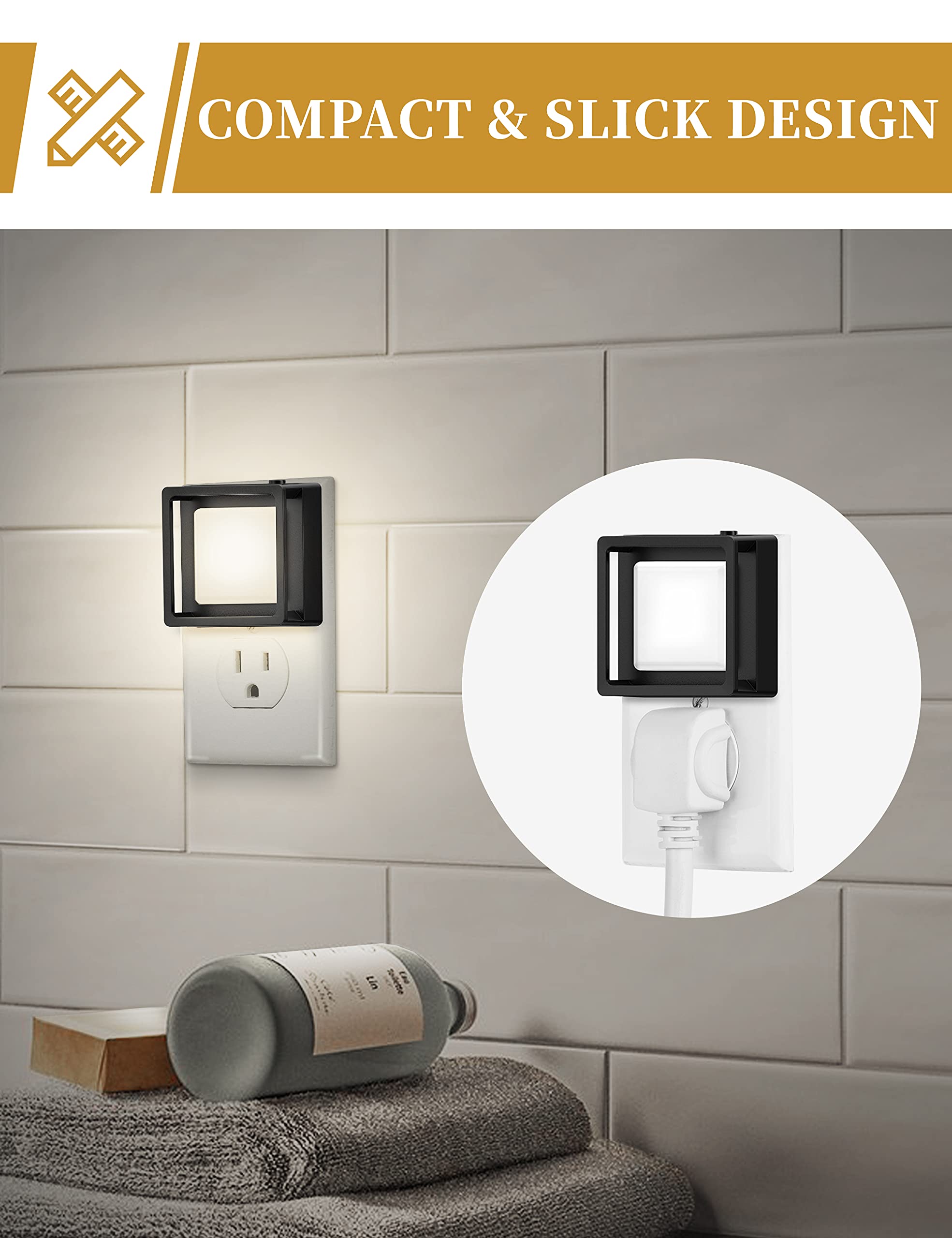 AUTO ON/OFF: The decorative night light with special smart light sensor chip will detect the luminance of surrounding environment, make night light turn on automatically at night and turn off in the daytime. Do not need to switch night lite on manually.