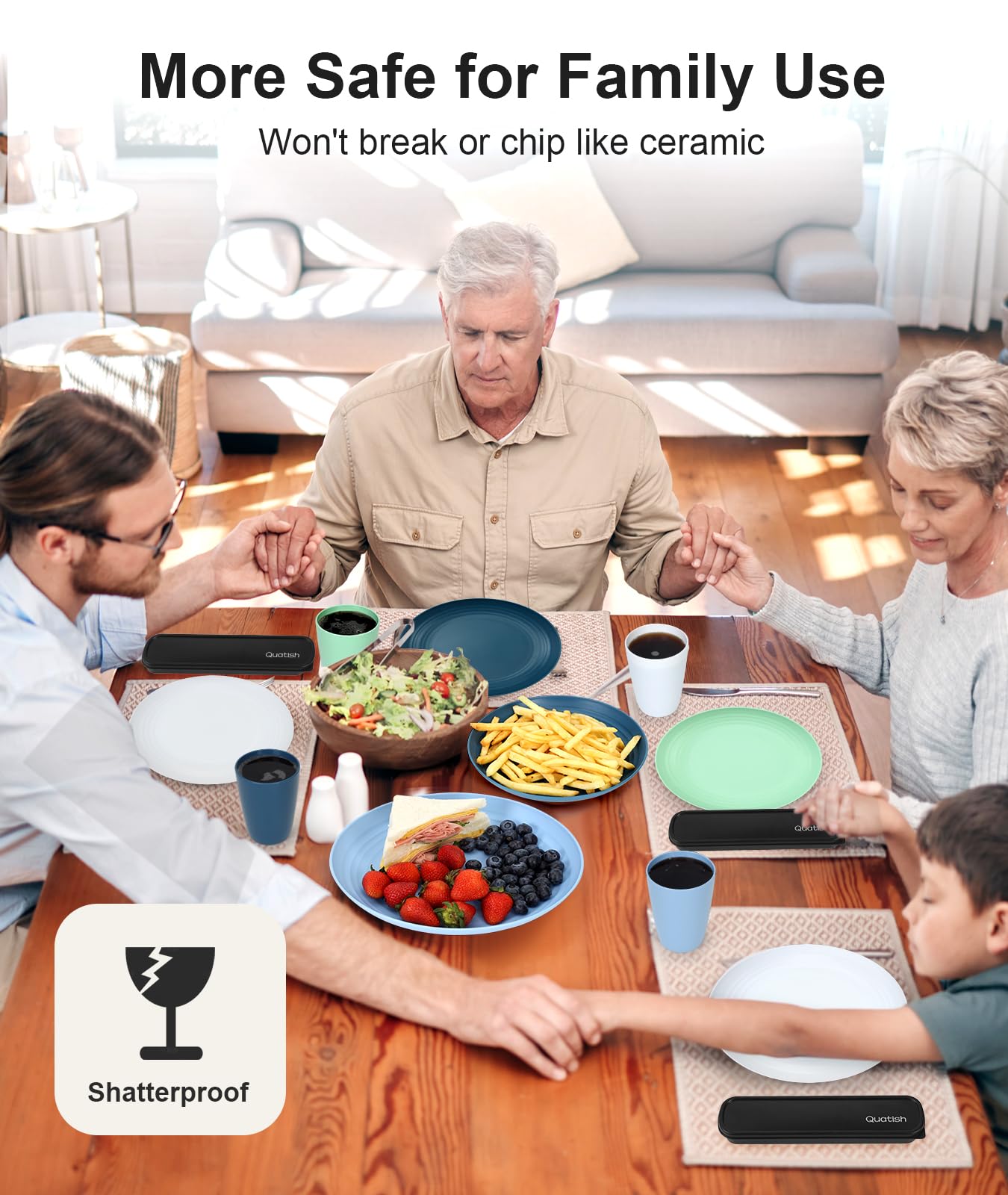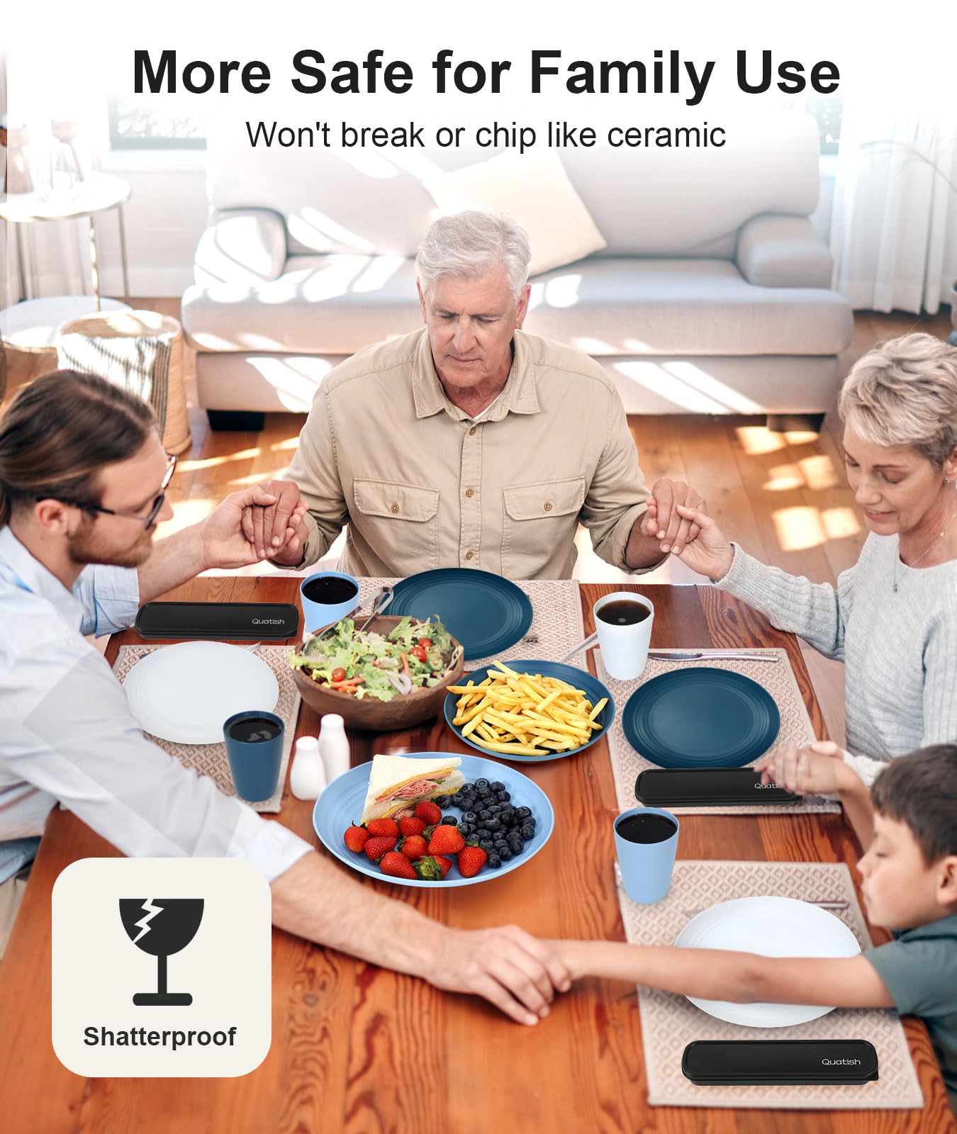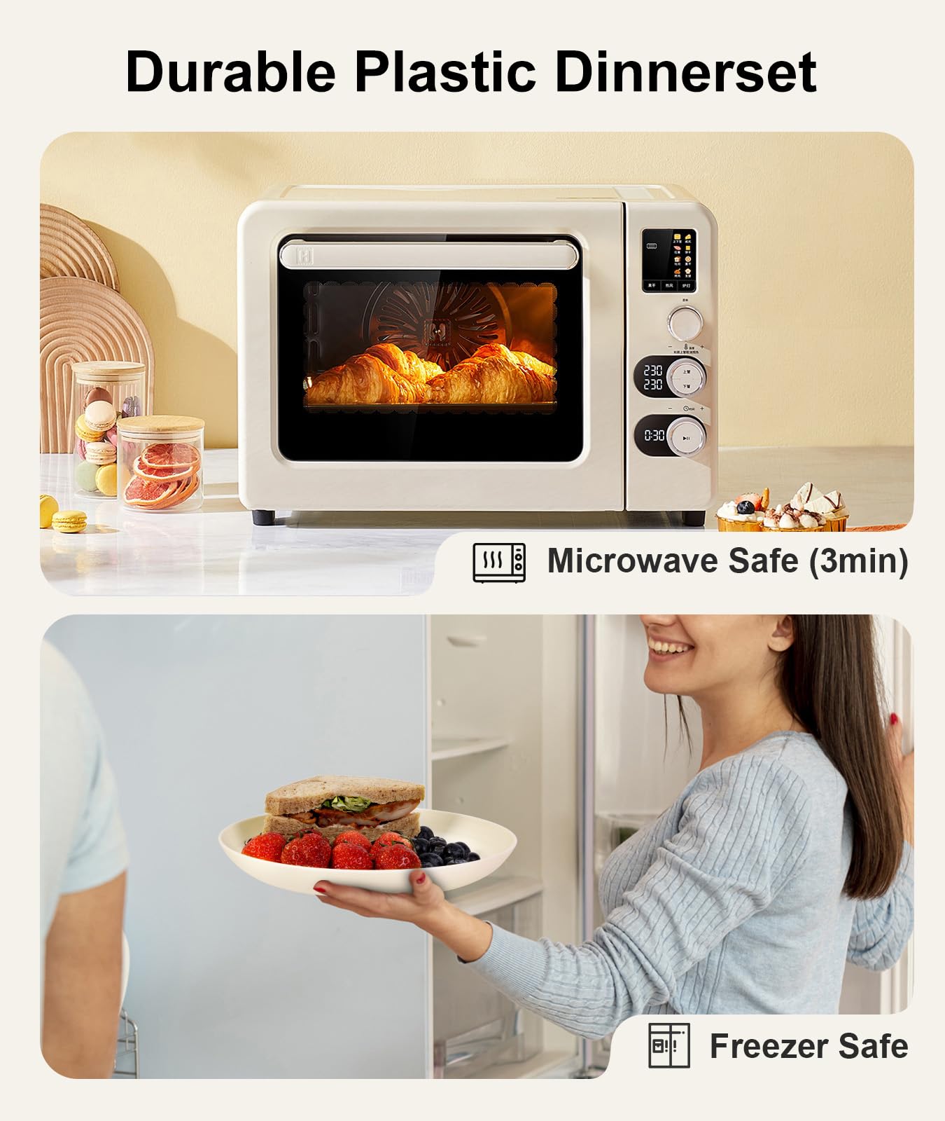 Durable and Kid-Friendly: Nearly unbreakable, shatterproof plastic dinnerware set with raised edges, resistant to chipping, scratches, and wear-related damage. Ideal for camping, RVs, beach houses, and safe for toddlers and children