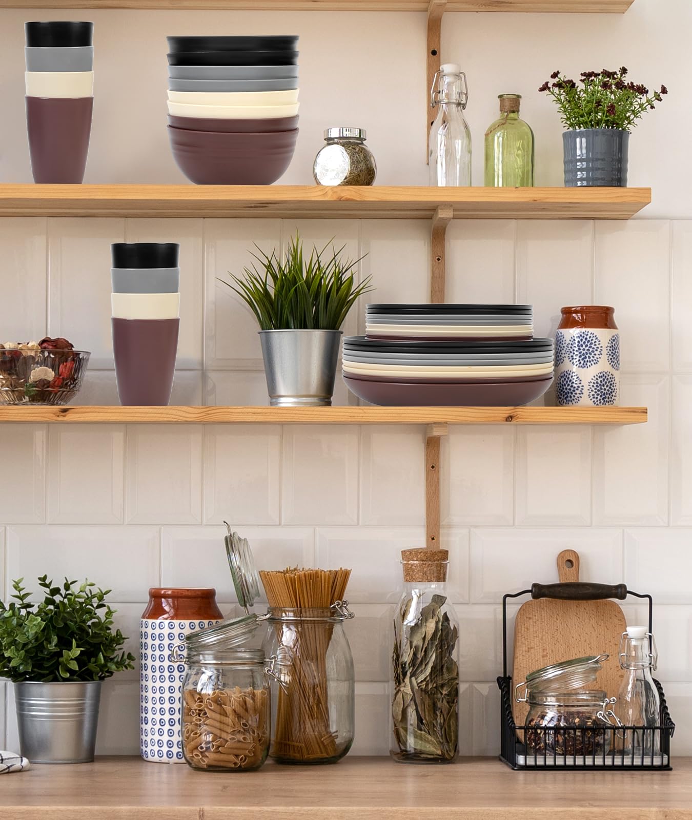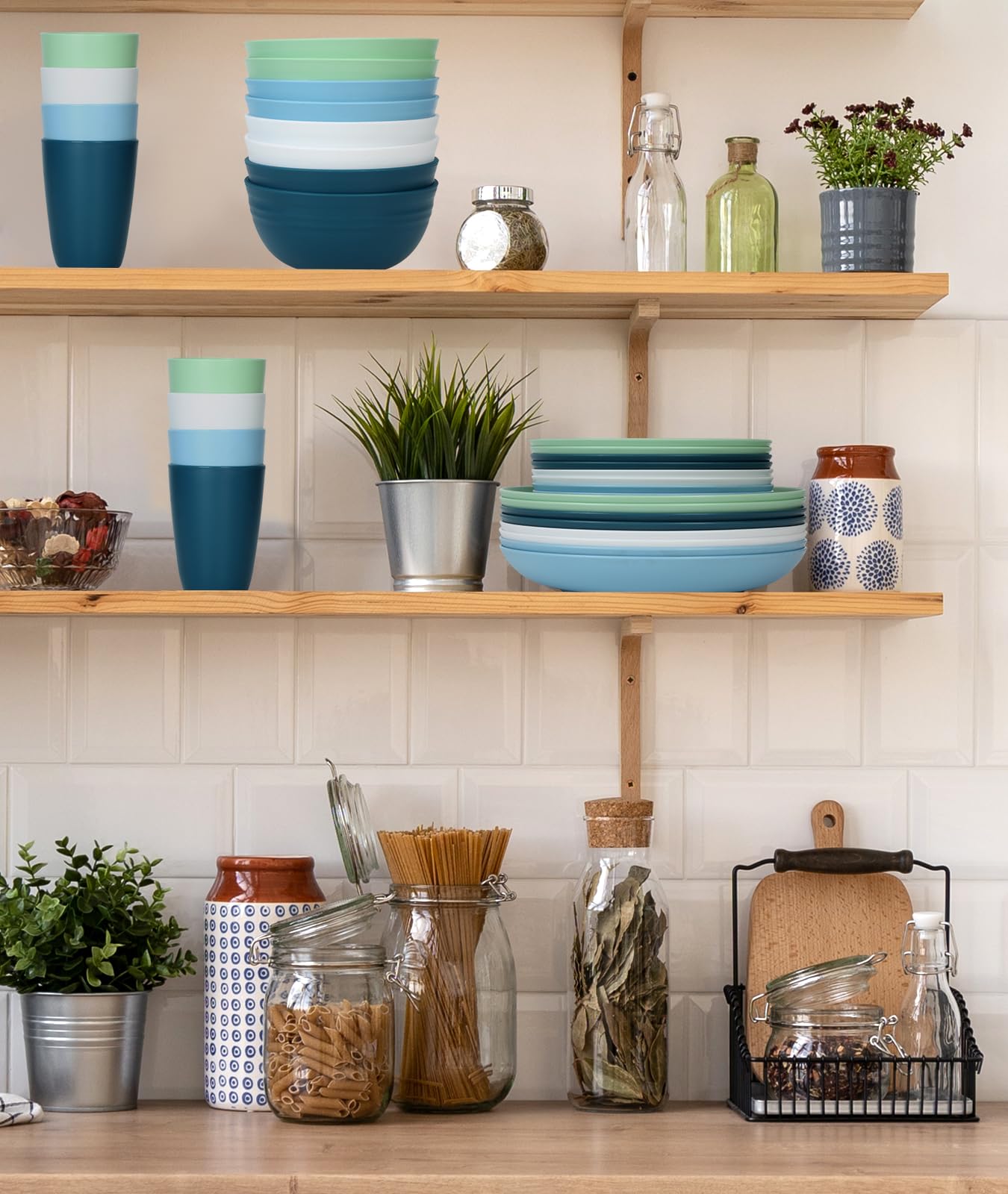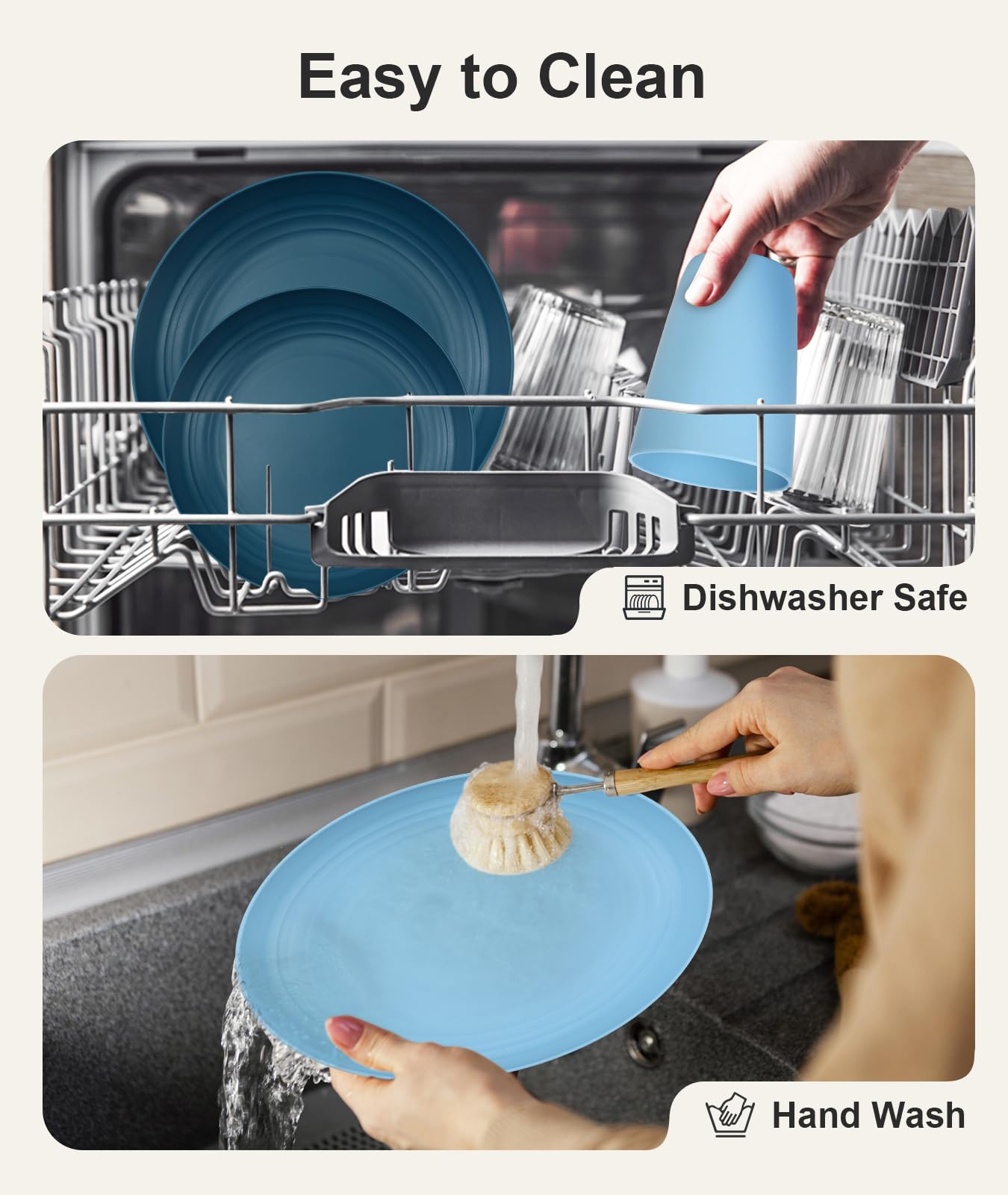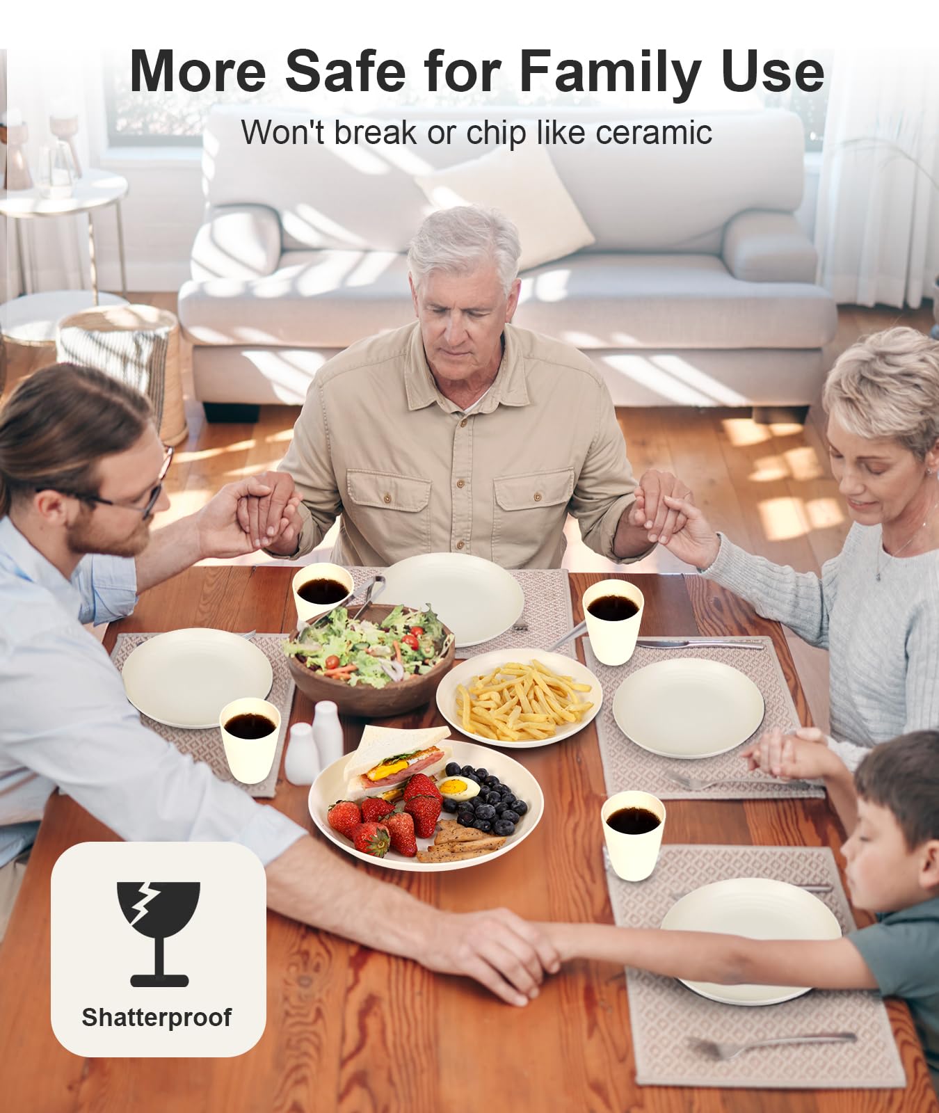 Durable and Kid-Friendly: Nearly unbreakable, shatterproof plastic dinnerware set with raised edges, resistant to chipping, scratches, and wear-related damage. Ideal for camping, RVs, beach houses, and safe for toddlers and children