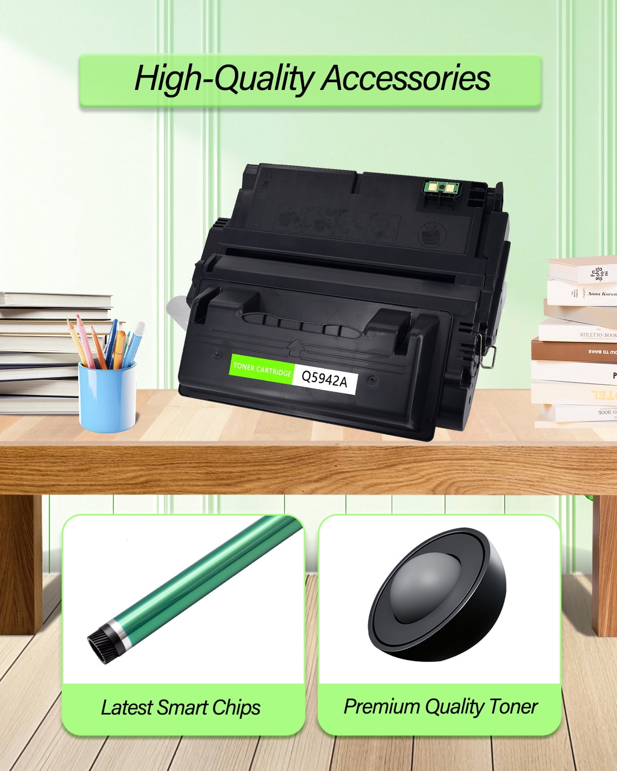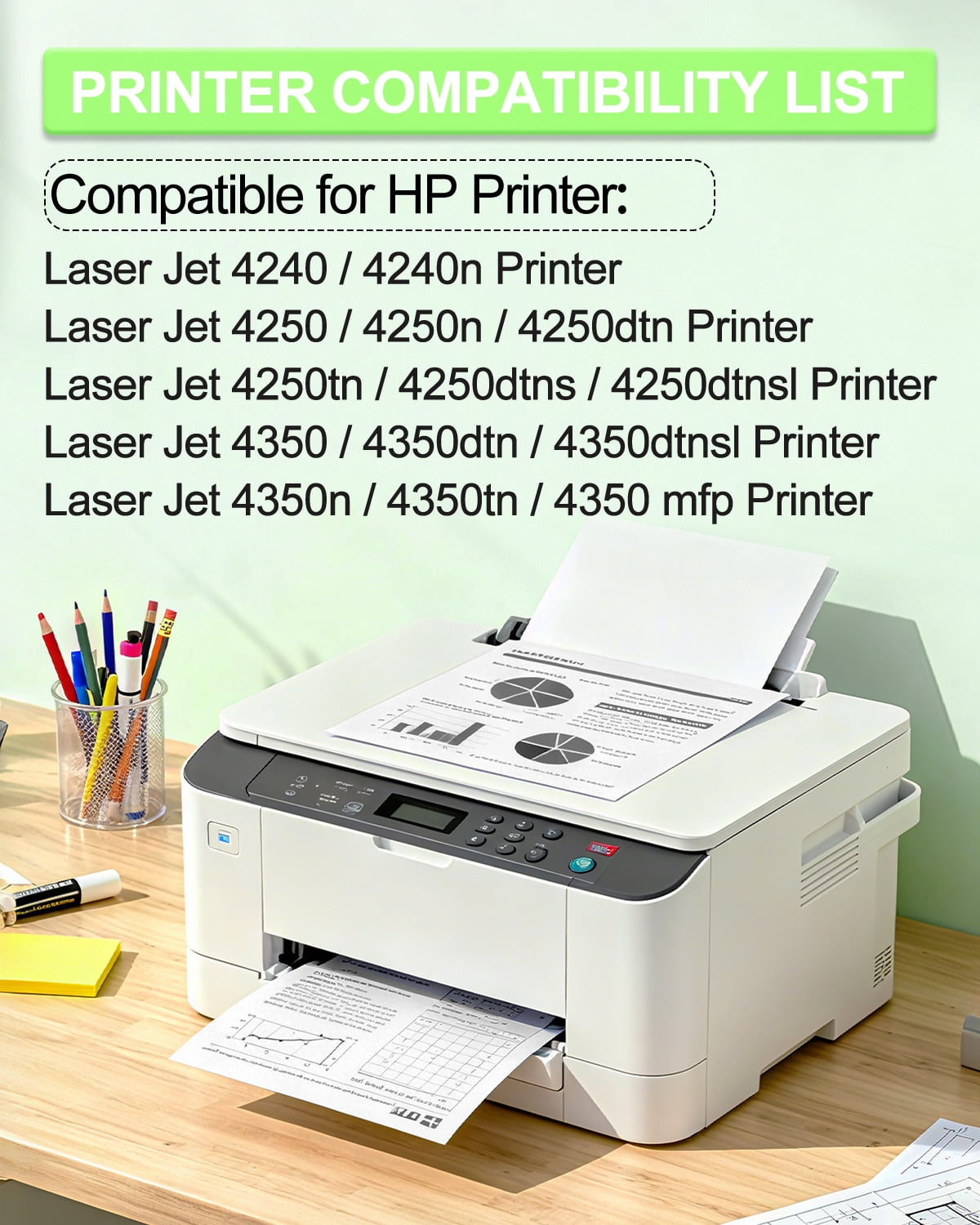 Model: Compatible for HP 42A Q5942A Toner Color: Black Page Yield: Up to 1,0000 pages per Q5942A black toner cartridge (based on 5% coverage of Letter size Paper). Actual toner yield varies with usage, graphics printed and environmental conditions. Compatible for HP Printer: LaserJet 4240 4240n LaserJet 4250 4250dtn 4250dtns 4250dtnsl 4250n 4250tn LaserJet 4350 4350dtn 4350dtnsl 4350n 4350tn 4350mfp What's in the box: 1 x Q5942A Black Toner Cartridge + 1 x User Guide All GREENCYCLE toner cartridges are strictly tested with industry quality control processes to perform superb results.