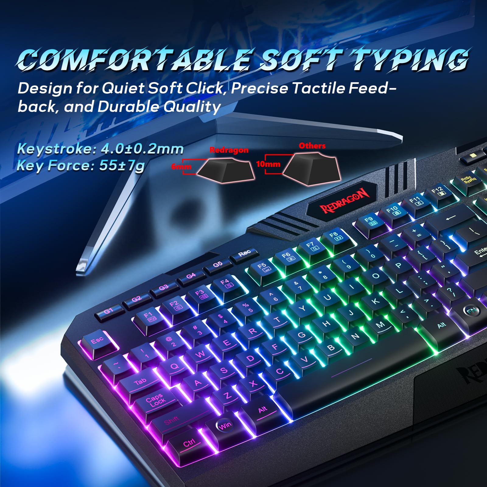 🌟PC GAMING KEYBOARD AND GAMING MOUSE COMBO: Includes Redragon RGB Backlit Computer Gaming Keyboard and Red Backlit Programmable Gaming Mouse. ALL-IN-ONE PC GAMER VALUE KIT, Fantastic for Gamers (New Improved Version)(NOTE: The keyboard's backlit is True RGB, but the mouse is single Red Backlit)