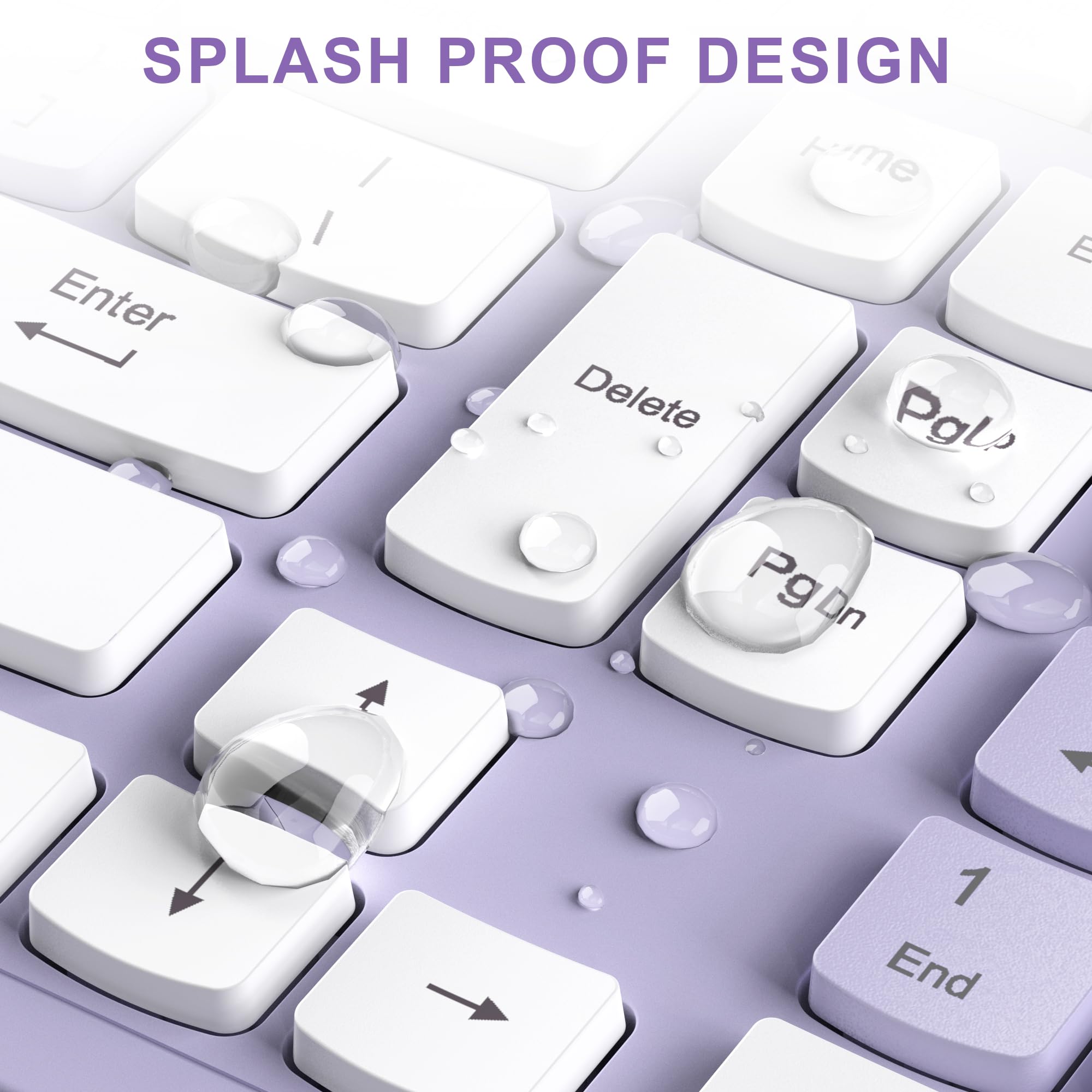 Wireless Keyboard and Mouse Combo, Full-Sized Wireless Keyboard and Adjustable DPI Mouse, 2.4GHz USB Receiver, Silent Keyboard and Mouse for PC, Windows, MAC, Desktop, Laptop(Purple)