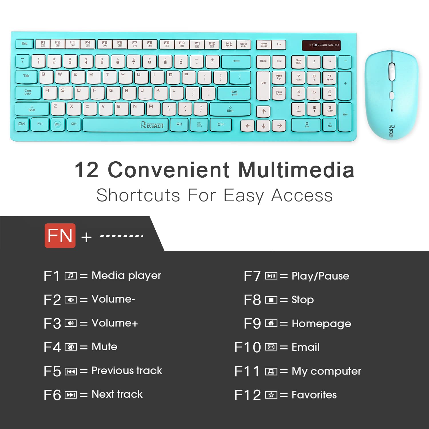 【12 Function Multimedia Keys】Reccazr wireless keyboard is with 12 multimedia function keys, you can quickly operate the multimedia player, volume adjustment, email, etc. .