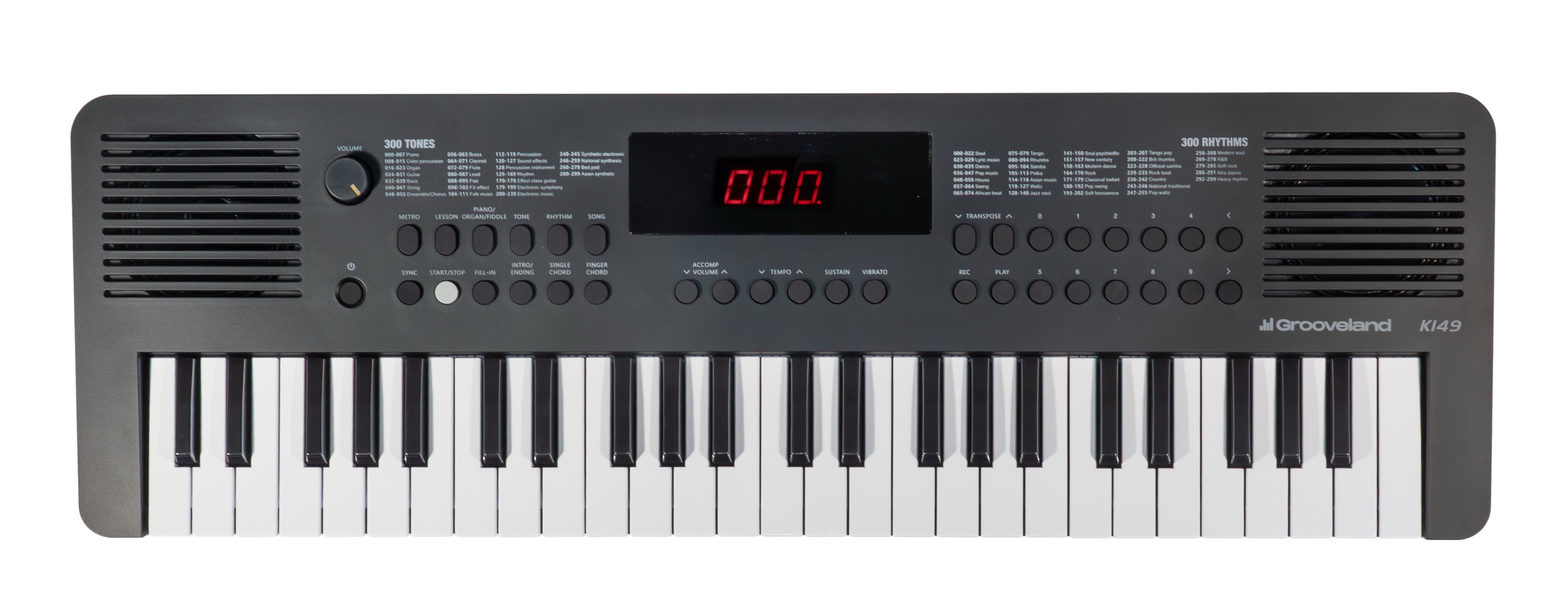 The Grooveland E149 is equipped with single and finger chord functions, style play/stop, and sync, so you can create realistic accompaniments. The clear LED display makes navigation easy and straightforward. The keyboard supports USB MIDI, making it perfect for use with music software.