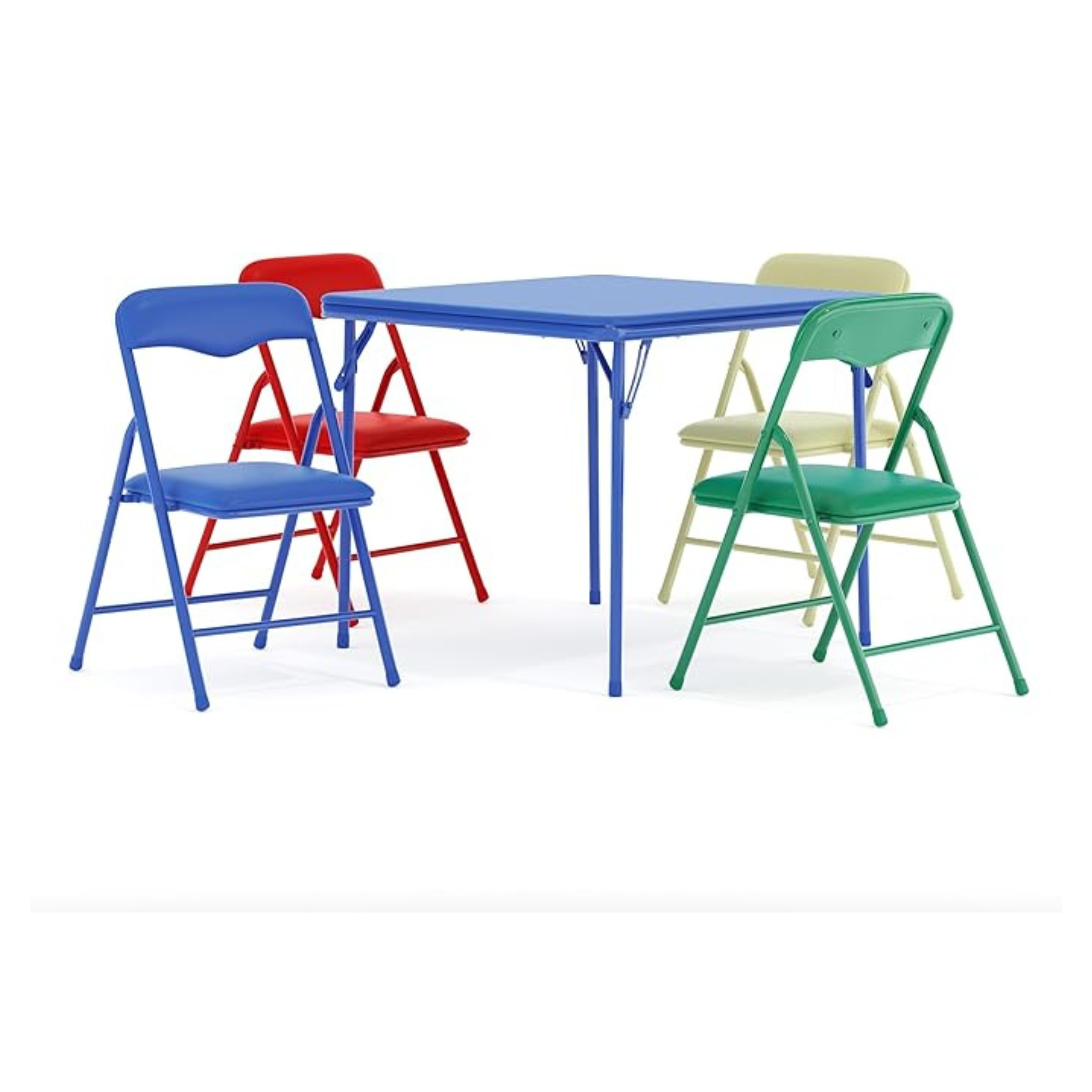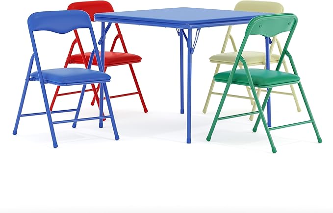 Parents, teachers, and daycare providers trust Flash Furniture for its high-quality, child-friendly furniture solutions. This 5-piece set includes one folding square table and four child-sized folding chairs, all crafted with durable vinyl surfaces that are easy to clean and maintain. With a foldable and portable design, this set is also an excellent choice for multi-purpose spaces where storage efficiency matters.
