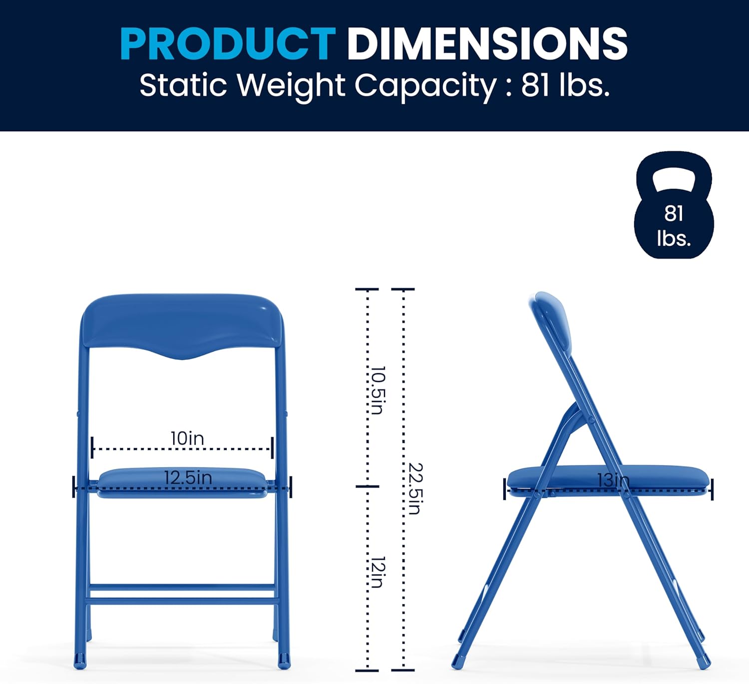 Chair Dimensions (Unfolded): 12.5" W x 13.5" D x 21.25" H