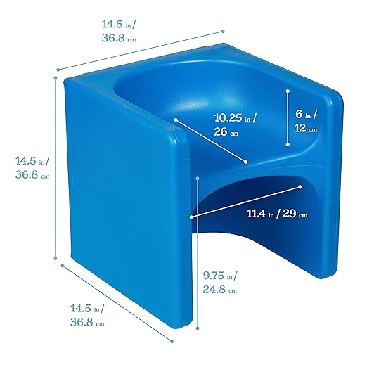 The ECR4Kids Tri-Me 3-in-1 Cube Chair in Blue is a smart, versatile, and durable solution for children’s seating and play needs. With its innovative cube design, this furniture piece transforms into three functions in one: a 6-inch toddler chair, a 9.75-inch kids chair, or a sturdy play table.