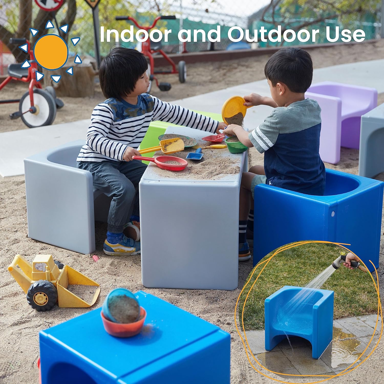 Outdoors: Weather-resistant design makes it great for patios, yards, and playgrounds.