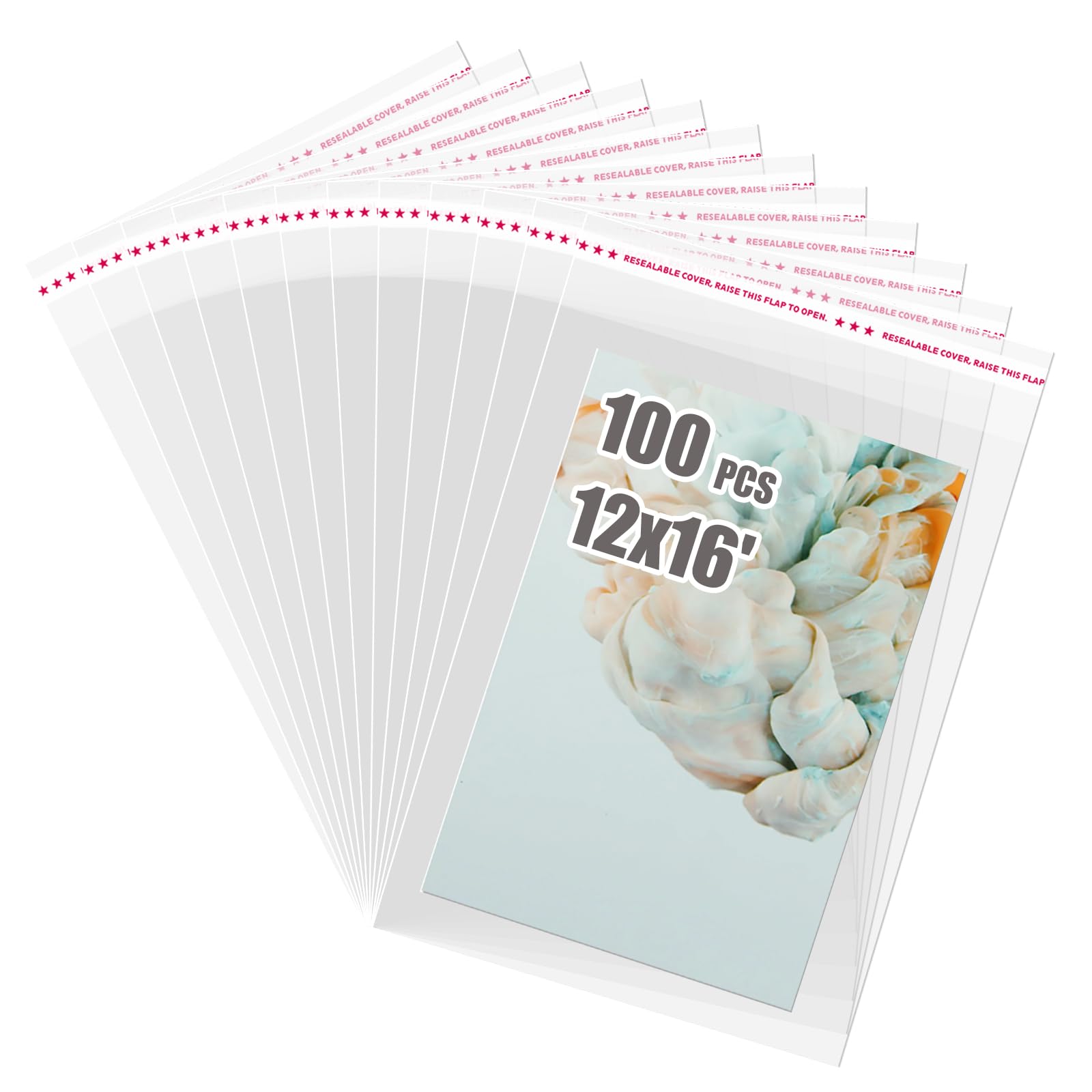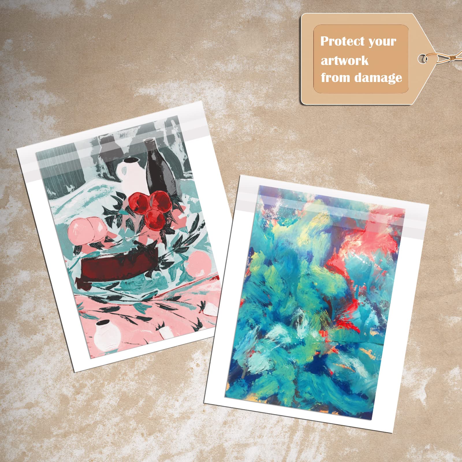 Easily Reusable - With a re-sealable adhesive strip on the flap, these self-sealing cellophane bags can be easily opened and closed, allowing for seamless reuse and protection of your artwork and other items.
