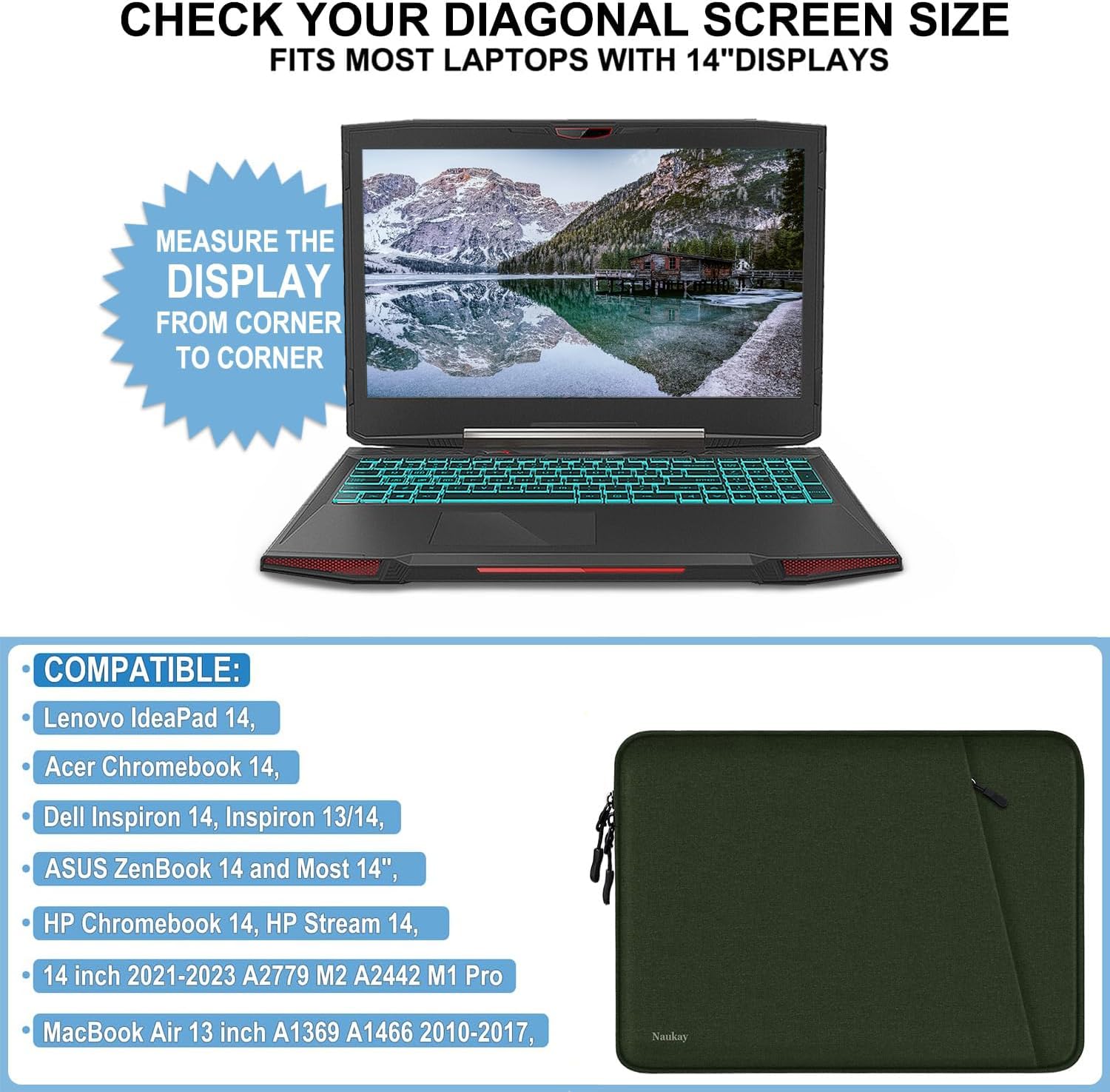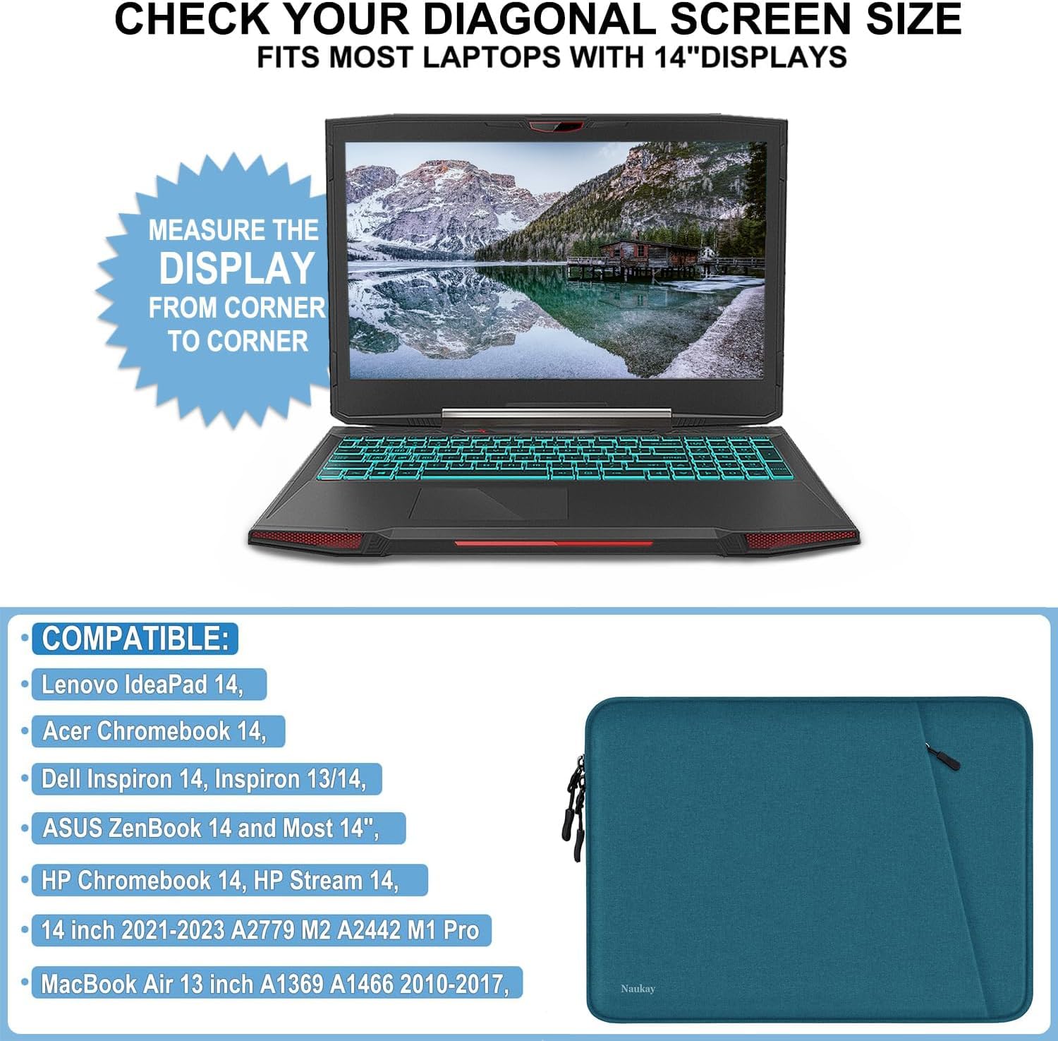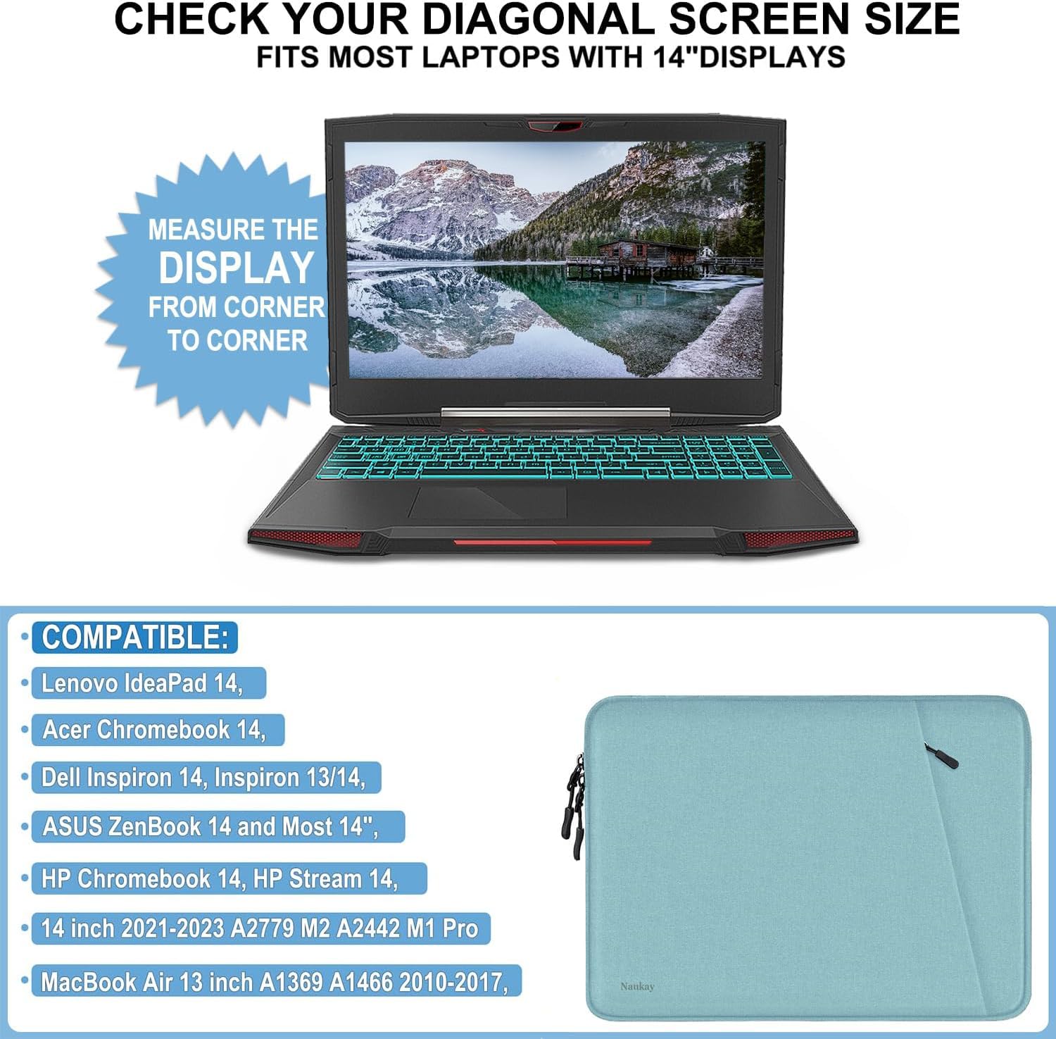 COMPATIBILITY: Our laptop sleeve is Compatible with most popular up to 13-13.3 inch notebooks, Compatible with MacBook Air 13 inch 2010-2022, MacBook Pro 13/14 inch 2008-2023, Dell Latitude 14, Inspiron 13/14, HP Elitebook 13.3/Spectre X360 13.3/Envy 13/Stream 13/Stream 14/Pavilion 14, Lenovo ThinkPad X1 Carbon, Lenovo IdeaPad 13/14, Acer Chromebook R13/ Spin 5 13.5.
