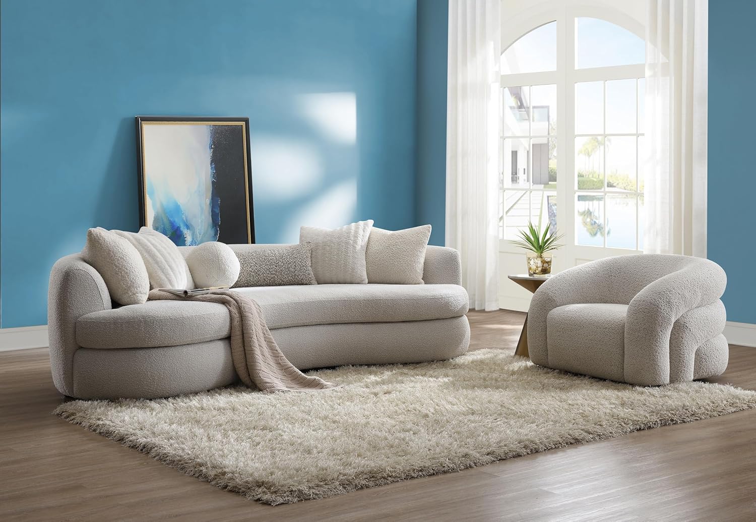 Introducing the Iniko Collection Sofa, where every curve whispers comfort and every detail speaks of sophistication. Enveloped in a luxurious textured light gray fabric, this exquisite sofa is designed to cradle you in comfort with its plush, inviting cushions and an array of soft pillows. Its elegantly flowing silhouette makes it a perfect centerpiece for your living space, inviting long conversations and cozy moments. The Iniko sofa turns your living room into a haven of relaxation and style, a place where every seating is an embrace and every moment spent is a memory cherished. Let it transform your space into a sanctuary of chic comfort, where life's simple pleasures are savored in the lap of luxury.