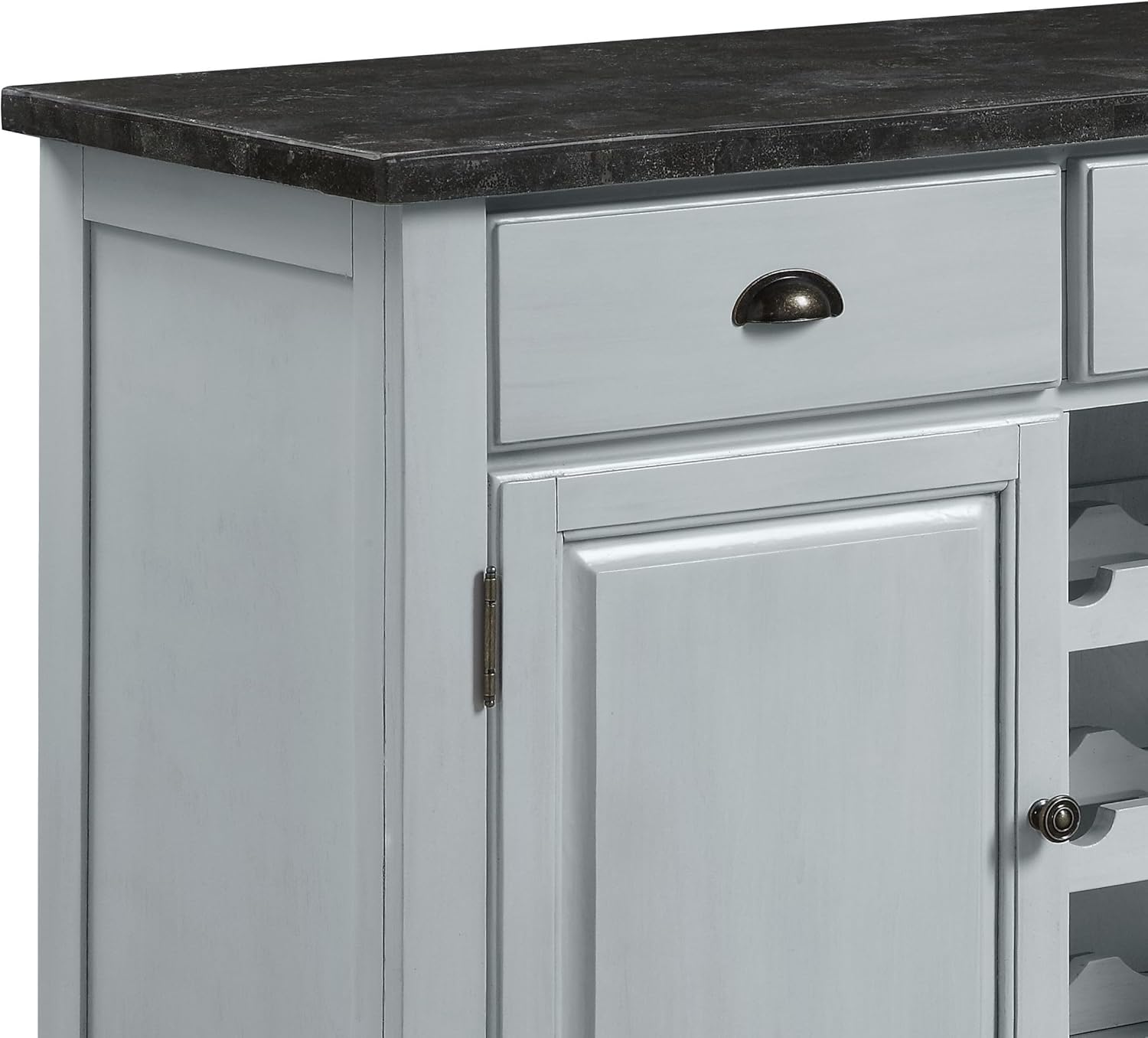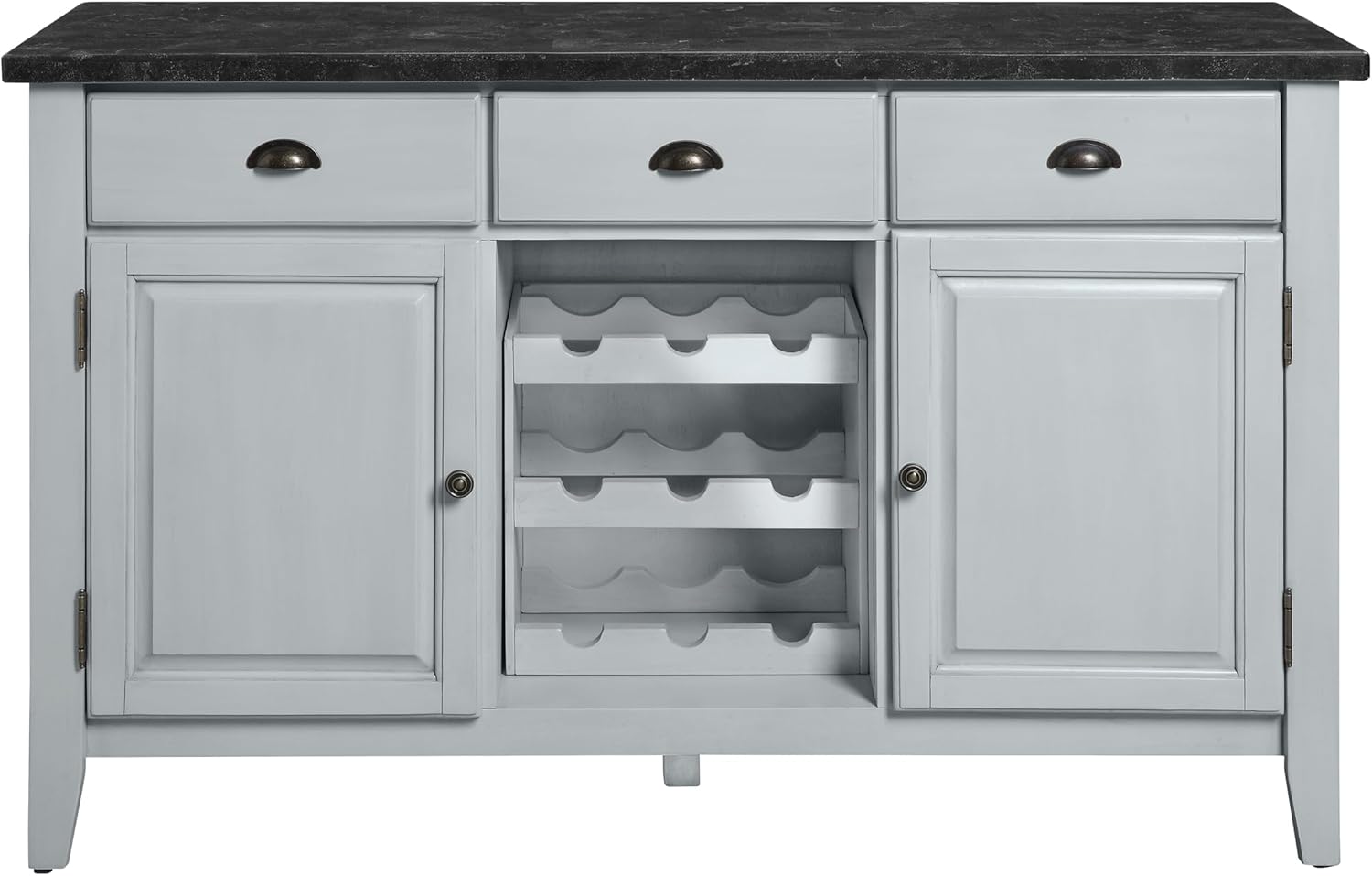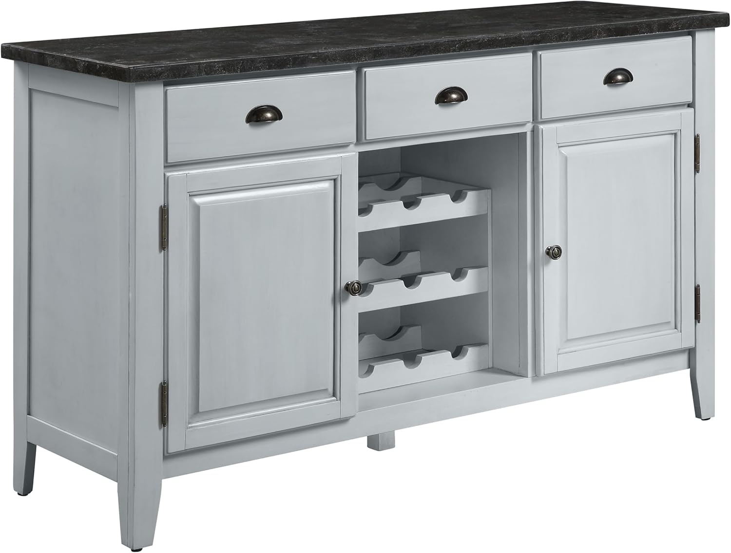 Never go out of style, this pure luxury and elegance bring uniqueness and updated style in any space. The Lanton Server features a classic black marble table top that exudes unashamed luxury and opulent touches. Understated wooden frame graced with antique white finish brings just the right amount of contrast and drama to its design. Versatile functions including felt-lined drawers, cabinets and three-tier wine rack add extra value to your dining space. Give your home that effortlessly chic with the Lanton Server.