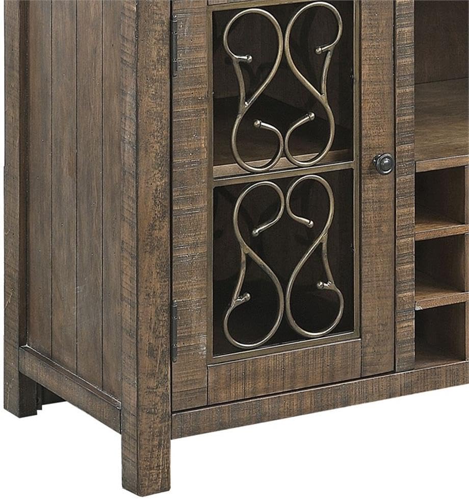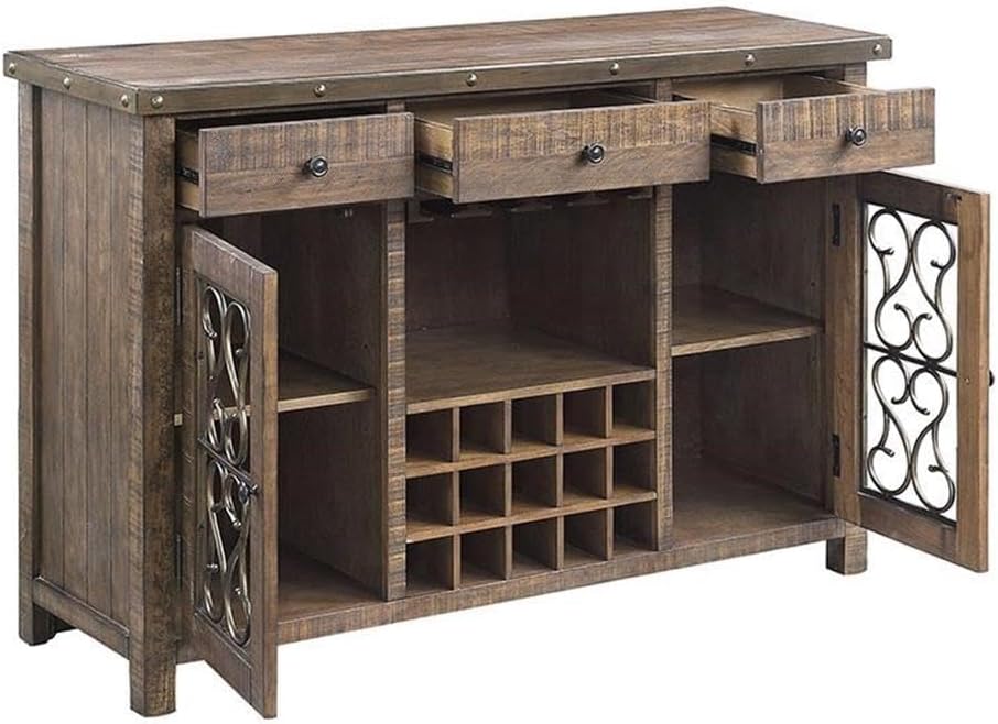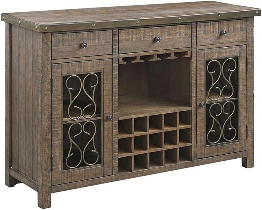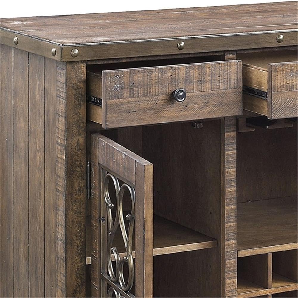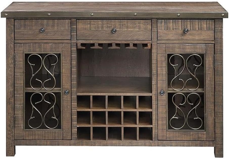 Acme Raphaela Wooden Server with Cup Holder and Wine Rack in Weathered Cherry
