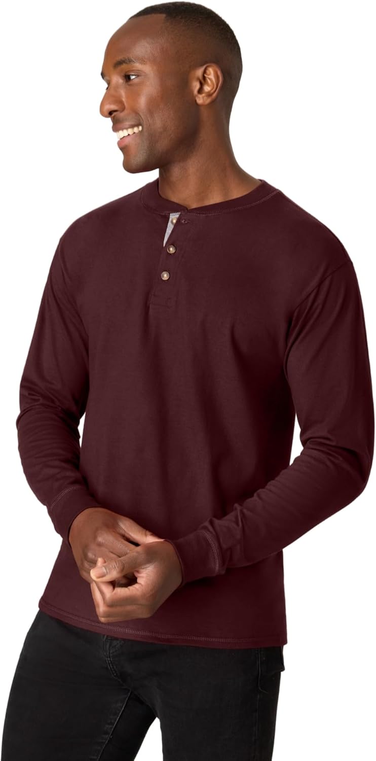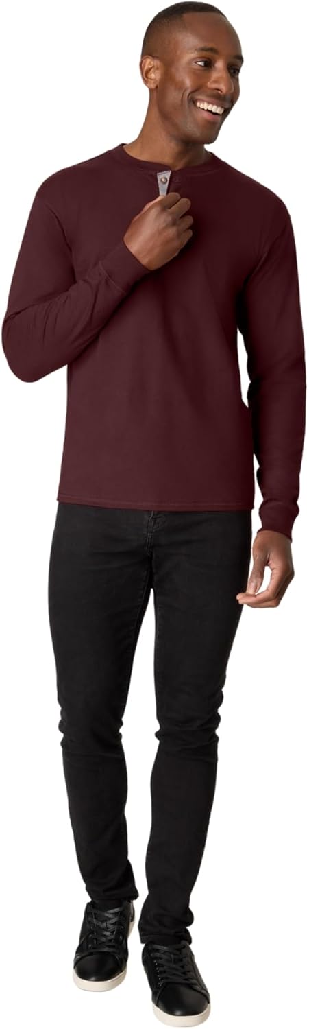 Legendary fabric. Classic Henley style. Easygoing comfort. Why not check all the boxes with a Hanes® BeefyT® Men’s Long Sleeve Henley? Crafted from the famous heavyweight cotton fabric that set the standard for t-shirt quality a half-century ago, Hanes Henleys for men boast the same sturdy details as the iconic Hanes t-shirts: Double-needle stitching, high-density stitch count, and shoulder-to-shoulder taping. What’s new is a three-button placket, traditional round collarless neckline, and long sleeves. So soft, you will want to wear it on repeat, these classics look great paired with jeans, khakis, or shorts.