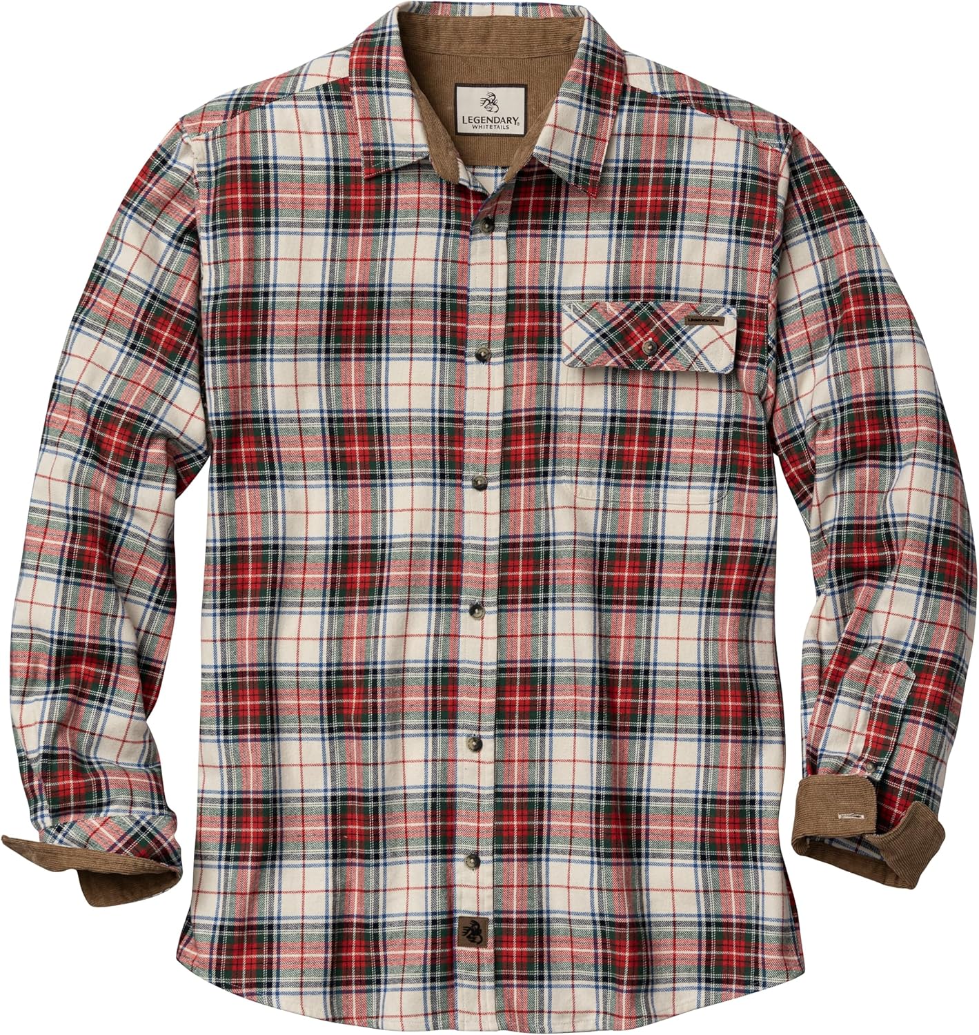 Our original single pocket flannel - The Buck Camp Flannel Shirt is the perfect weight to wear alone or layered over a t-shirt or under a shirt jacket. The traditional style and signature corduroy details offer unmatched durability, while the relaxed fit and brushed cotton flannel provide ultimate comfort. With multiple exclusive plaids and solids, they're suitable for any occasion from the woods to the office. The Buck Camp Flannel Shirt gives you an incredible "bang for your buck"! Big & Tall sizes are designed for men over 6'2" and add 2" in body length and 1-1⁄2" in sleeve length.