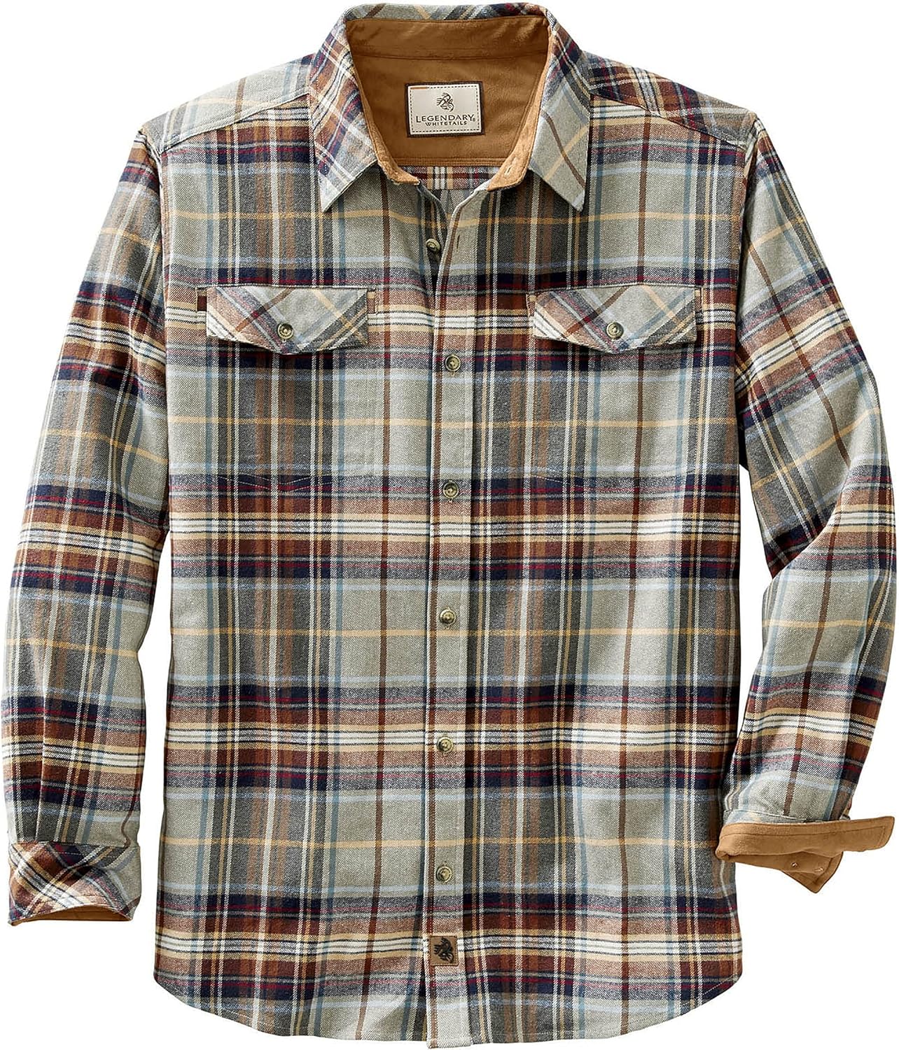 The Men's Legendary Flannel Shirt is the ultimate shirt for all your indoor and outdoor activities. We engineered it with the same relaxed fit as our other shirts, then raised the back yoke and added stretch to achieve a custom fit that gives you full range of motion without any tugging or pulling... even at full draw! Additional features include convertible pocket flaps that can be buttoned or tucked in, and super soft suede knit lined collar and cuffs. If you like our Buck Camp Flannel Shirt , you're going to love the new Legendary Flannel!