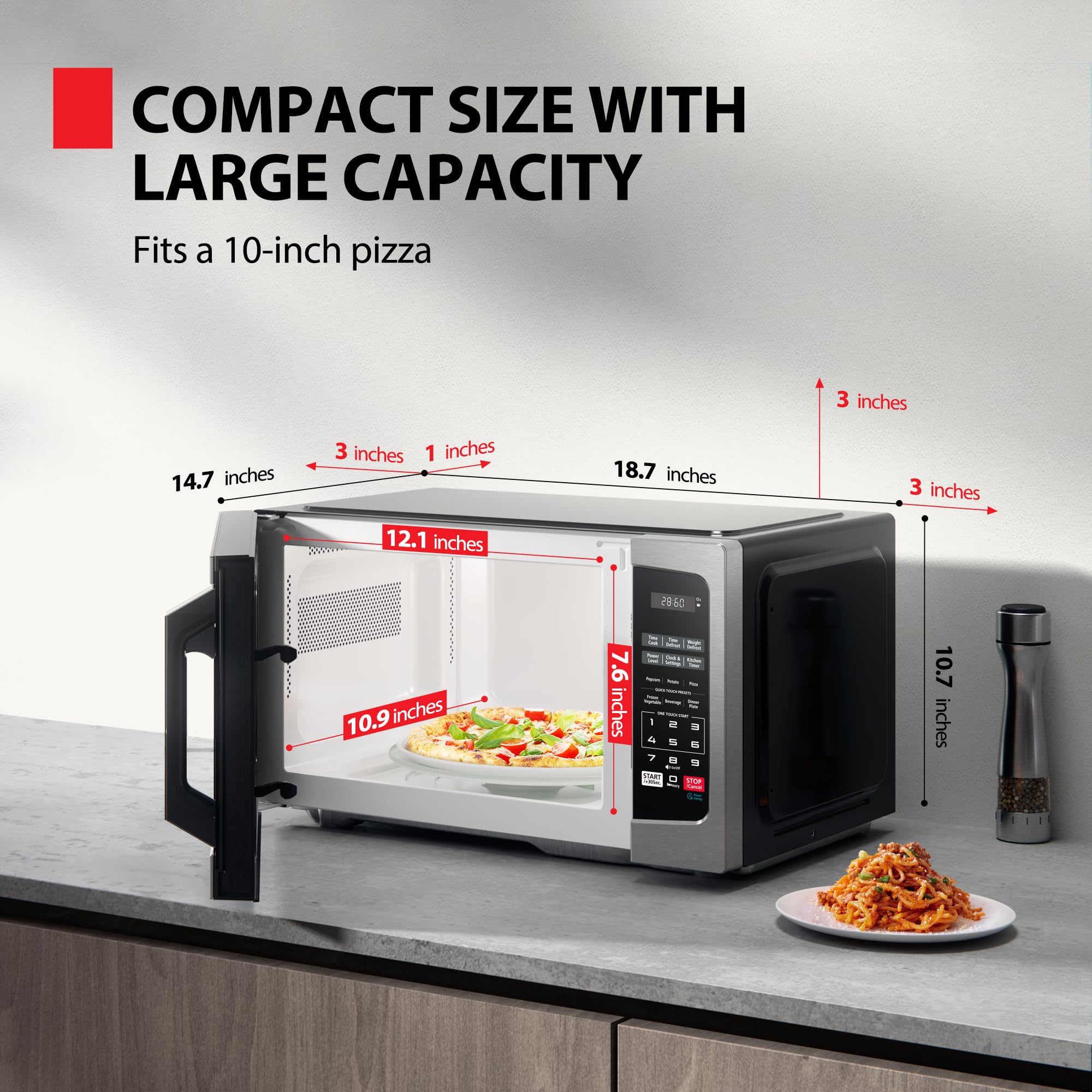 TOSHIBA ML-EM09PA(SS) Small Microwave Oven with 6 Auto Menus, Mute Function & Child Lock, LED Lighting, Perfect for Apartments & Dorms, 0.9 Cu Ft, 10.6 Inch Removable Turntable, 900W, Stainless Steel