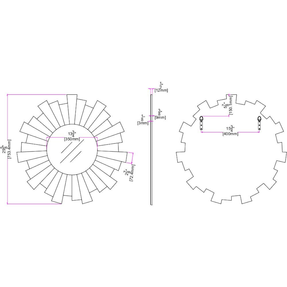 Beautify your space with an ornament that's original and unique at the same time with this 30-inch clear sunburst framed accent mirror. Inside the frame there is a sunburst shaped mirror which will open up any space you hang this piece in. This frame works nicely with the full-bodied mirror in the middle. Its modern style making this the perfect versatile accent piece for most any decor. It is the perfect wall decor to keep up all year round. On its own or in multiples, this mirror is a perfect accent piece for an entryway, bathroom, bedroom or any room in your home. 29.63-inch H x 29.63-inch W x 0.38-inch D