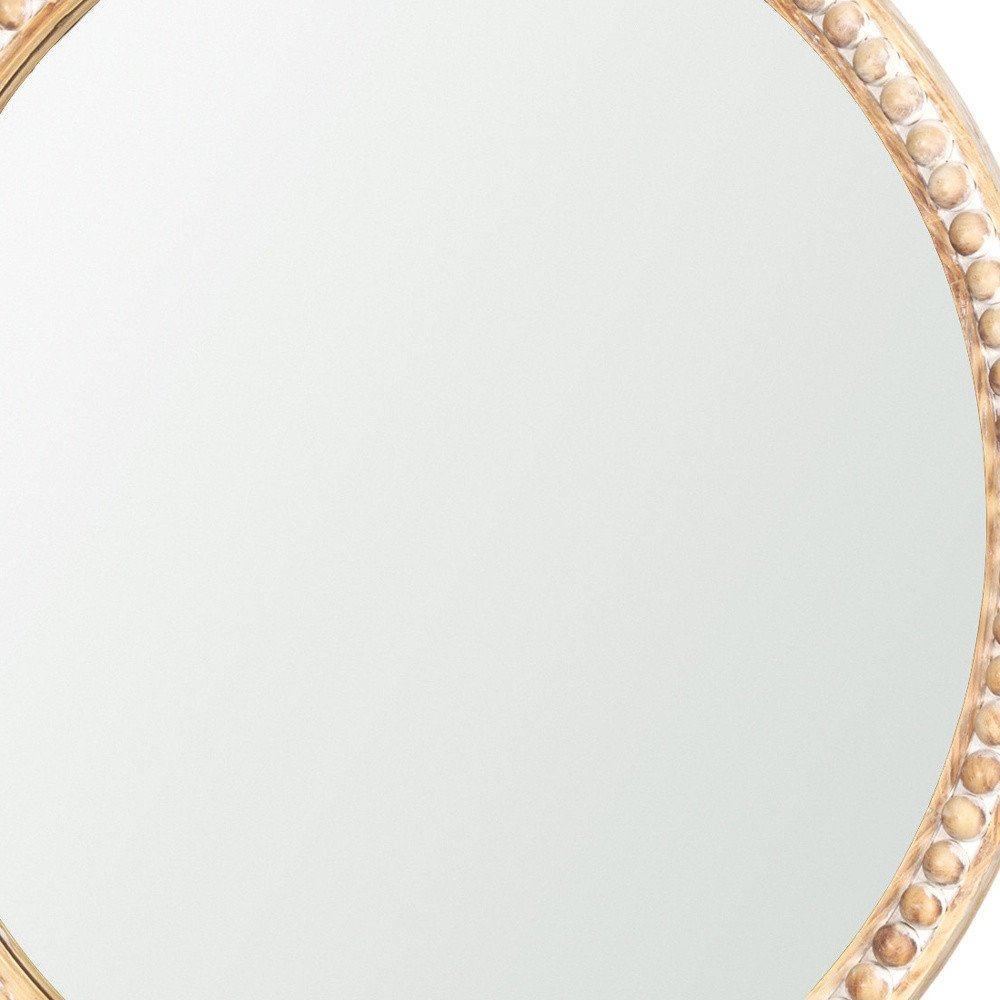 Beautify your space with this 30-inch natural solid wood beaded round framed accent mirror. Framed with solid mango wood that features whitewash distressing and beaded detailing, this mirror will bring practical application and fashionable design to your space, adding some modern flair to your decor. Features quality craftsmanship in every facet that ensures durability and long-lasting wear. Produced with premium quality glass for a beautiful reflection, this mirror will provide an exceptional visual experience. 30.04-inch h x 30.04-inch w x 1.48-inch d.