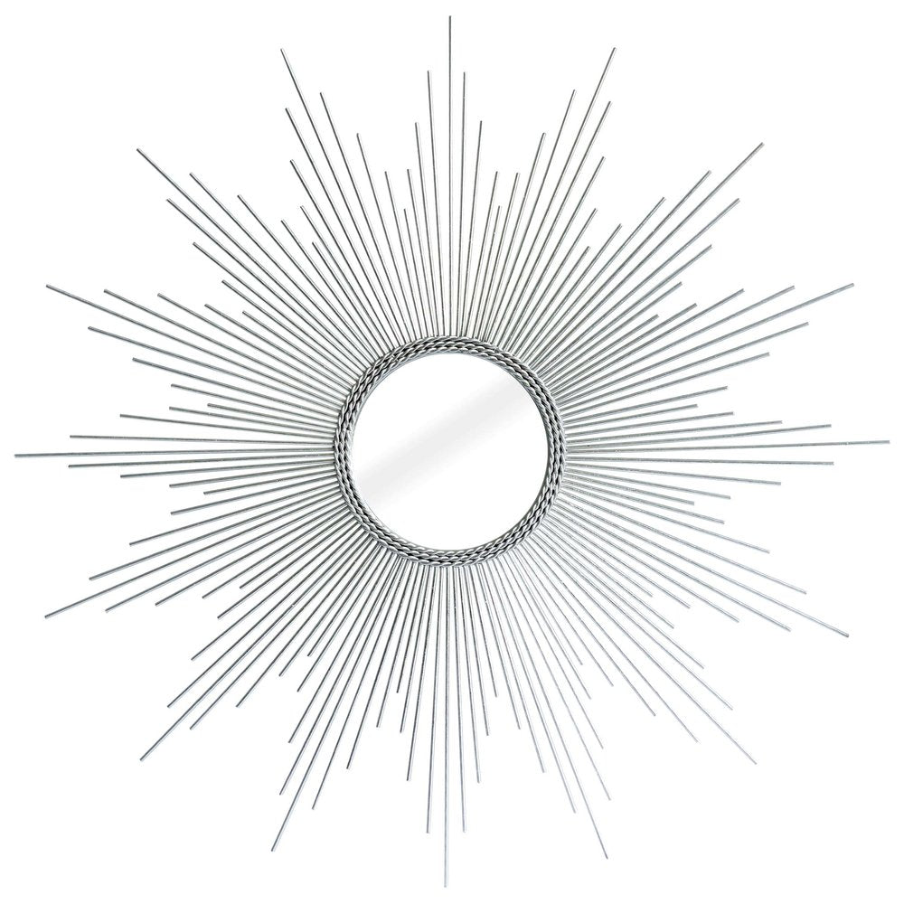 Add a touch of sunshine to any space in your home with this 32-inch silver metal sunburst geometric framed accent mirror. Framed with metal, this mirror will bring practical application and fashionable design to your space, adding some traditional flair to your decor. This mirror will be a great useful addition to your home but will also help elevate the space in the room. Add this exceptional quality mirror to your space for a beautiful reflection and a bit of elevated style. 32.00-inch h x 32.00-inch w x 1.00-inch d.