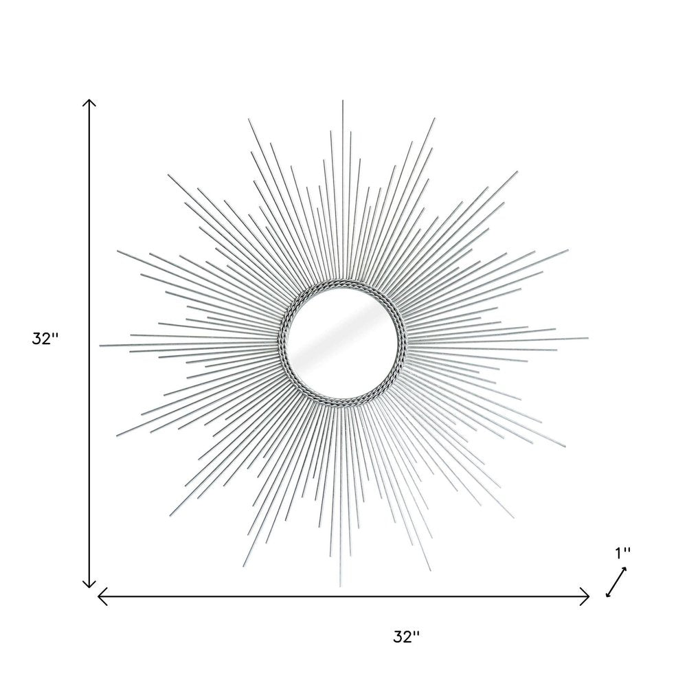 32" Silver Metal Sunburst Geometric Framed Accent Mirror