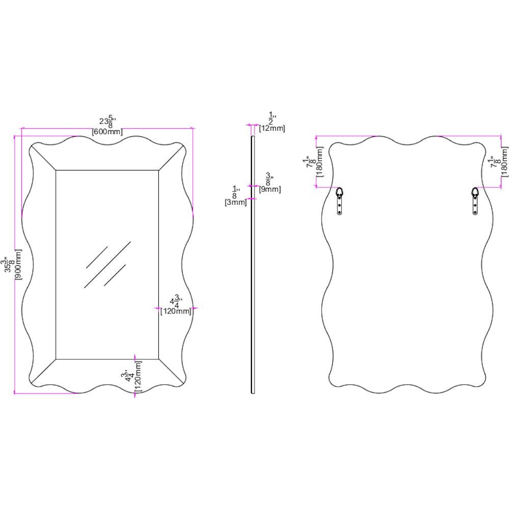A delectable piece of furniture, this 35-inch clear novelty glass framed accent mirror is an embellishment perfect for your rooms. The novelty shaped mirror adds a nice touch of depth and texture and also makes it very practical. This frame works nicely with the full-bodied mirror in the middle. The mirror of modern style can also decorate your room and bring brightness to your living space. Its both exceptional and tasteful, and its tough as well. This mirror has the perfect length to place against your wall and will match all aesthetic. 35.38-inch H x 23.63-inch W x 0.38-inch D