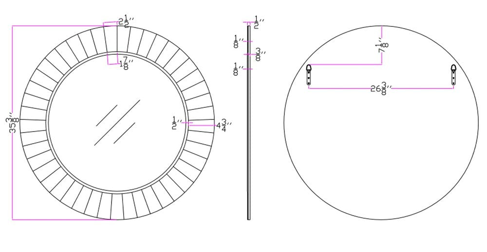 Beautify your space with an ornament that's original and unique at the same time with this 35-inch clear round glass framed accent mirror. This round shaped mirror will open up any space you put in piece in. This mirror makes any room glow with its fantastic frame. The mirror of modern style can also decorate your room and bring brightness to your living space. Its style is certain to get rid of that trifling feel of boredom, and the quality of its finish and color will grant your place a flavor of fashion. This mirror can fit perfectly in any space and give that space a distinctive look. 35.38-inch H x 35.38-inch W x 0.5-inch D