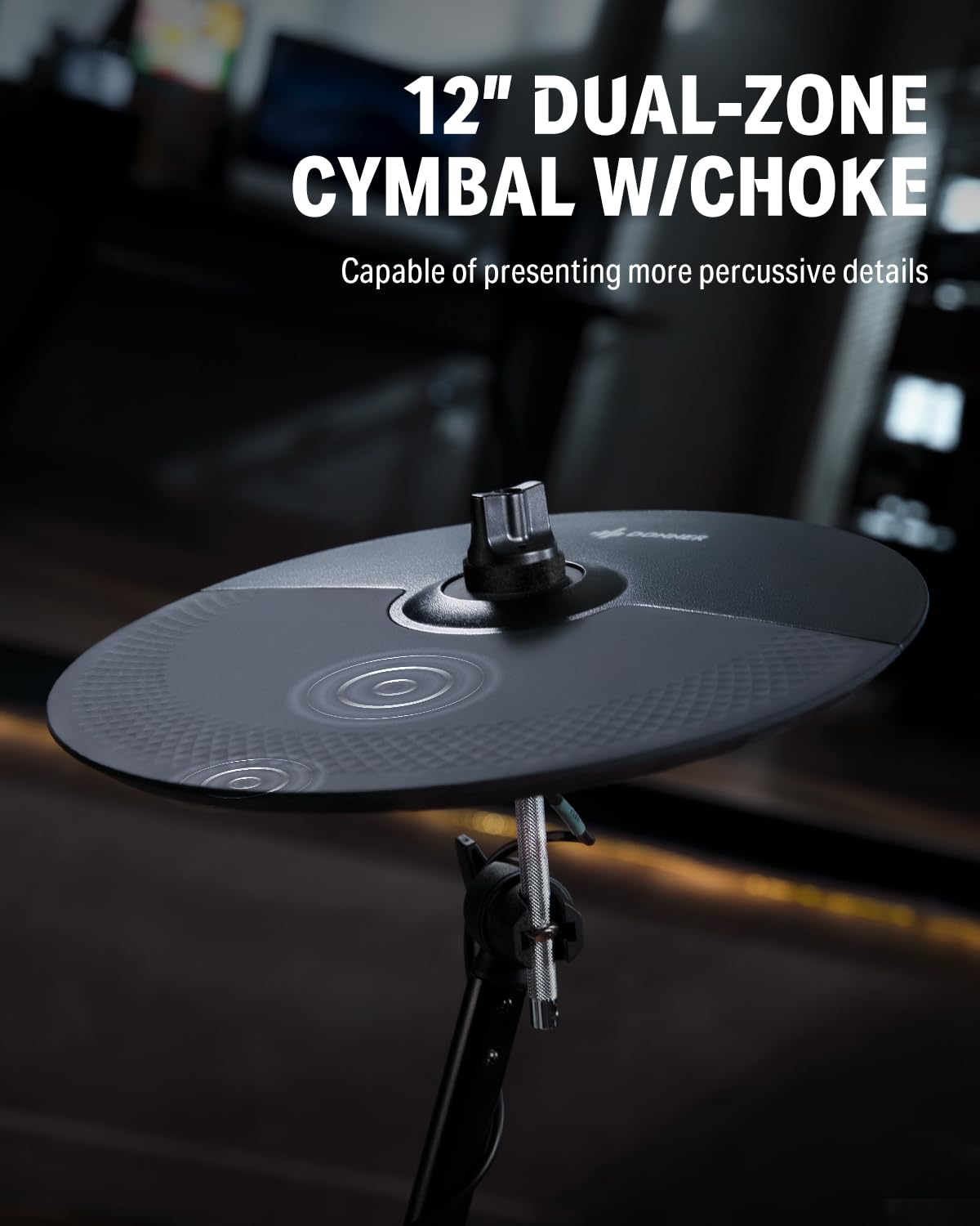 【Experience the Difference of Mesh Heads】The full mesh electronic drum set provides drummers with the most realistic and responsive feel, thanks to its unique and robust mesh heads that do not deform or sag over time, giving a closer feel to acoustic drums.