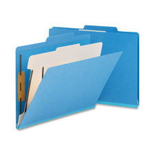 Classification folders make ideal project files because they allow you to create subdivisions of material within one folder. Fasteners on the front and back panels and the dividers create separate filing surfaces. Reinforced self tab is 1/2" high and 2/5 cut right of center. Each 14 point folder expands 2" and offers two 2" prong B-style fasteners in positions 1 and 3. Dividers are made of 18 point manila stock and feature 3/8" high tabs (1/3 cut) and 1" twin prong fasteners on both sides. Divider is fully taped to the gusset.
