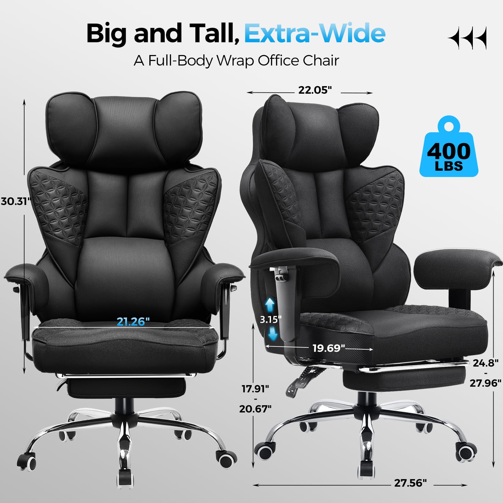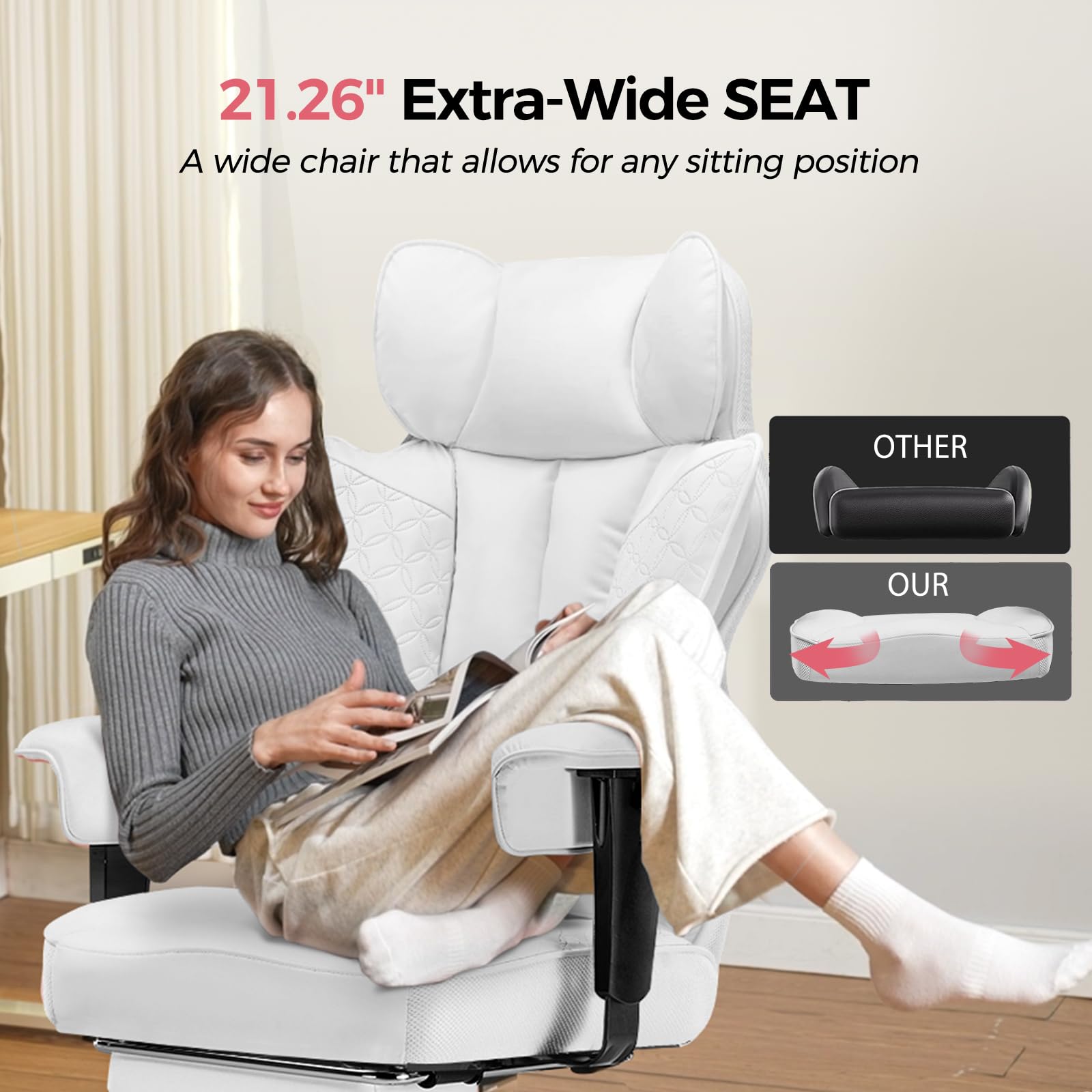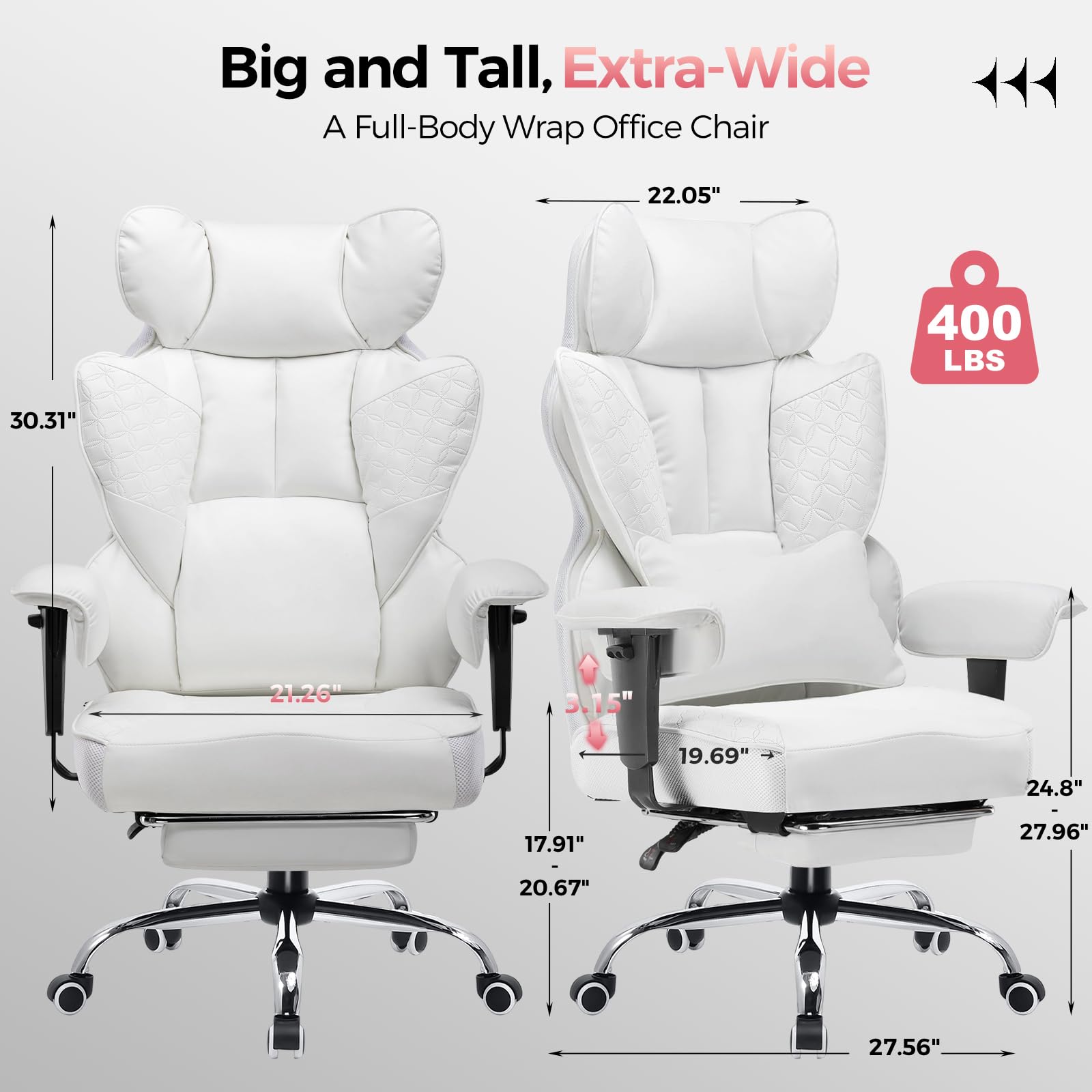 COMHOMA Big and Tall Office Chair 400LBS Wide Ergonomic Gaming Chair with Deluxe Embossing Designed Leather with Foot Rest,150°Reclining Adjustable Armrests Pocket Spring Back Support and Pillow