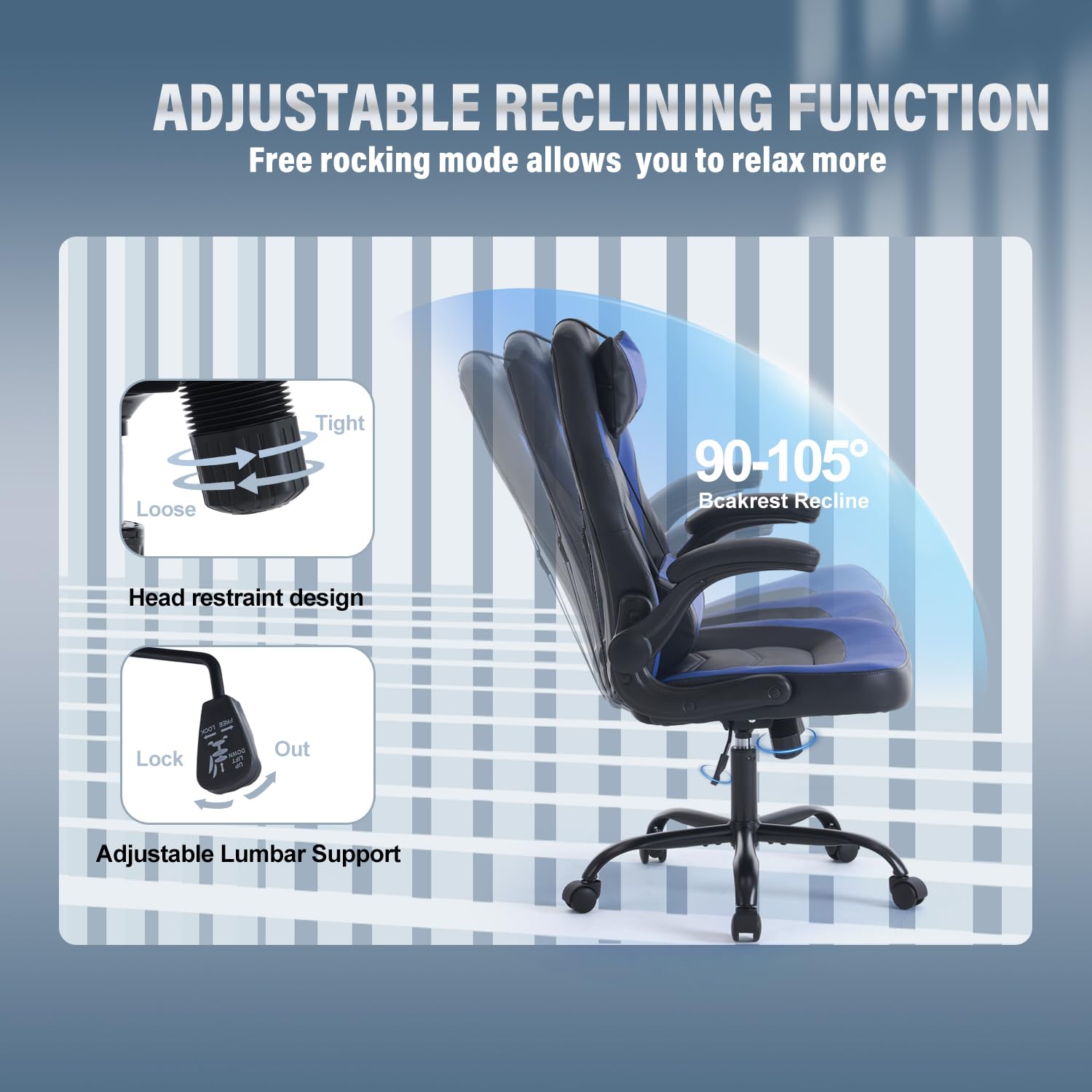 Ergonomic Design - The gaming chair covered with premium PU leather is wear-resistant and easy to clean. Ergonomic lumbar support with a unique hollow design is breathable and comfortable for working or playing games for a long time.