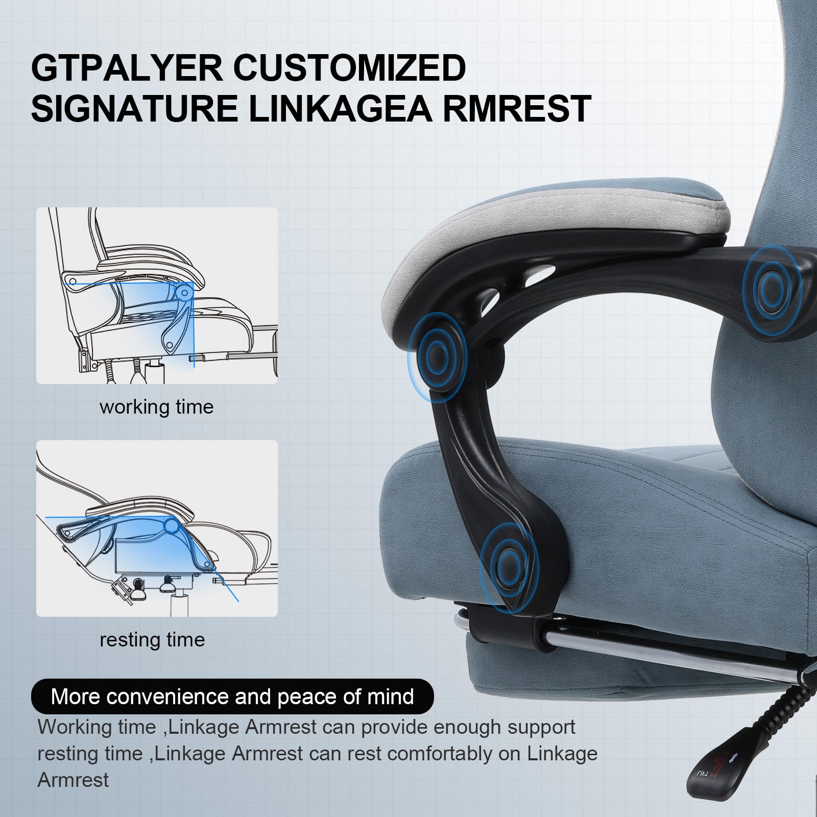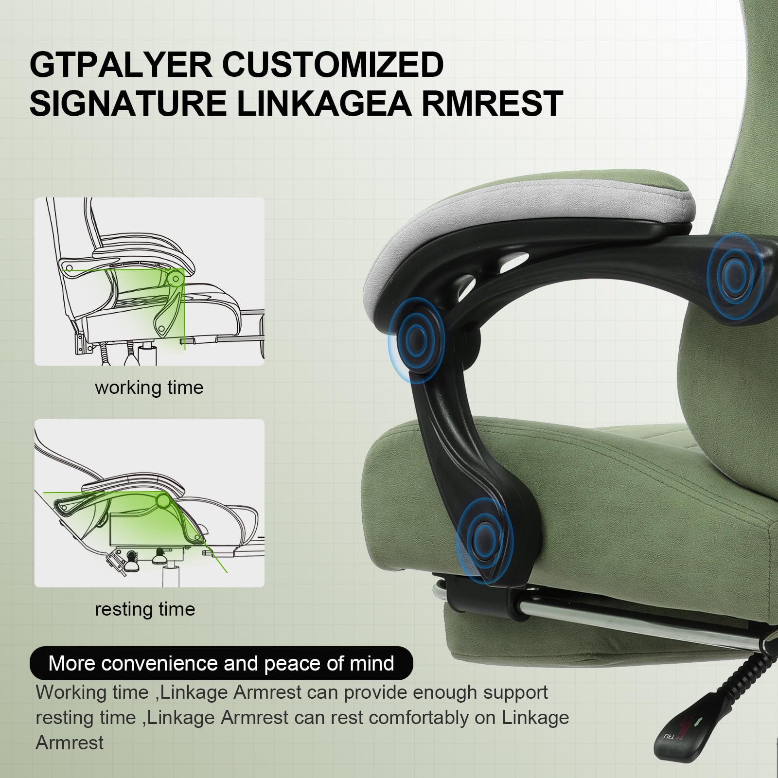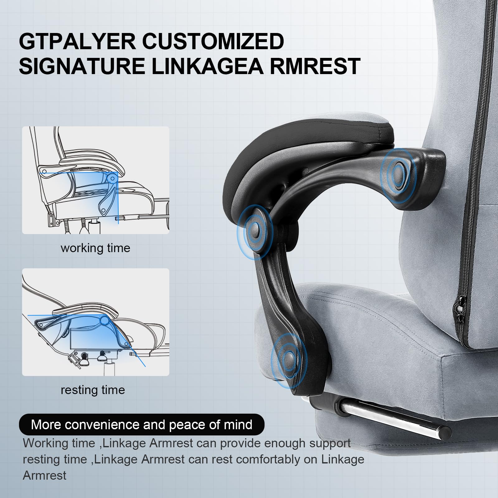 GTPLAYER Gaming Chair, Computer Office Chair with Pocket Spring Cushion, Linkage Armrests and Footrest, High Back Ergonomic Computer Chair with Lumbar Support Task Chair with Footrest(Black)