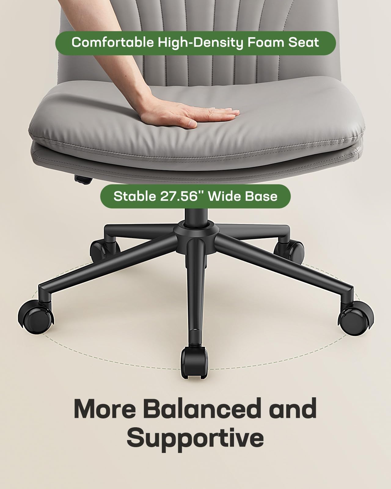 πΊππππππππ πππ πͺππππππ: Rest assured on our cross legged office chair is sturdy engineered wood seat base that ensures stability. The two-layer memory foam cushion offers a soft upper surface and firm sub-layer support for enhanced comfort during long hours of sitting. With a generous 27.56" steel base, this office chair armless guarantees stability, allowing you to focus on your tasks in a relaxed manner