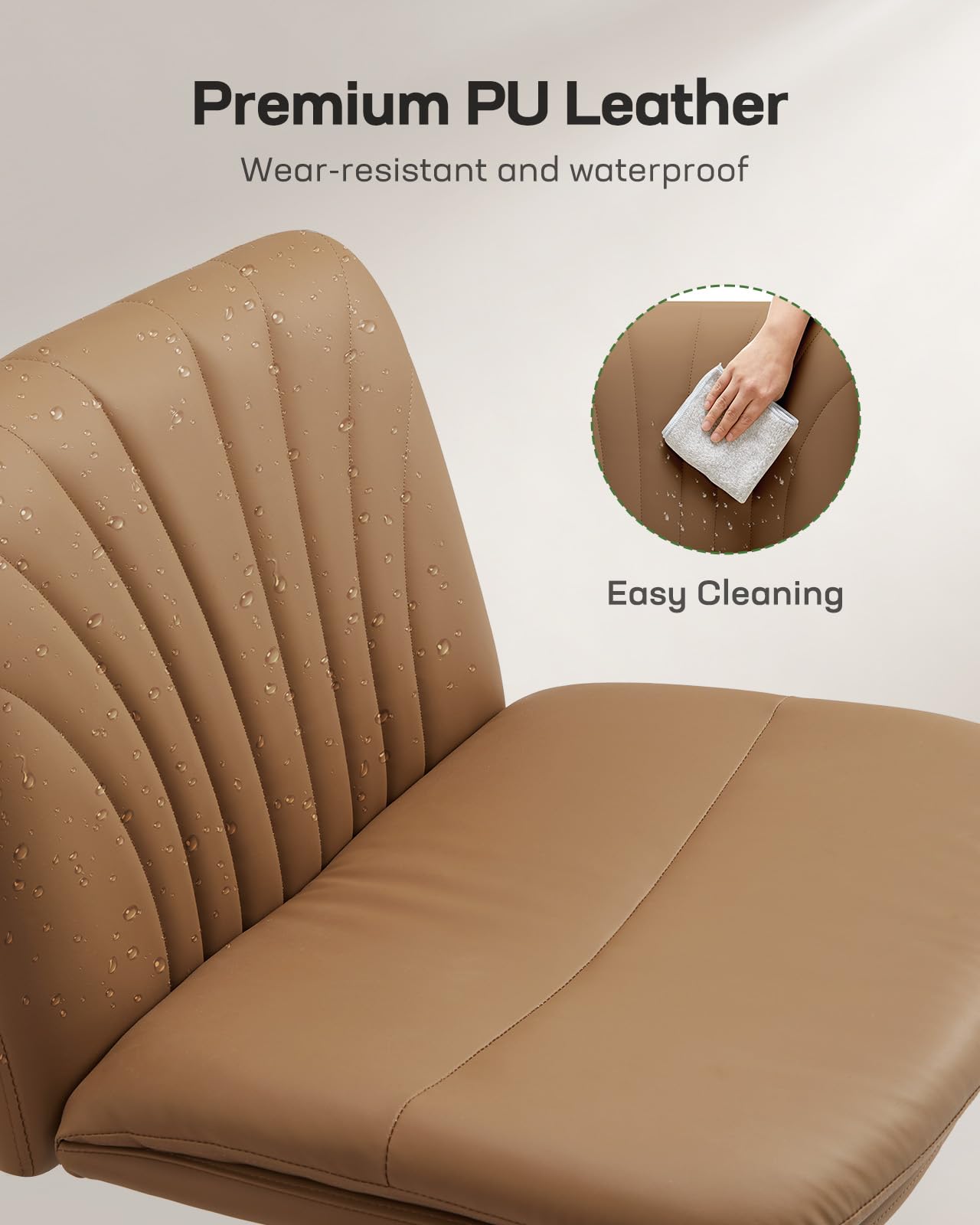 π·ππππππ π·πΌ π³ππππππ πΊππππππ: Our cross legged chair is upholstered with premium PU leather, ensuring waterproof and wear-resistant properties. Unlike fabric chairs, Marsail PU leather criss cross chair with wheels is easy to clean with a damp cloth, effortlessly restoring its original condition (Note: Products may have some variation in color under different lighting conditions)