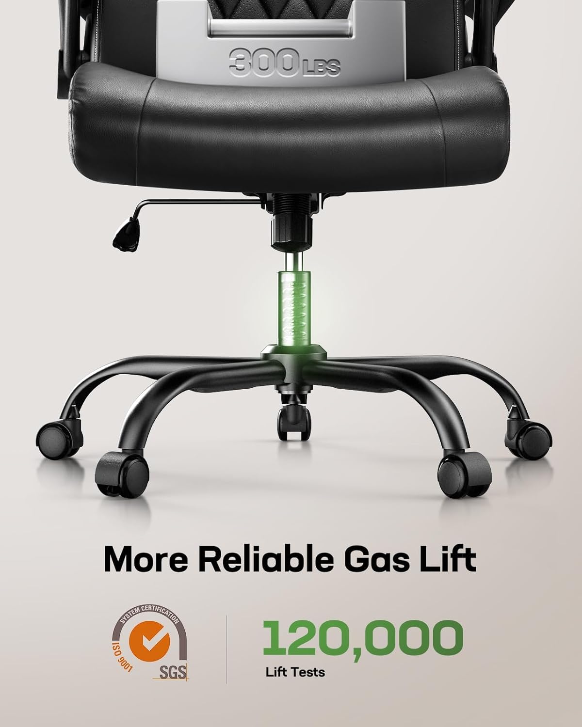 Built to Last: Engineered with a 27.6″ oversized base and an SGS-certified gas lift, this office desk chair provides maximum stability for up to 300 lbs of weight. The center of the backrest is breathable to help keep you cool and dry with better airflow to your body.