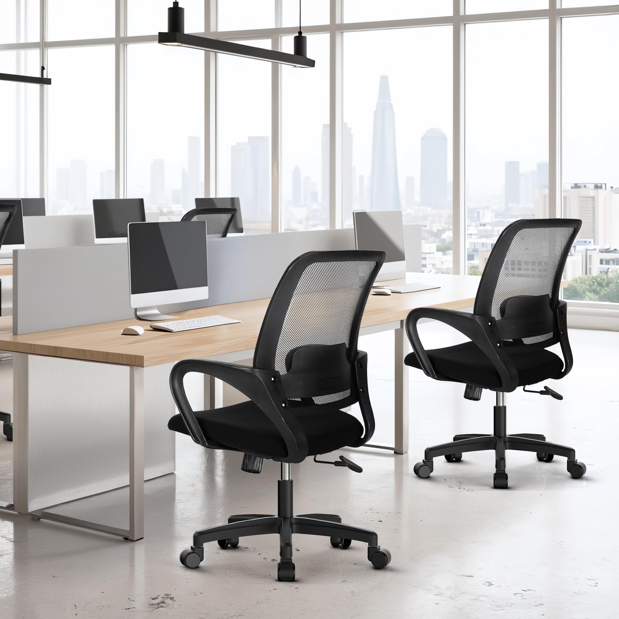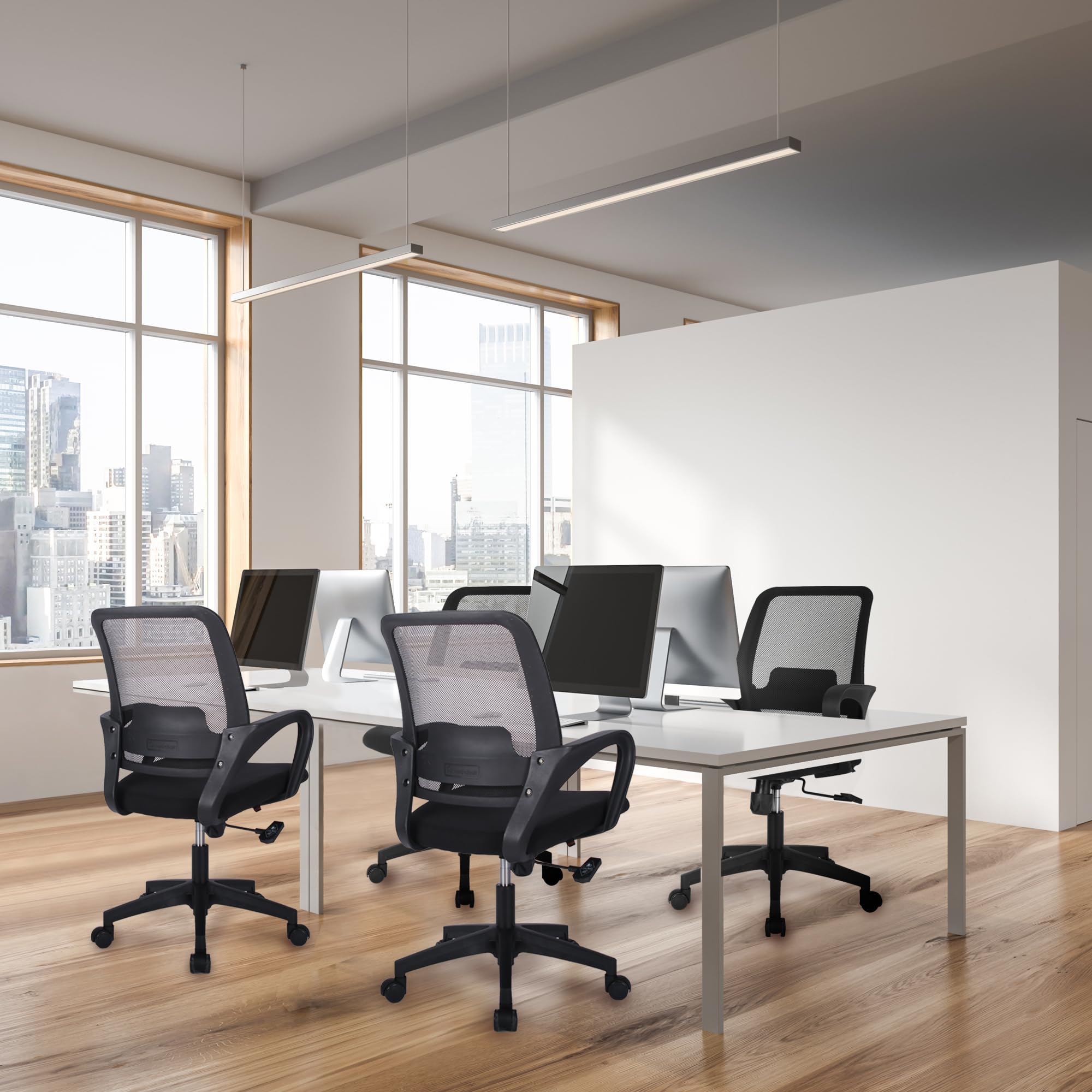 NEO Chair Office Desk Mesh Chair Ergonomic Computer Mid-Back Chair with Comfy Lumbar Support Wheels Swivel Adjustable Height Rolling for Home Vanity Bedroom Study (All Black)