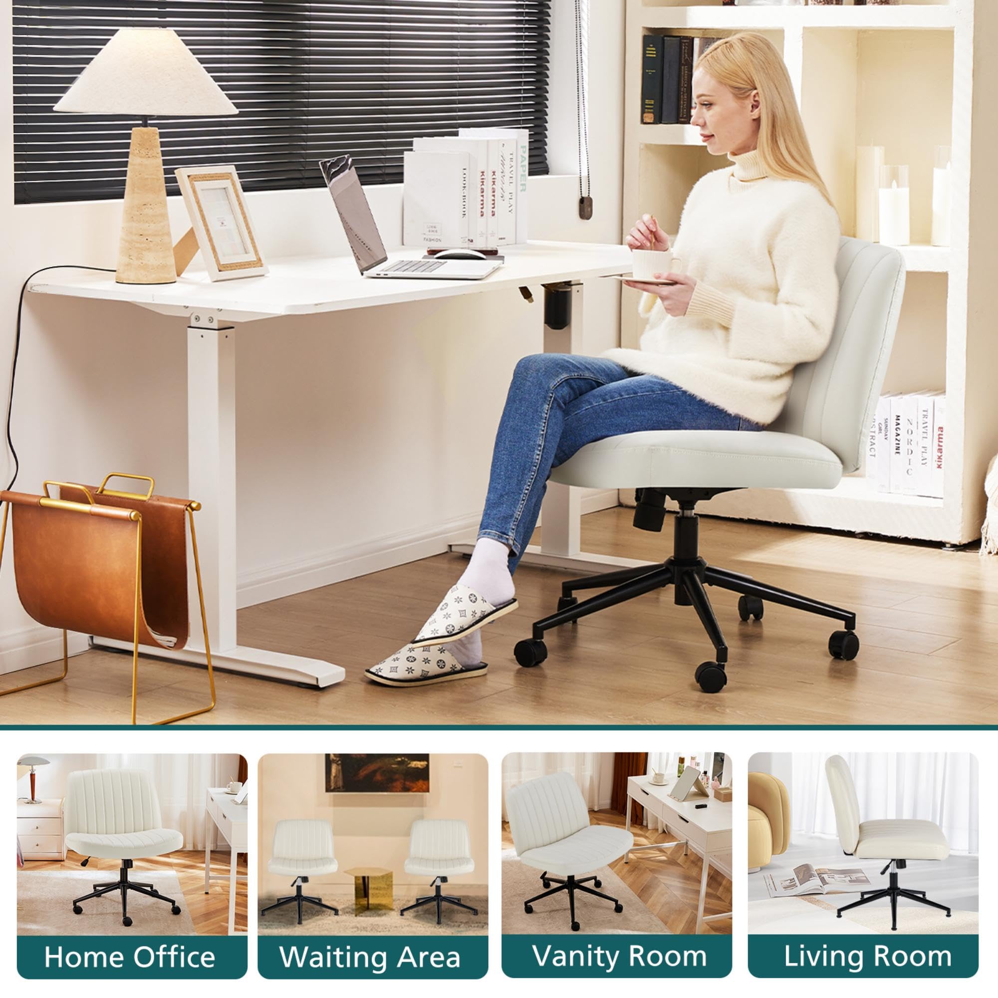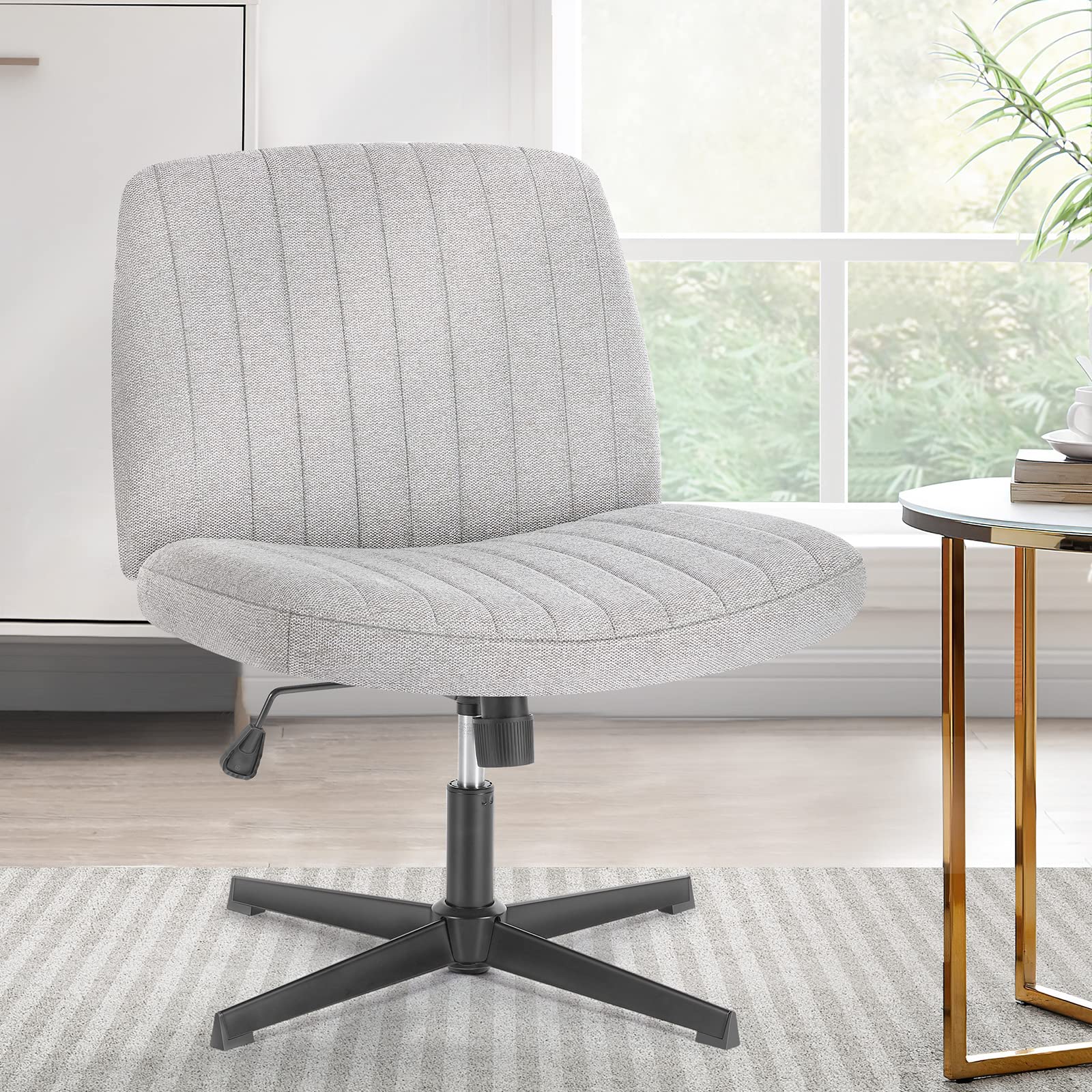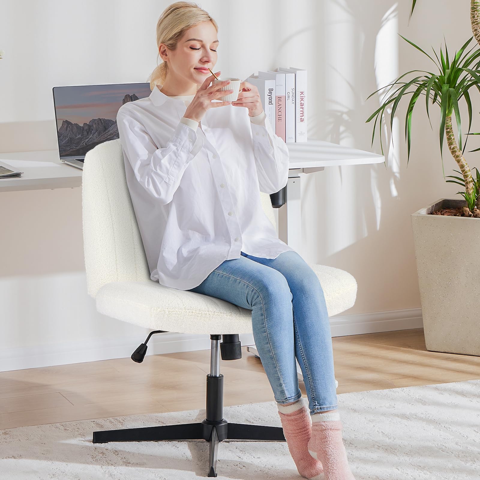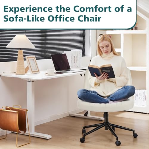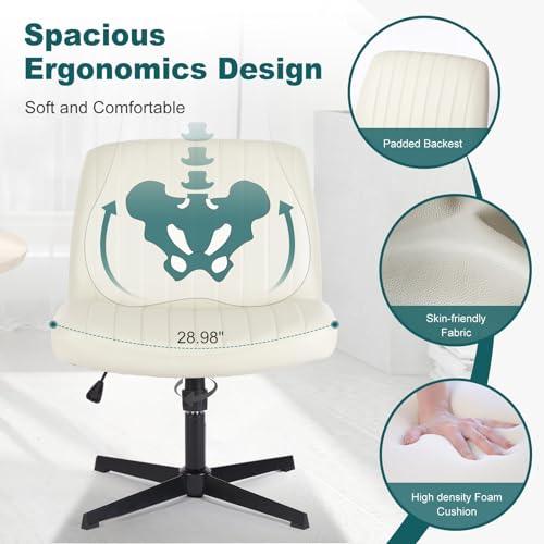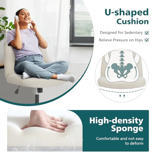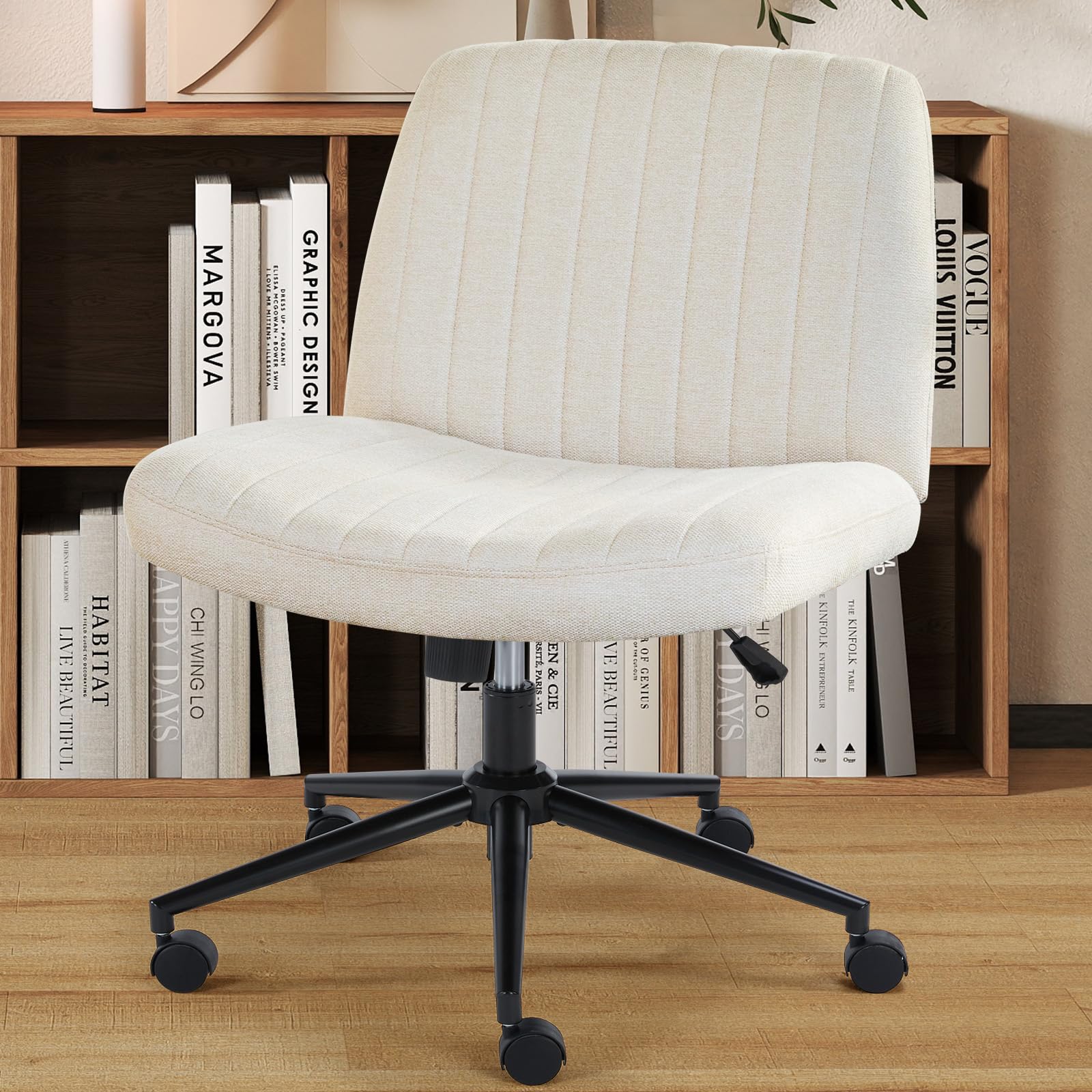 OLIXIS criss cross chair with wheels Wide Cross Legged Office Desk Vanity Chair Comfy Fabric Armless Adjustable Swivel for Home Computer Task Fabric Beige