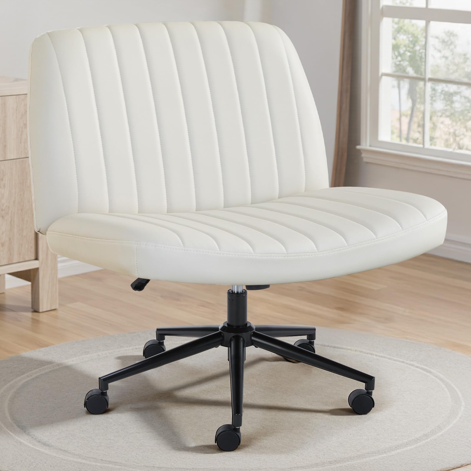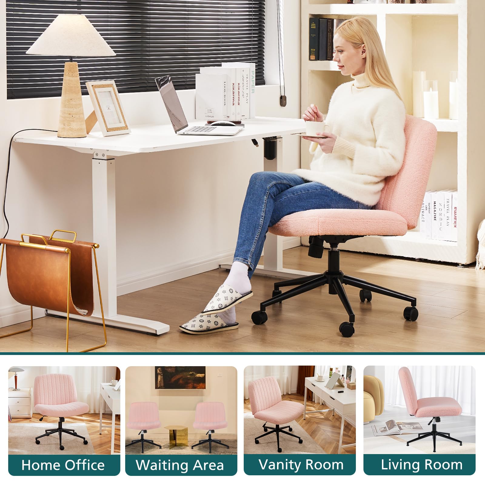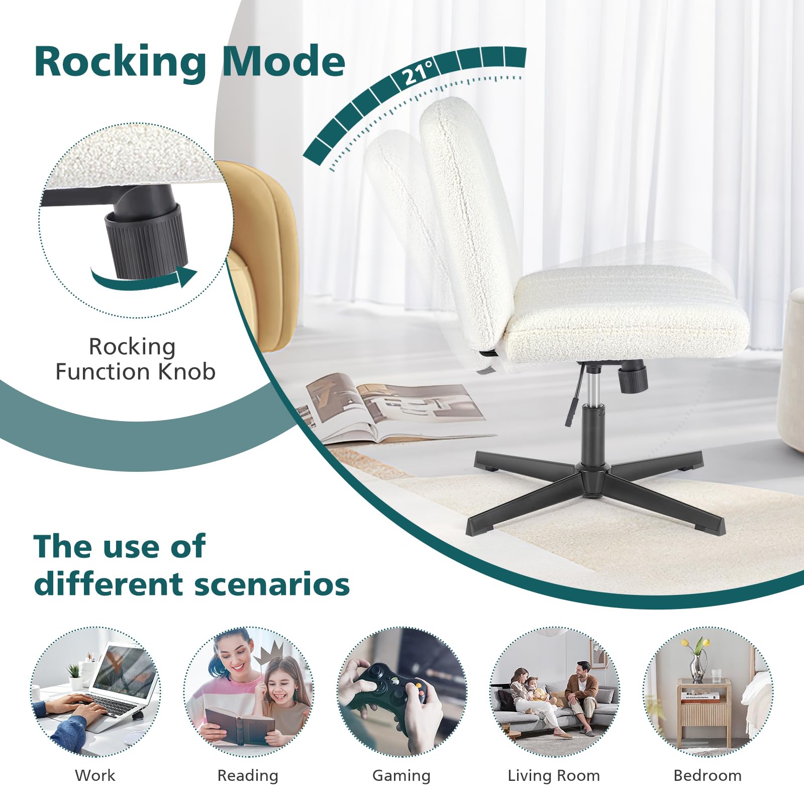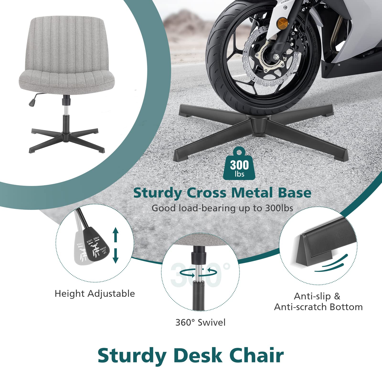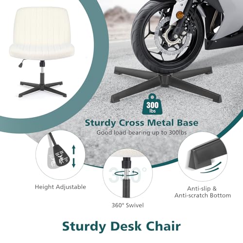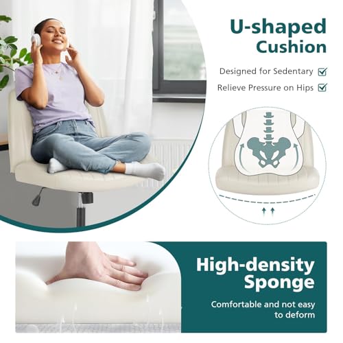 OLIXIS criss cross chair with wheels Wide Cross Legged Office Desk Vanity Chair Comfy Fabric Armless Adjustable Swivel for Home Computer Task Fabric Beige