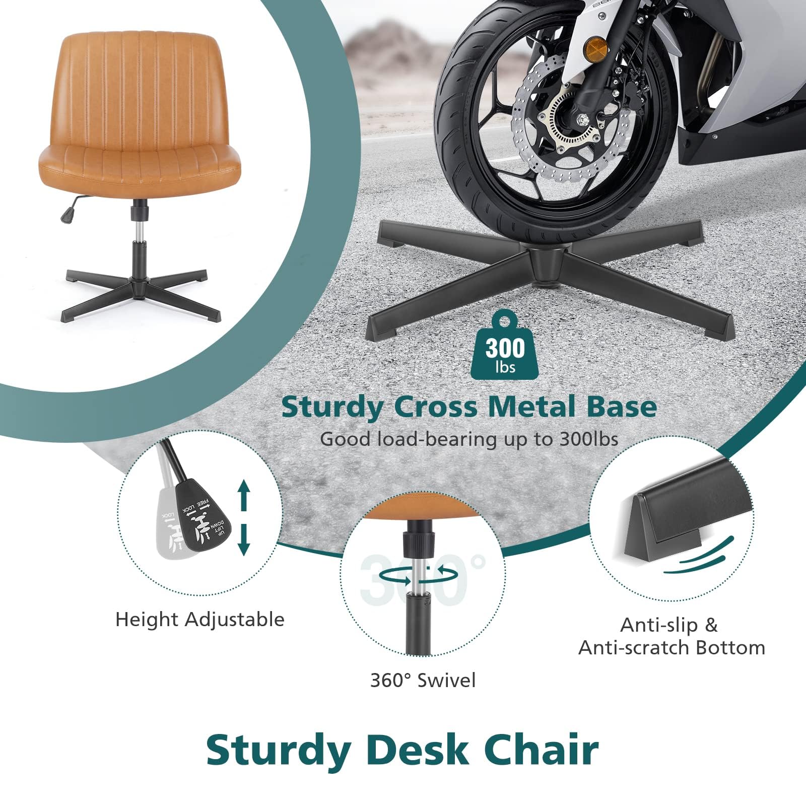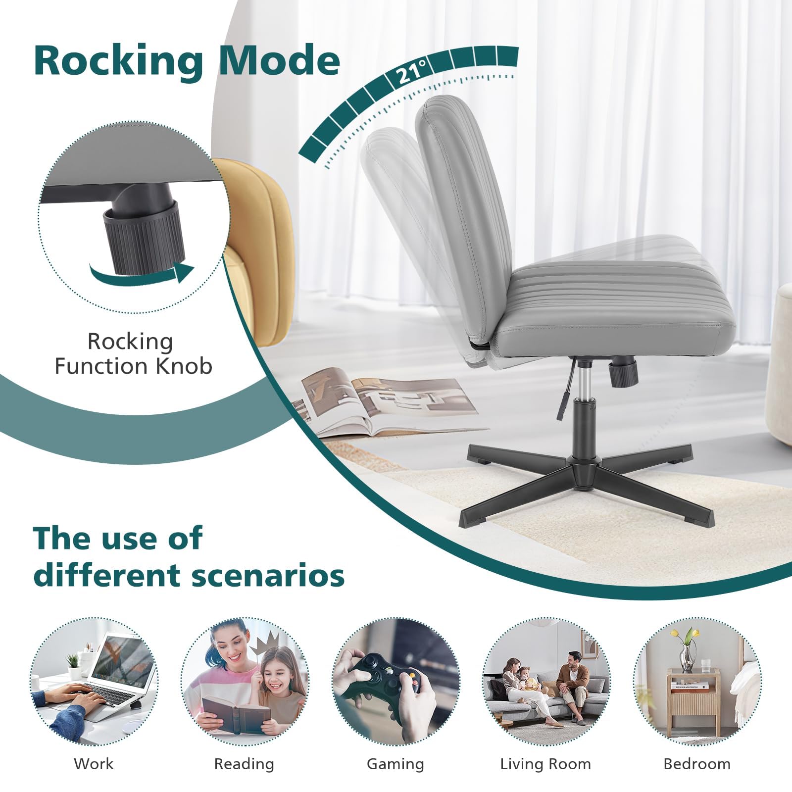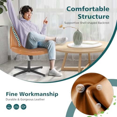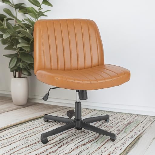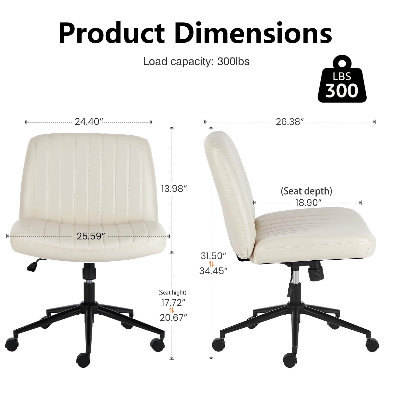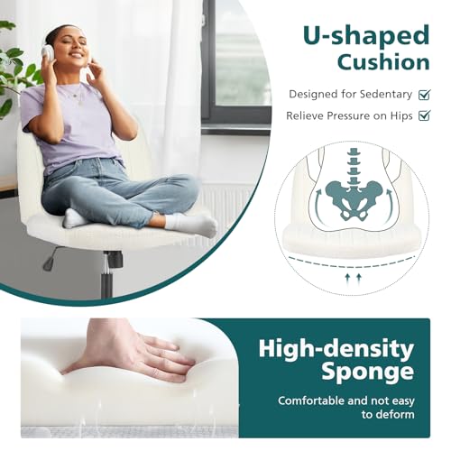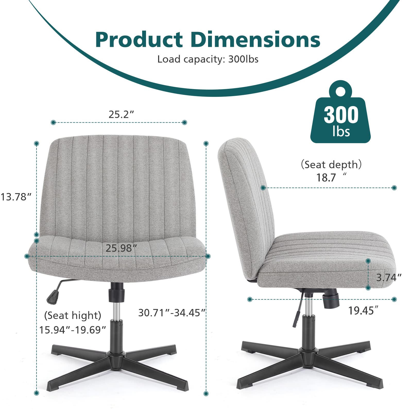OLIXIS criss cross chair with wheels Wide Cross Legged Office Desk Vanity Chair Comfy Fabric Armless Adjustable Swivel for Home Computer Task Fabric Beige