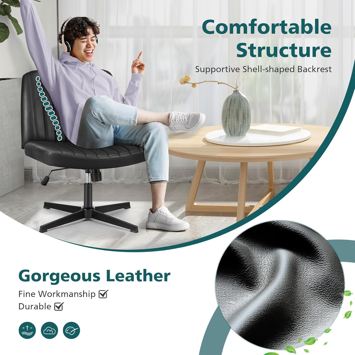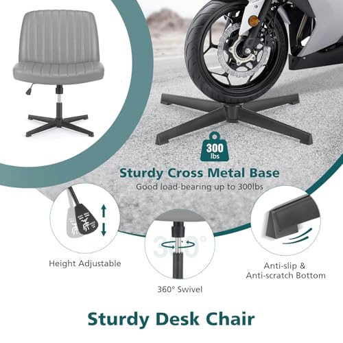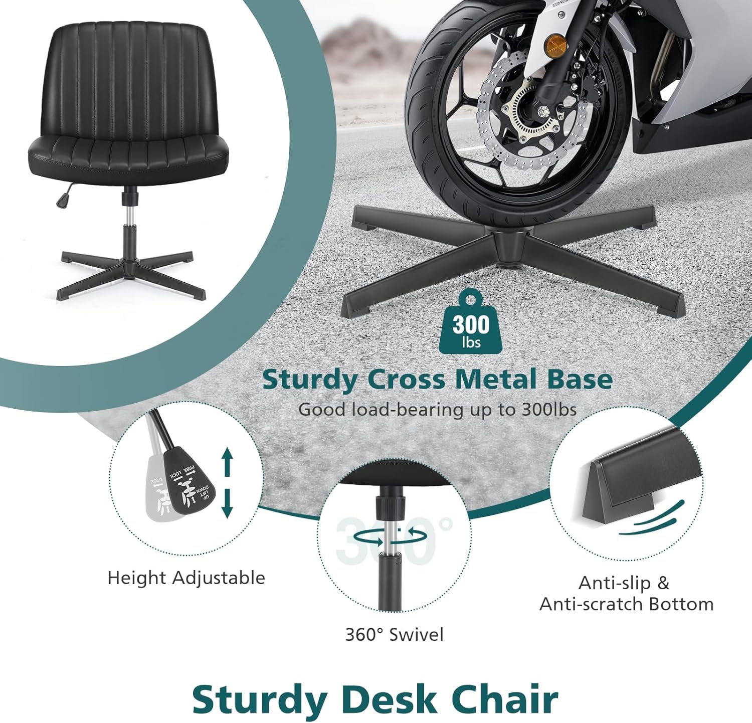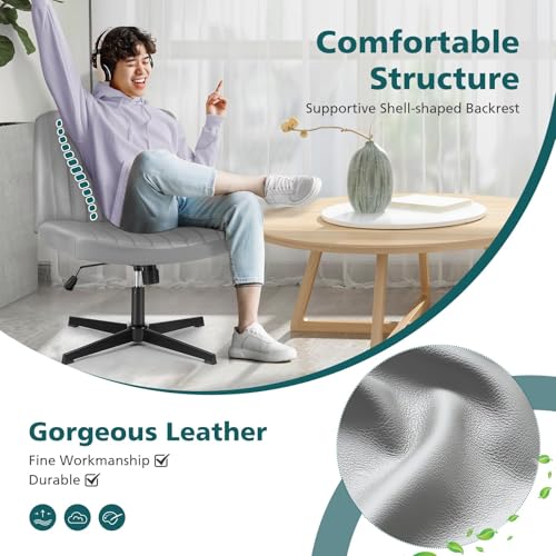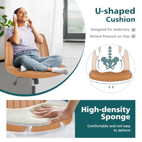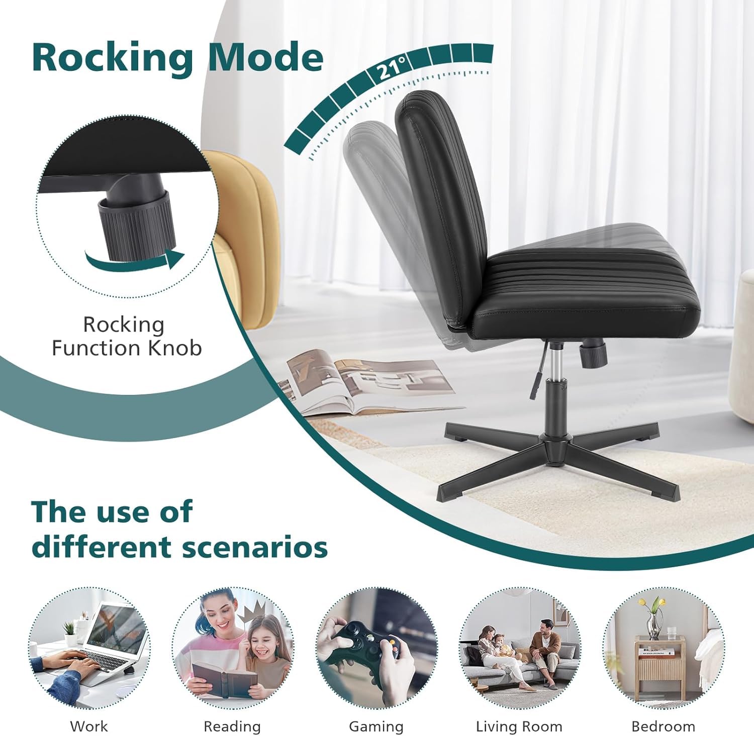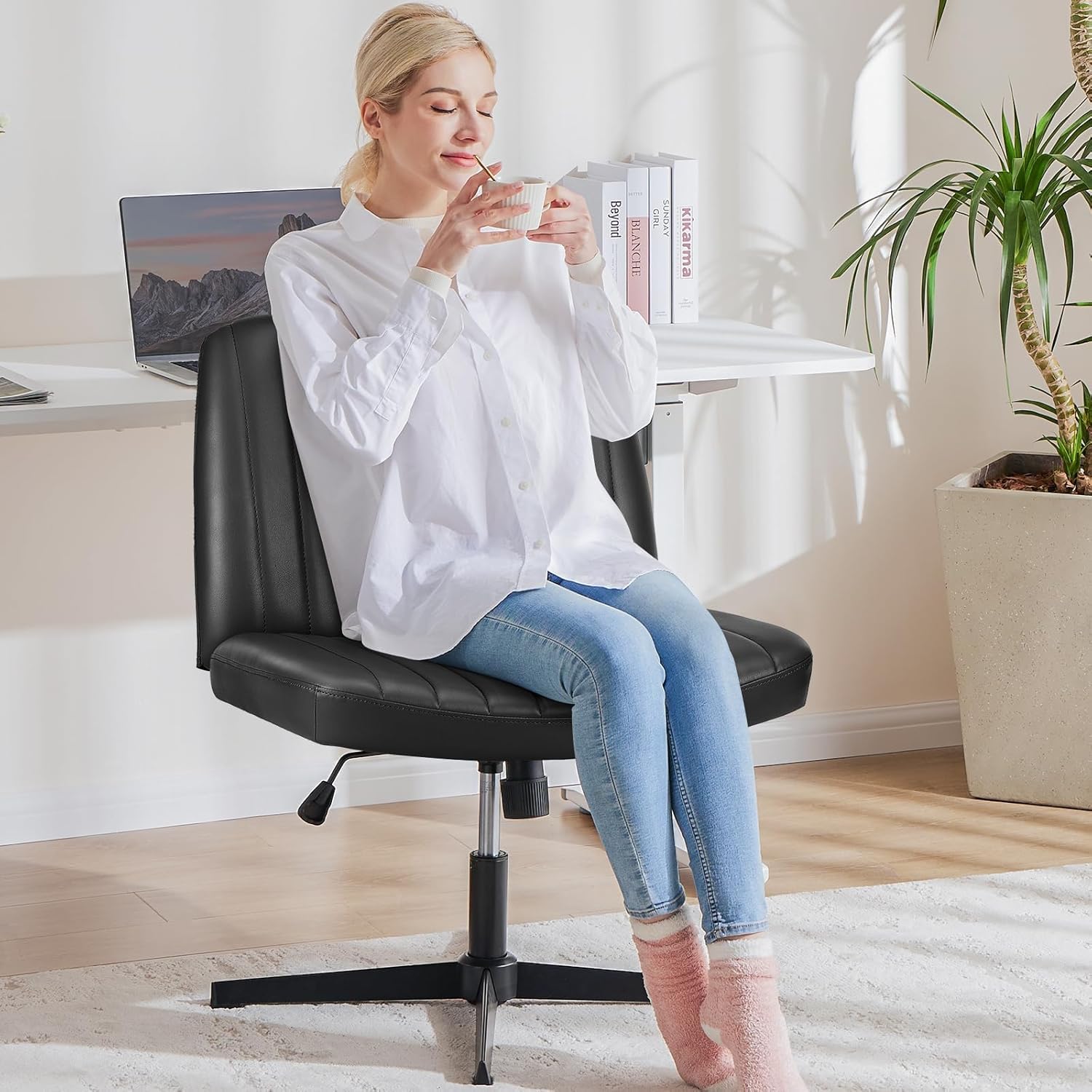 OLIXIS criss cross chair with wheels Wide Cross Legged Office Desk Vanity Chair Comfy Fabric Armless Adjustable Swivel for Home Computer Task Fabric Beige