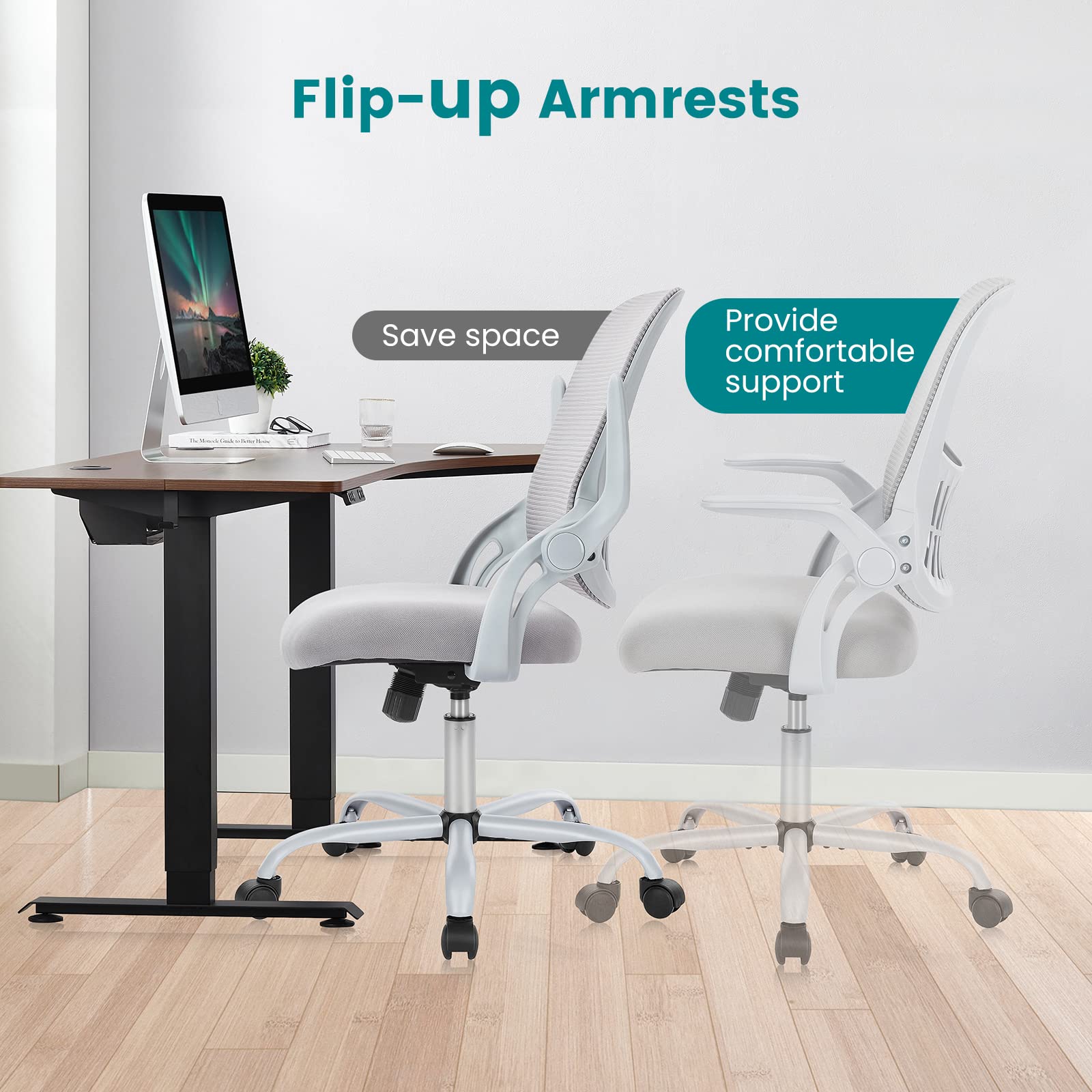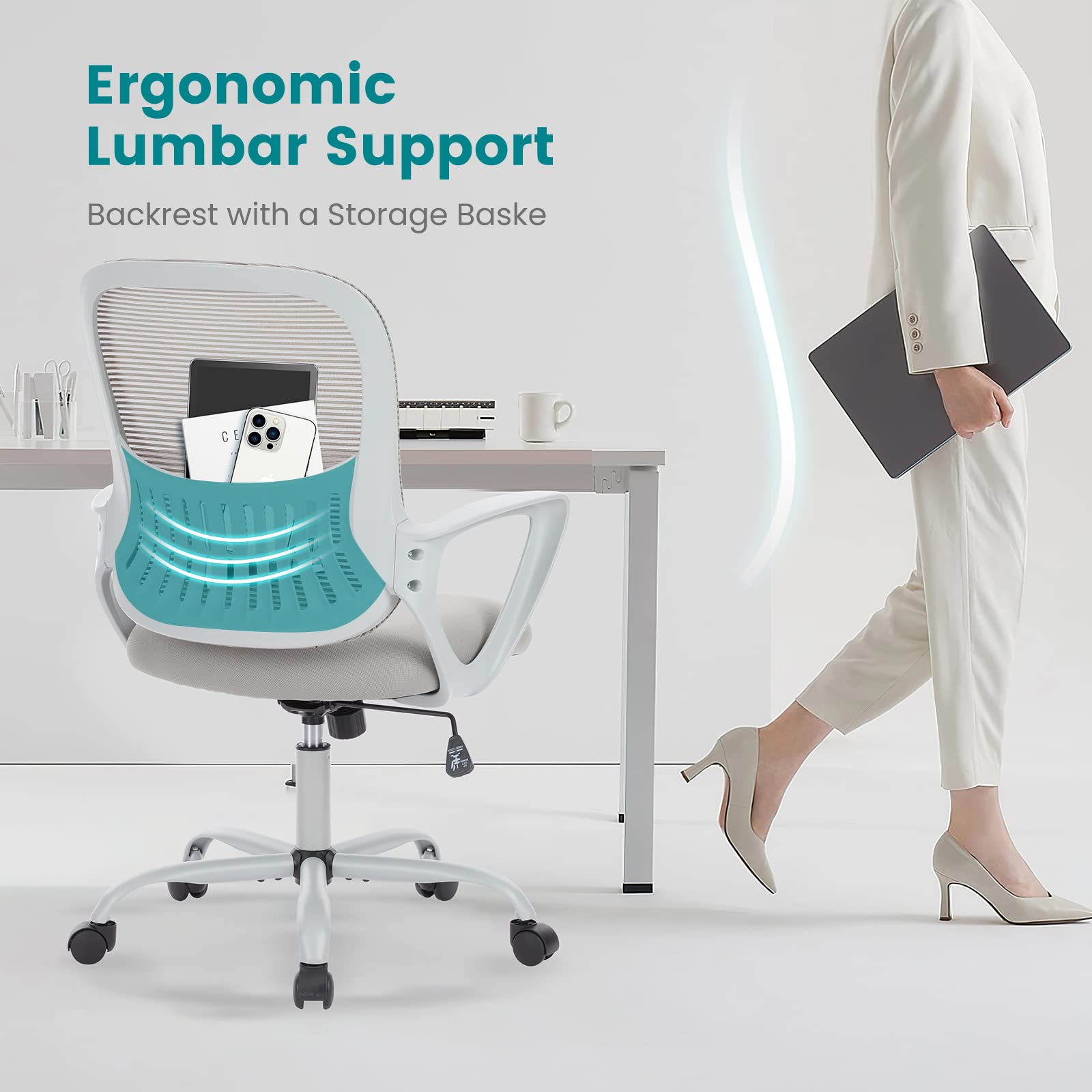 【Ergonomic Backrest】 The overall design of this office chair is ergonomic, the backrest and lumbar support fit the natural curve of your lower back, let your body and mesh chair perfectly fit, and take the spinal pain away from your body. It provides comfortable support, which helps you maintain a relaxed posture during long hours of work.