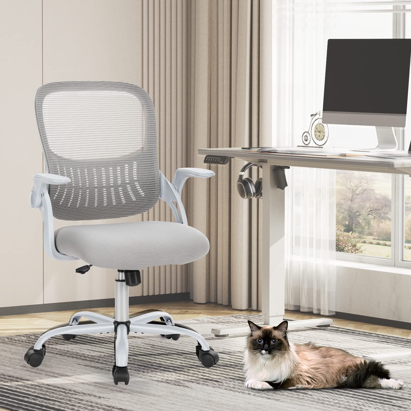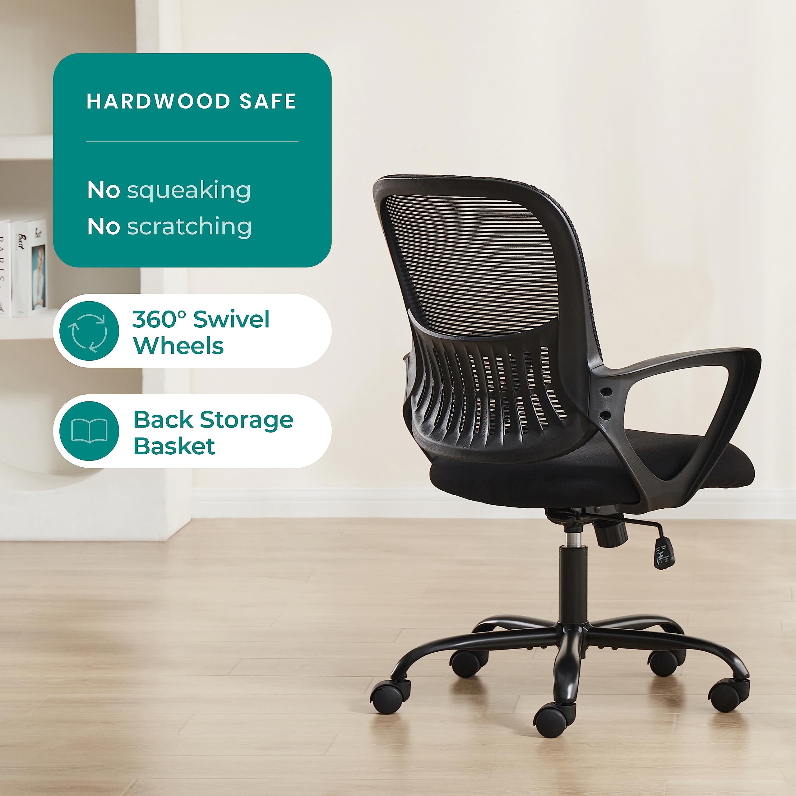 SMUG Home Office Computer Desk Chair - Ergonomic Mid-Back Mesh Swivel Rolling Work with Wheels, Comfy Lumbar Support and Armrest, for Bedroom, Study, Dorm, Student, Adults